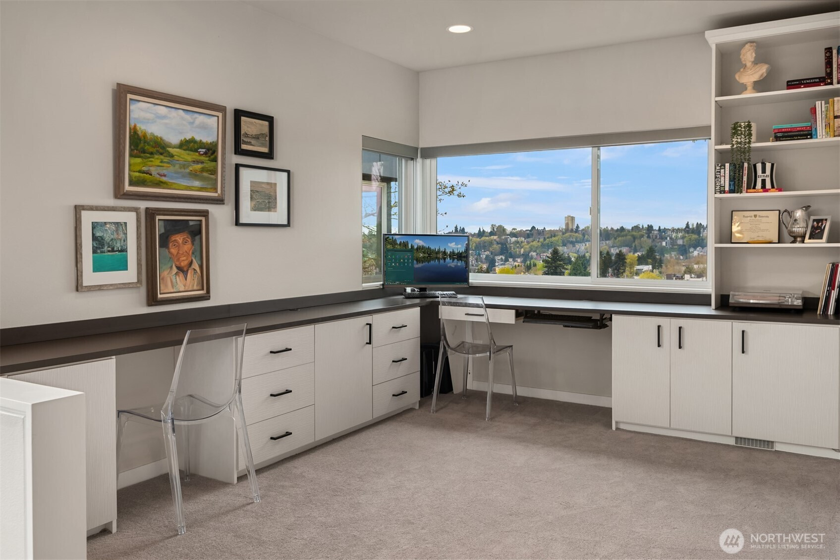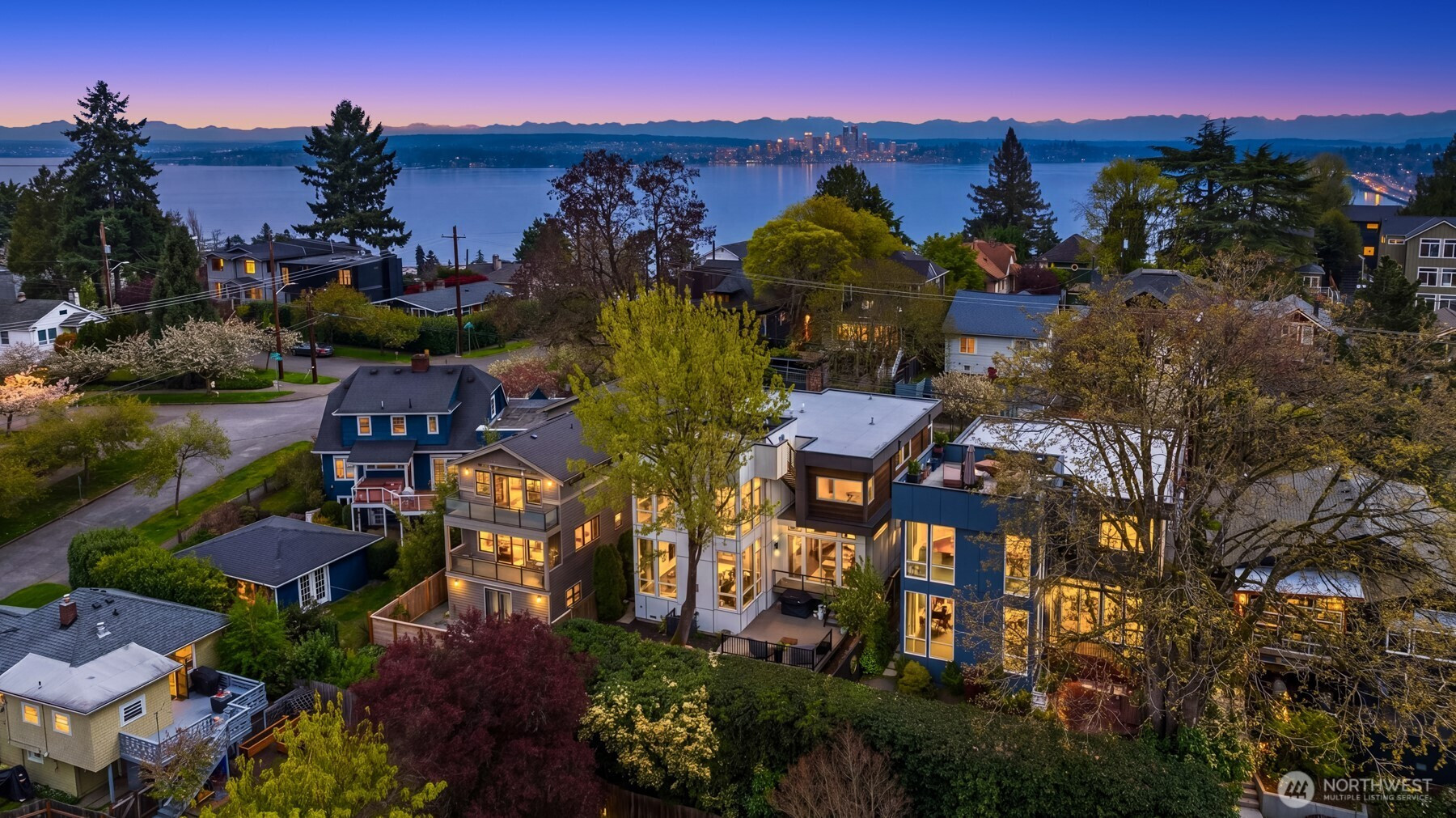 (650)533-3259A refined expression of modern classic design, this residential masterpiece is gracefully perched along the western slope of Leschi, where soaring 10-foot walls of glass frame sweeping vistas of the city skyline and Olympic Mountains, complemented by a rooftop deck with breathtaking 360-degree views of downtown Seattle, Bellevue, Lake Washington, and beyond.Upon entry, a luminous sitting room welcomes you—an intimate yet opulent setting for conversation and cocktails. The home unfolds into a magnificent open-concept living space, where expansive views and radiant Seattle sunsets create a daily sense of awe.At its heart, the kitchen is both striking and functional, anchored by an extraordinary 50-foot white quartz island—perfect for elevated entertaining—alongside abundant custom cabinetry and generous counter space. An elegant dining area and spacious living room complete the home’s seamless blend of modern sophistication.Step outside to a serene outdoor living retreat, where a private deck invites relaxation and effortless hosting. As evening falls, retreat to the expansive primary suite, where panoramic views over the city and Puget Sound provide a tranquil, ever-changing backdrop.Two additional bedrooms, a generous office, laundry room, and guest bath complete this exceptional residence—an exquisite balance of luxury, comfort, and timeless design in one of Leschi’s most coveted settings.