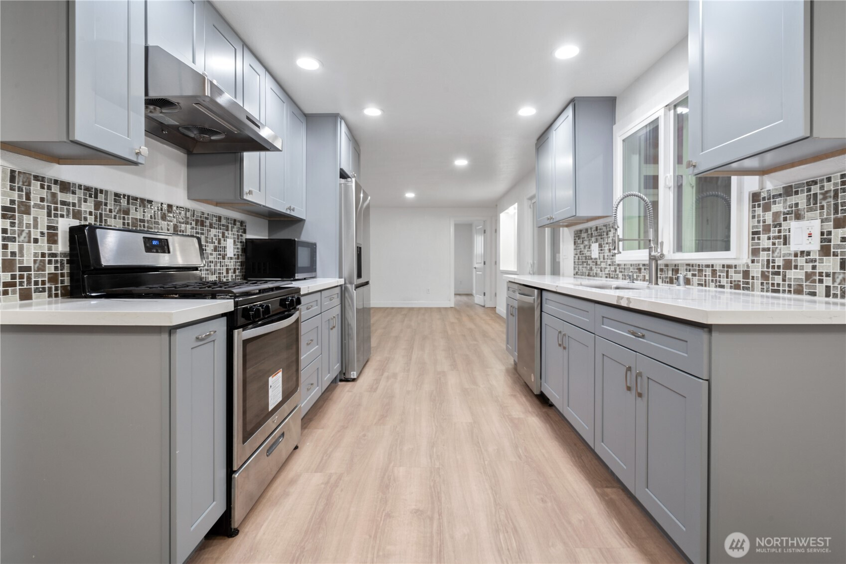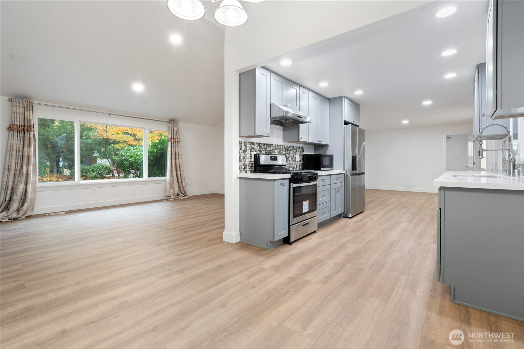 (650)533-3259Stylish and move-in ready home in Kirkland’s desirable Copper Wood community, quietly set on a peaceful cul-de-sac. Bright vaulted ceilings and large soundproof windows fill the space with light. The fully remodeled kitchen features quartz countertops, new cabinets, sink, range, hood, and refrigerator. Updated bathrooms include new vanities, countertops, and a primary shower. Enjoy new LVP flooring, LED lighting, washer and dryer, and fresh interior paint. Outside, relax on the new covered deck overlooking a fully fenced yard with a sprinkler system. Pre-inspected with new exterior paint, fence, driveway, garage door, epoxy-coated garage floor, and EV charger. Convenient to I-405, shops, dining, and top-rated Lake WA schools. Pre-inspected