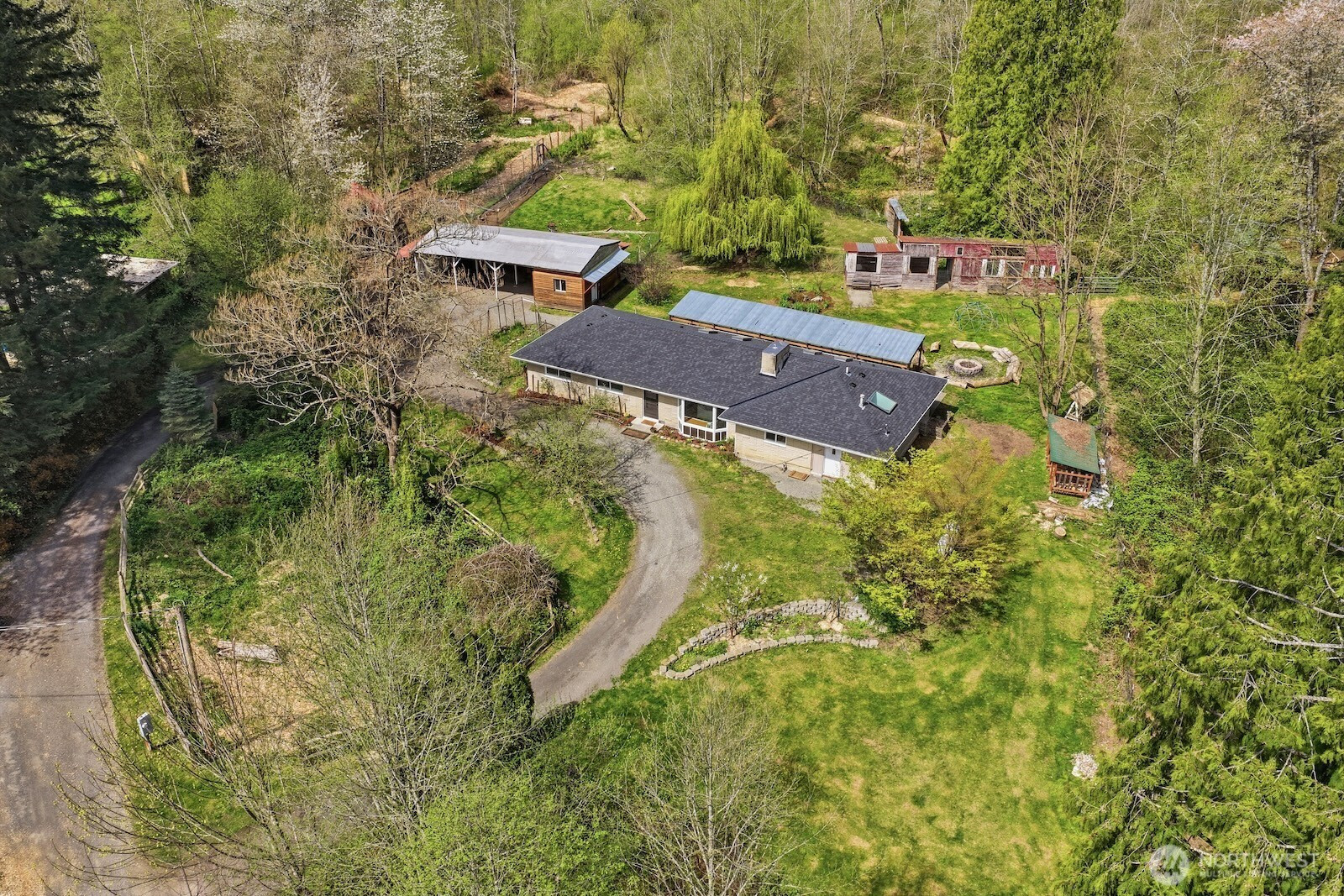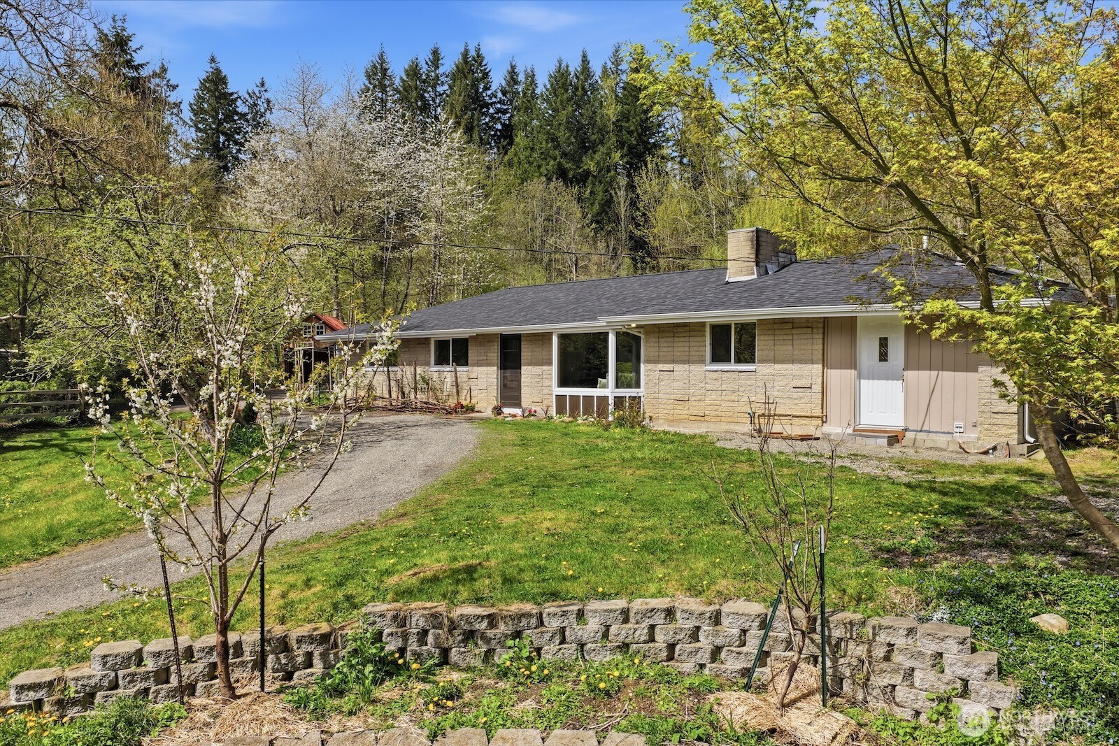 (650)533-3259Acreage property on Carnation’s scenic Fay Road! Set on 3.59 spacious acres with room for animals, gardening, and play. One level living offers comfort and convenience. No HOA and plenty of RV parking. Refinished hardwood floors and fresh paint inside and out create a crisp, updated feel. New roof adds peace of mind. Cozy propane fireplace warms the living space. Updated kitchen offers style and function. Primary suite features a full bath. Relax or entertain year-round on the covered porch. Outbuildings include goat pens with pasture. Large detached carport and separate office space add flexibility. Fruit trees enhance the landscape. Enjoy privacy and rural living with quick access to Carnation, Duvall, and Redmond. Live your country dream here!