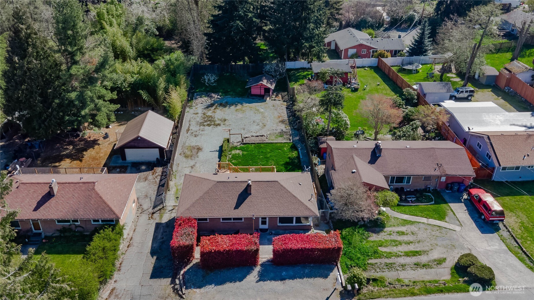 (650)533-3259This mid-century brick home with daylight basement is full of character and charm. Beautifully refinished original hardwood floors upstairs. All new doors, trim and lighting throughout. Updated kitchen with two-toned cabinets, custom Corian counters and stainless appliances. Kitchen, 3 bedrooms, updated full bathroom and formal living room with wood burning fireplace on main floor. Additional flex spaces, wet bar and updated 3/4-bathroom downstairs. Unfinished shop space with rolling garage door in basement perfect for storage or hobbies. Large entertainment sized deck off kitchen with sweeping view of the back yard. The expansive back yard is fully fenced with outbuilding. It brings additional parking for RV, boat, toys and extra cars with plenty of room to run. Per City of Burien, Sewer is coming and this large lot provides space for a possible DADU or potential multi-family option. Buyer to verify all information to their satisfaction. First American Home Warranty provided.