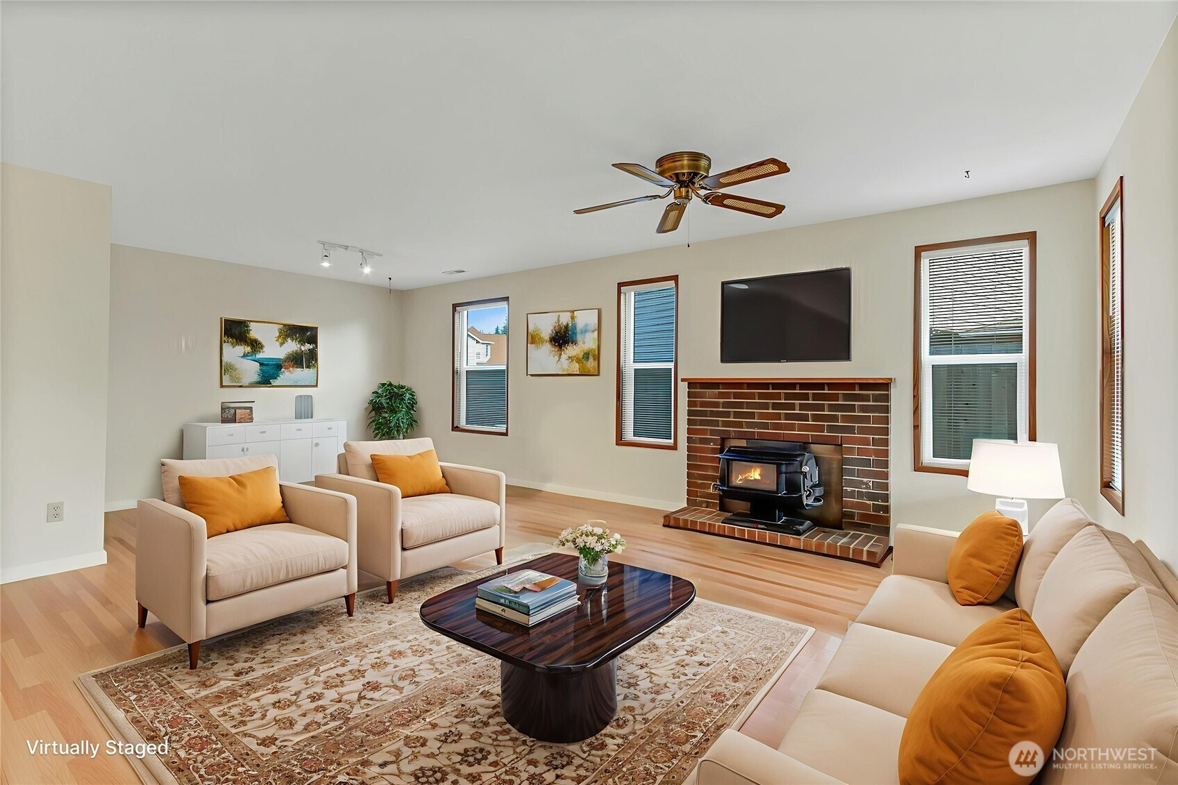(650)533-3259Move in condition wonderful tri-level with large fenced back yard and RV/Boat parking behind double gate with paved parking area. You won't be disappointed with the Kent East Hill home as you walk into the vaulted ceiling in the living room and dining room with new LVP flooring on your way to the spacious kitchen with all the appliances staying (Stove, microwave, dishwasher and refrigerator). Down just a few steps you enter the large family room with fireplace, 1/2 bath, laundry area (washer and dryer to stay for buyers) and entrance out to covered patio and fenced back yard for year round bar b ques and entertaining. Finally you will find 3 bedrooms upstairs including the primary with master bath including soaking tub and separate shower. Room for multiple car parking along with 2 car garage, and brand new furnace to take the worry out.