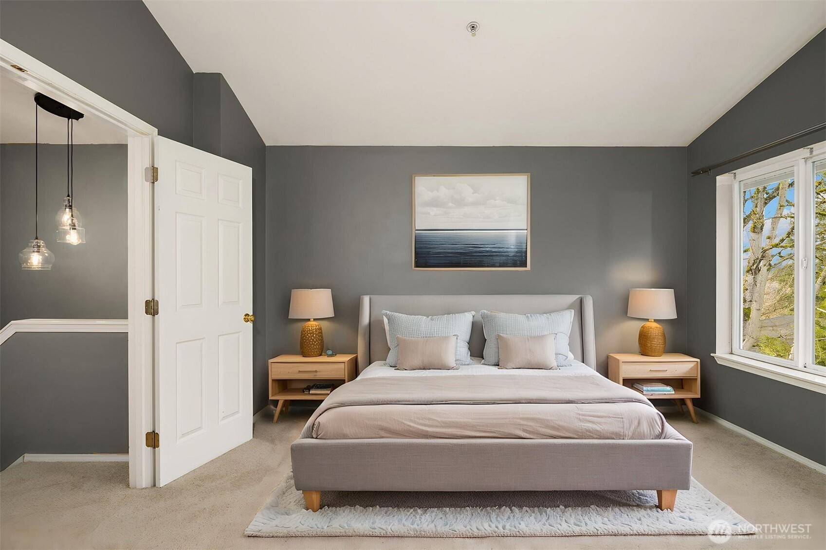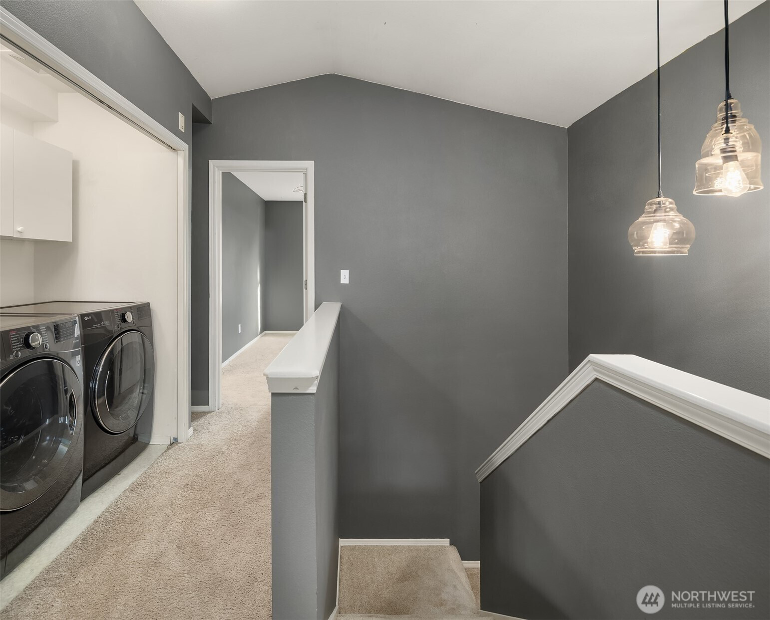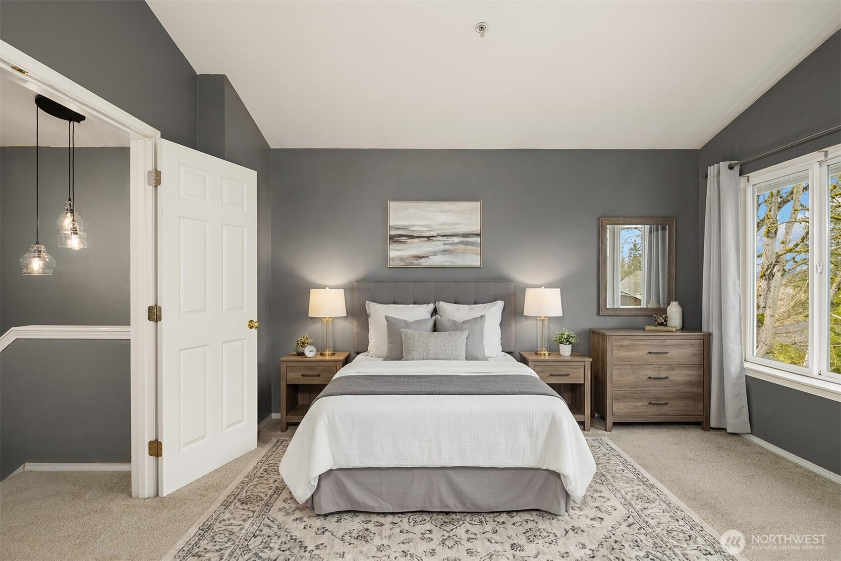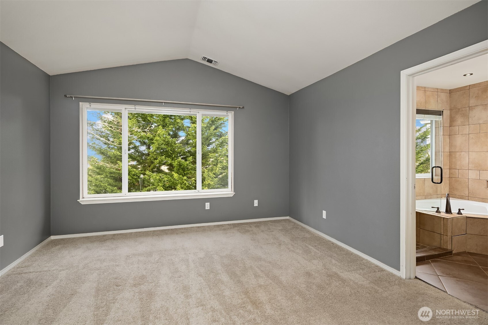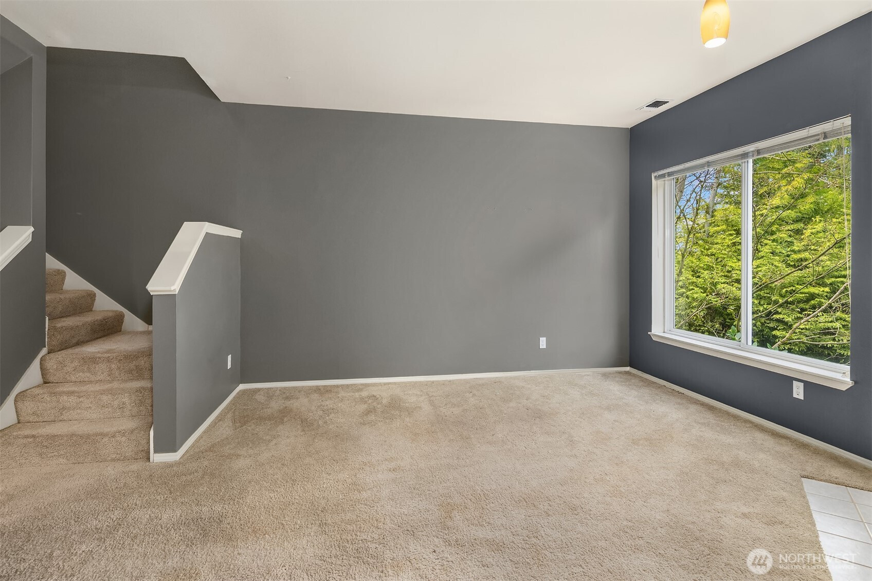 (650)533-3259Tucked away townhome in sought-after Woodinview ~ Conveniently nestled between downtown Woodinville & downtown Bothell with rapid access to 405, this spacious 1,348sf two-story features 2 bedrooms, 2.5 baths, den/office & private garage with driveway parking. Spacious open floor plan backed to scenic evergreens with 9' tall ceilings, dramatic oversized windows & designer upgrades throughout. Covered porch opens to tiled foyer with walk-in entry closet. Updated kitchen with granite counters, full-height glass tile backsplash, large pantry & sprawling breakfast bar opens to formal dining, entertainment-sized balcony & grand living room with gas fireplace & cascading open staircase. Desirable double-door den & powder room on main make an ideal home office hideaway. Lofted upper hall with eclectic chandelier & well positioned laundry. Impressive double-door primary suite with cathedral ceilings, territorial views, walk-in closet with custom organizers & lavishly appointed 5-piece bath with corner soaking tub, frameless glass shower, 7' dual-sink maple vanity & extensive tiling throughout. Secondary suite with folding Murphy bed & attached bath with tiled surround & new LVP floors. Efficient gas furnace with heat pump & central A/C!