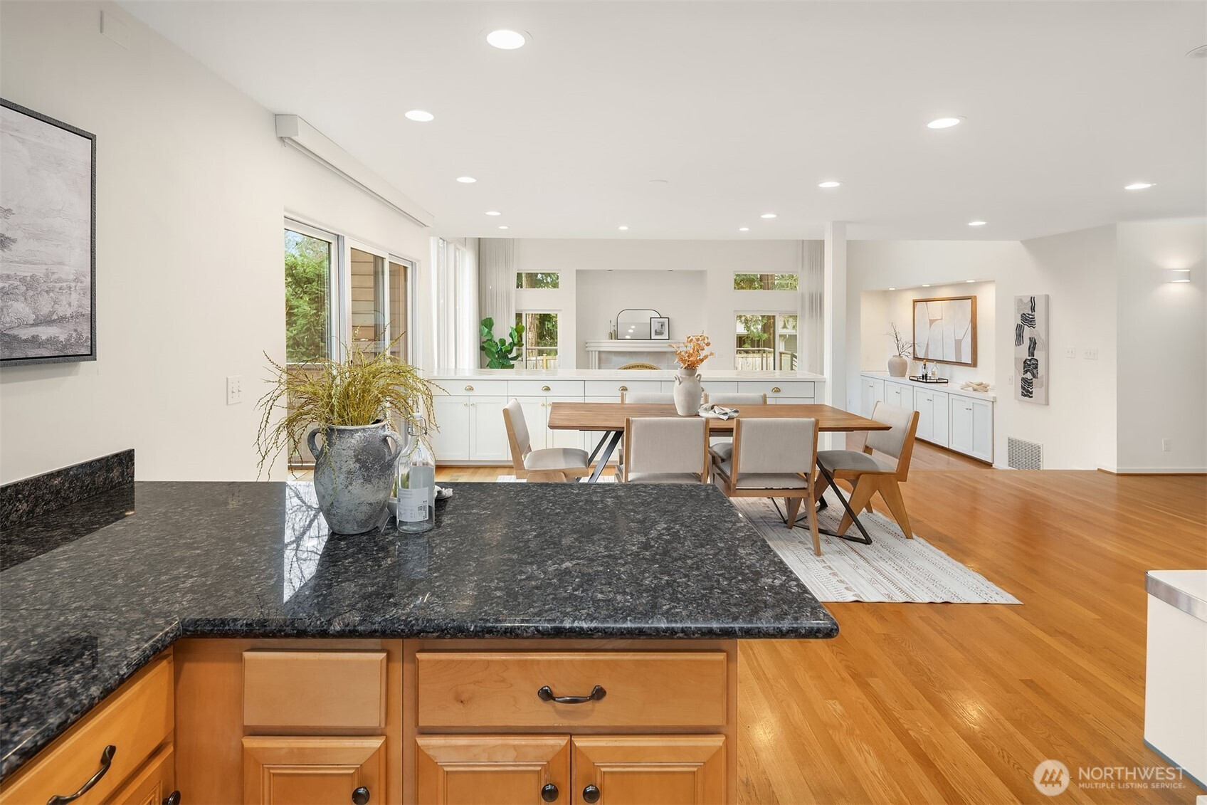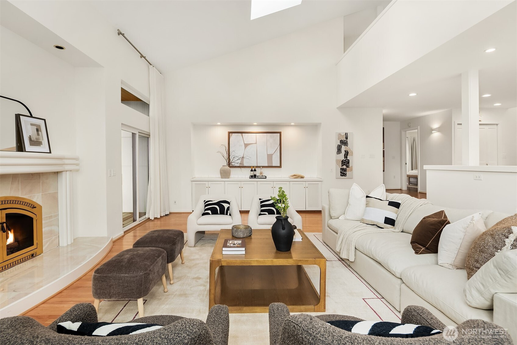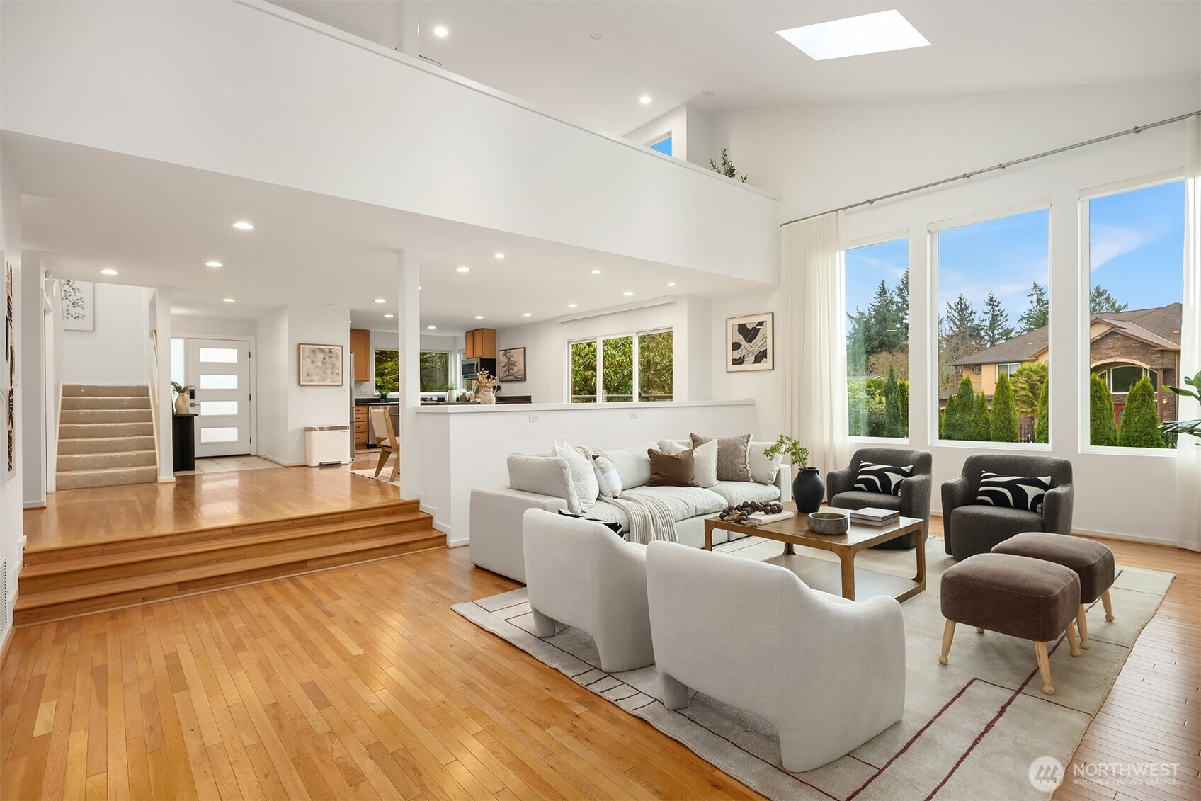 (650)533-3259Perched atop a quiet hill on a private cul-de-sac, this beautifully renovated home offers exceptional privacy, tranquility, and versatile living spaces. Set on a generous lot, the property provides a peaceful setting while remaining minutes from Juanita Village and Totem Lake, with easy walkability to Carl Sandburg Elementary, Finn Hill Middle School and access to two Choice School programs. Enjoy close proximity to beautiful hiking trails at Denny Park and St. Edward State Park. Thoughtfully updated with high-quality materials, the home features new siding, roof, windows, doors, and expansive composite decks designed for comfortable outdoor living. Inside, a warm transitional design blends traditional comfort with contemporary style, highlighted by soaring ceilings, large windows, and spacious living areas filled with natural light. The flexible layout includes a main-floor bedroom with its own separate entrance, ideal for guests, a home office, or extended living. Additional highlights include a finished attic perfect for a playroom or retreat, a functional mudroom with its own entrance, and a primary suite with private balcony. Outdoor living shines with multiple decks, a fully fenced yard, fruit trees, and space for gardening or play. A long driveway accommodates ample parking for cars, RV, or boat, while the detached two-car garage offers room for a workshop. Unique opportunity in a prime location.