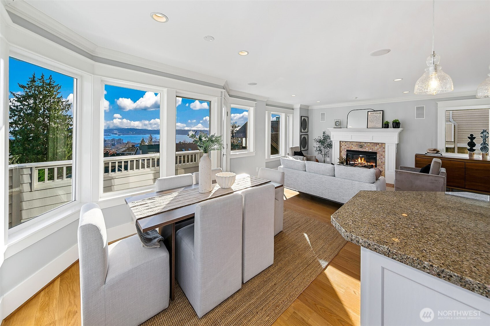 (650)533-3259Incredible city and water views from a quiet street on top of Queen Anne. South-facing windows showcase a Frasier-style view of the Space Needle, Cascades, Elliott Bay, Downtown Seattle, and Lake Union. Spacious rooms live gracefully: cozy up to the fireplace or gaze at the view from the large living room. Relax in the top-floor primary suite with its own view deck, soaking tub, separate shower, dual vanity, and large walk-in closet. Three additional bedrooms on the main and lower levels provide comfortable space for guests. Quality is obvious; cohesive craftsman-quality finishes with real materials like true wood floors and siding and quality millwork. A one-car garage and driveway offer convenient parking and storage. The top deck provides incredible privacy; a perfect setting for quiet mornings or sunset cocktails while taking in Elliott Bay. The multiple levels make this home a true haven; begin each morning with a sunrise - enjoy the separation with each floor offering its own space- then come together at day’s end to watch the cruise ships and ferries glide across the water. Easy, low-maintenance landscaping with beautiful year-round blooms and trees from the welcoming front approach to the ground-floor terrace. The home is set back from the street for privacy and discreet living, yet just blocks from some of Seattle’s best amenities—Queen Anne Boulevard, Trader Joe’s, Met Market, local restaurants and shops, and Seattle Center, Climate Pledge Arena, and SLU.