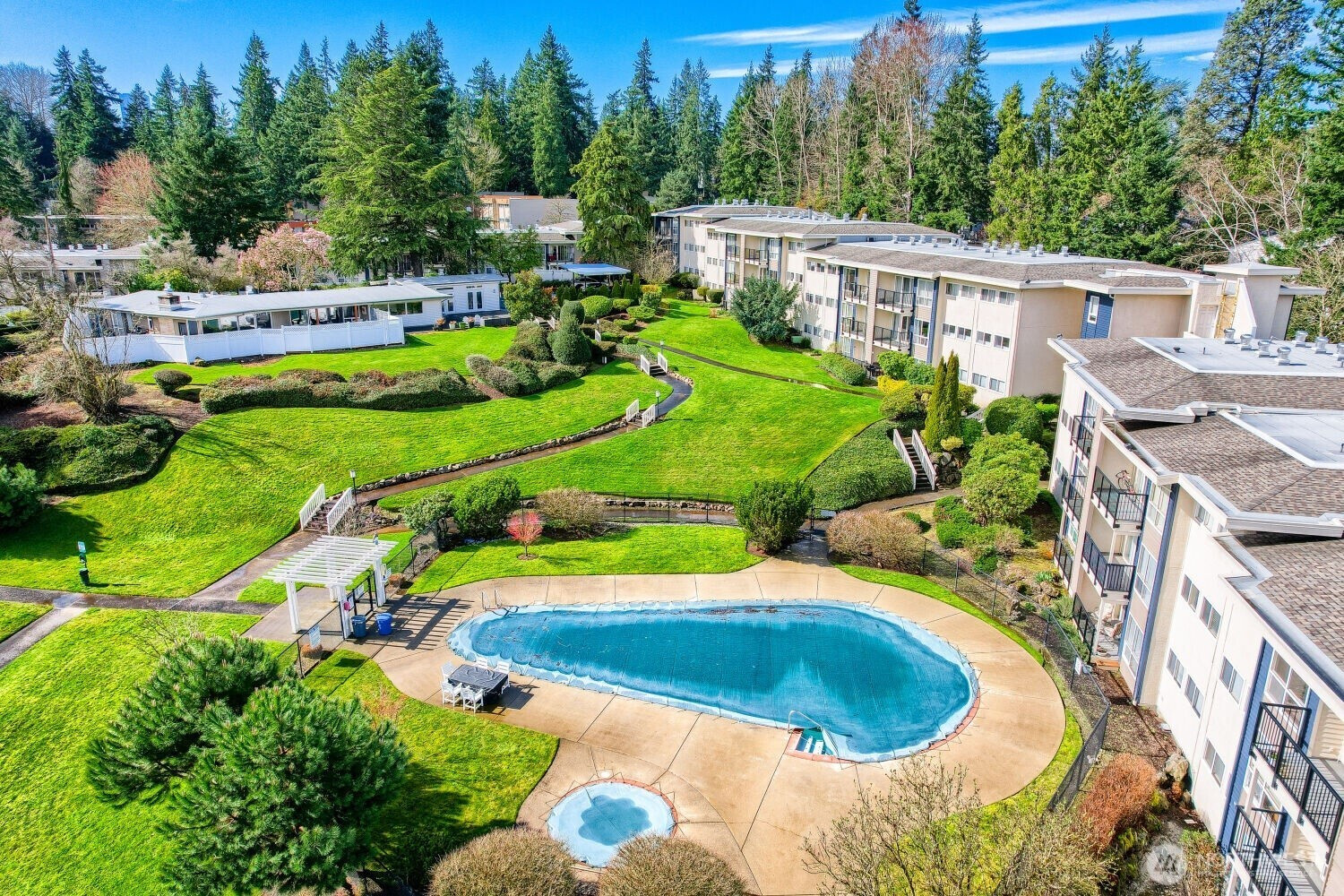 (650)533-3259Bright, newly renovated top-floor two-bedroom condo in the desirable Hidden Creek community, conveniently located near downtown Bellevue with easy access to I-405, SR-520, and the new 2 Line light rail. This move-in ready home features new appliances, fresh interior paint, updated lighting, and durable laminate flooring throughout. The spacious living room opens to a private deck, creating a quiet place to relax. Washer and dryer are included for added convenience, and the secure building offers elevator access. Enjoy community amenities including a swimming pool, cabana, and exercise room. Two assigned parking spaces are included. The complex has recently completed major renovations including new roofs, siding, plumbing repairs, new carpet, and updated elevators and decks. Located in the award-winning Bellevue School District. Rental cap met. Seller to pay off the special assessment at closing.