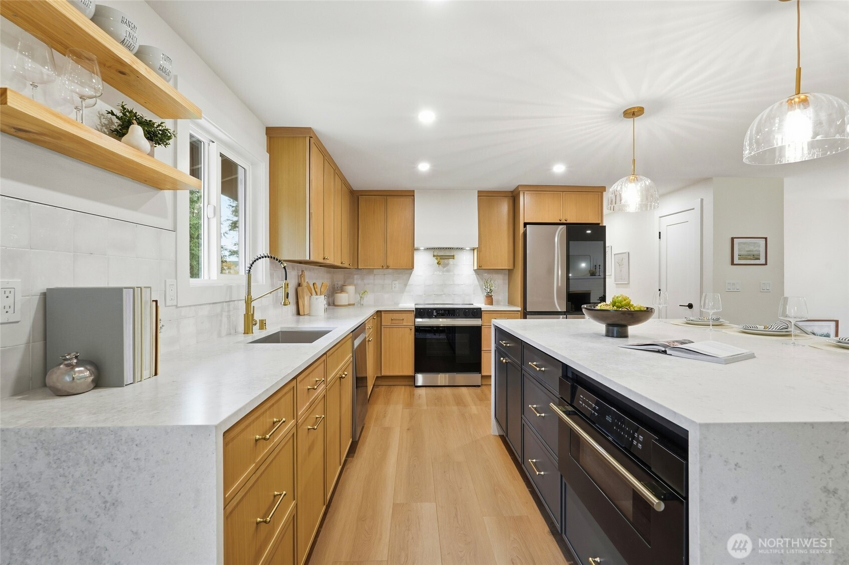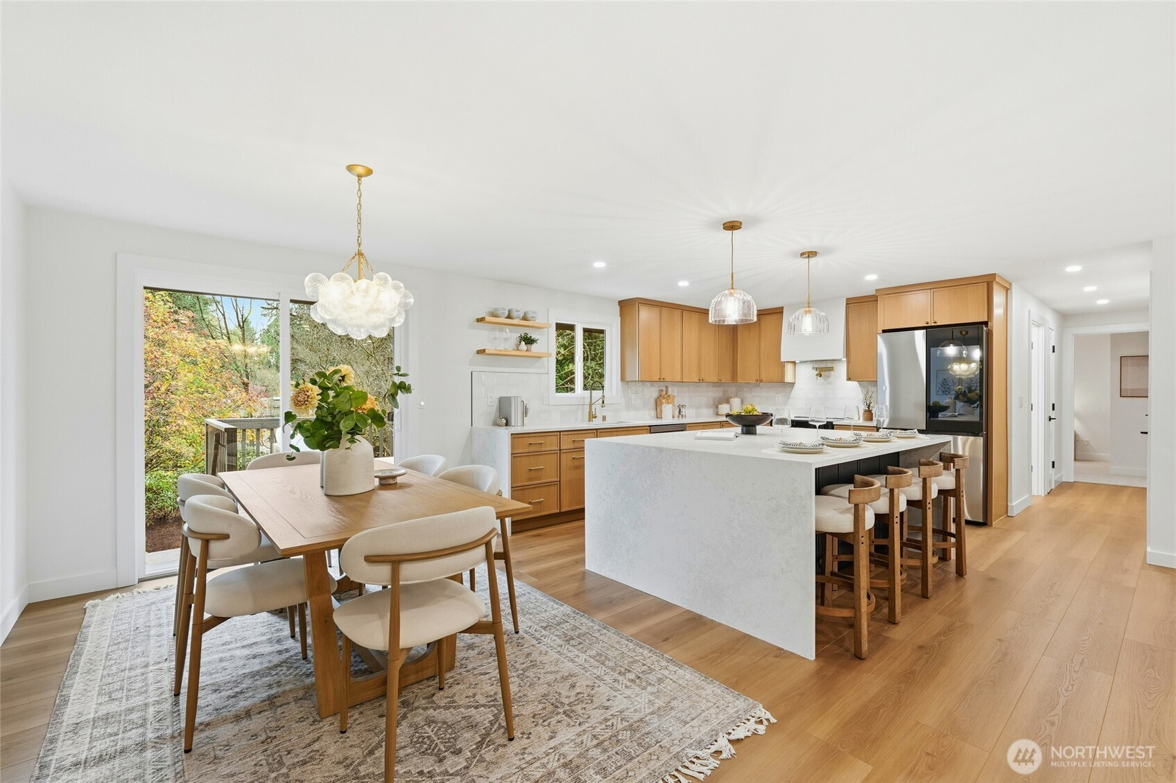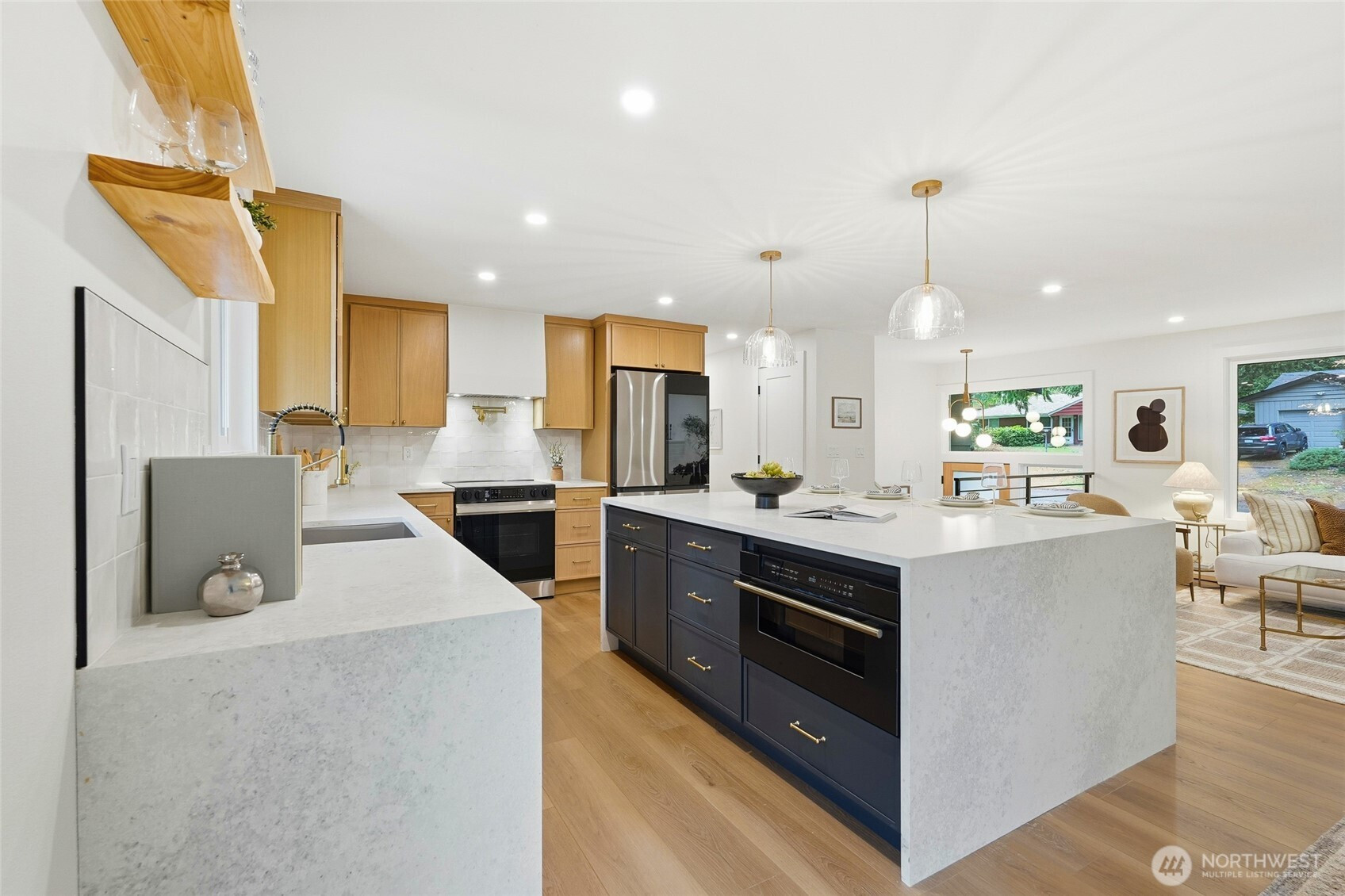 (650)533-3259Beautifully updated North Seattle home boasting a brand-new kitchen, roof, windows, WH and more. Light-filled open main floor with a designer two-tone kitchen and oversized double-sided island—ideal for cooking/food prep and gathering. Upper level hosts a primary ¾ suite, two bedrooms, and a stylish full bath with dual vanity. The lower level adds a generous family room with bar and wine cooler, plus a 4th bedroom, full bath, and laundry. Step out to the deck overlooking a large, level backyard with a wood-burning fireplace, perfect for cozy nights and daytime play. Ductless Mini Splits provide heat and AC. Attached 2-car garage completes the home.