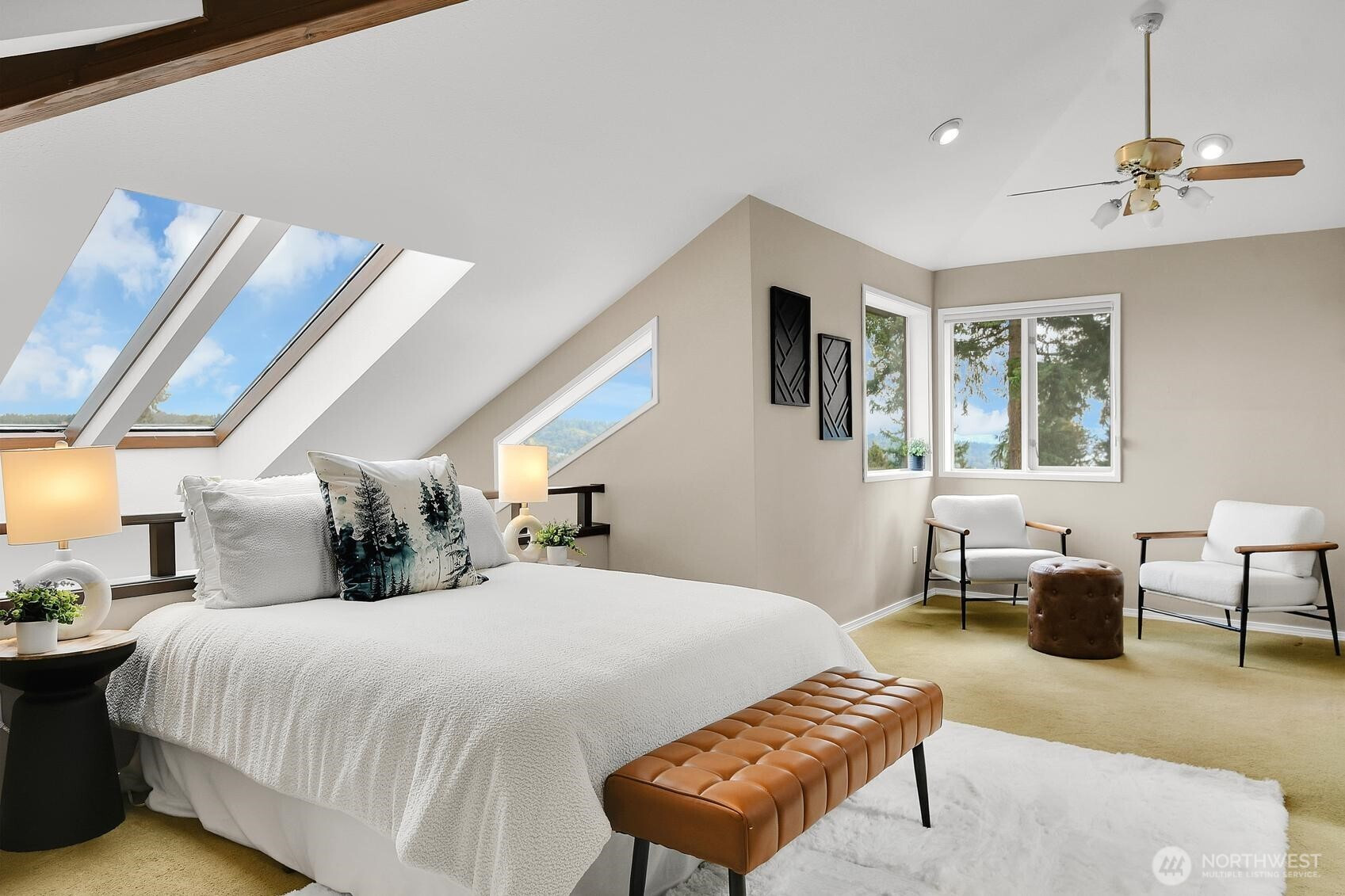 (650)533-3259Perched high above Lake Washington, this urban “Tree House” offers a rare blend of secluded privacy and breathtaking panoramic vistas of the lake and mountains. Originally honored as a Seattle Times/AIA Home of the Month, the residence features soaring ceilings and expansive window walls designed to immerse you in nature. The open concept main level is built for entertaining, boasting hardwood floors and a spacious kitchen that flows into living and dining areas, all opening to a newly constructed view deck. Retreat to the top-floor primary suite, a private sanctuary complete with a remodeled bath, walk-in closet, and personal sauna. The lower level provides versatile living space with three additional bedrooms and a large game/media room anchored by a cozy gas fireplace. Outside, tiered garden space and a covered patio offer endless possibilities. Two car garage with ample loft storage for all the toys. Situated at the end of a quiet street with easy access to the Burke-Gilman Trail. A true “In City Retreat”!