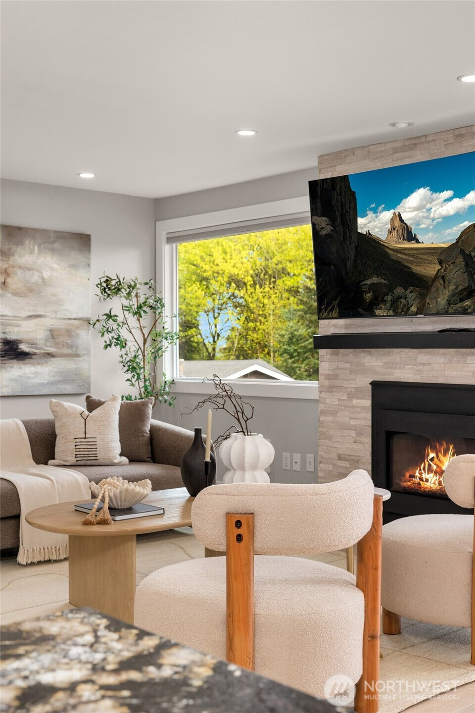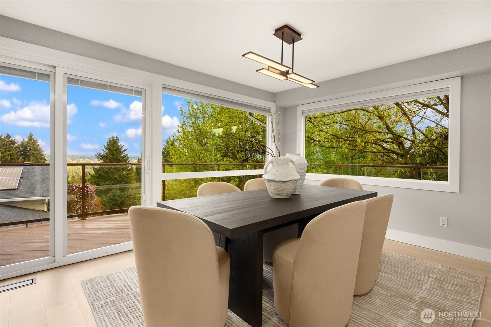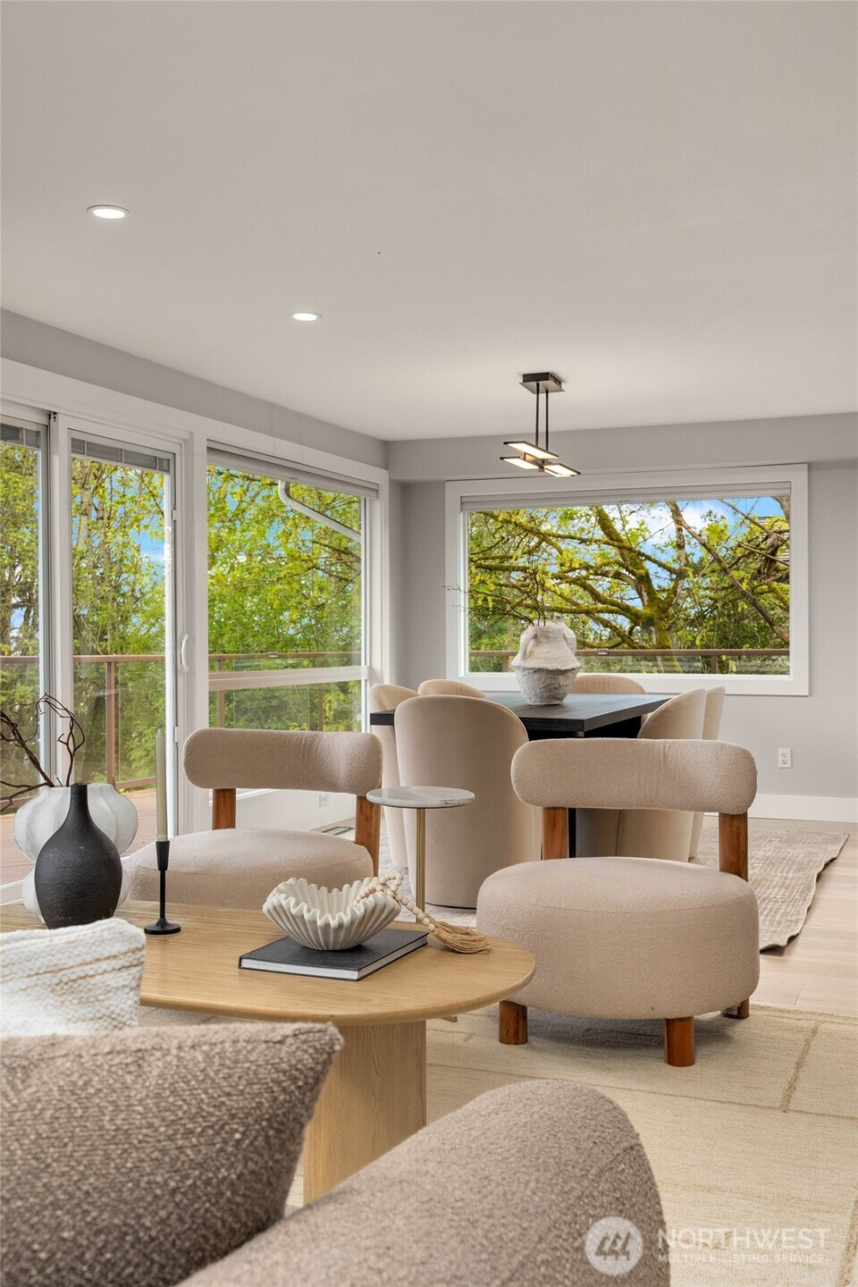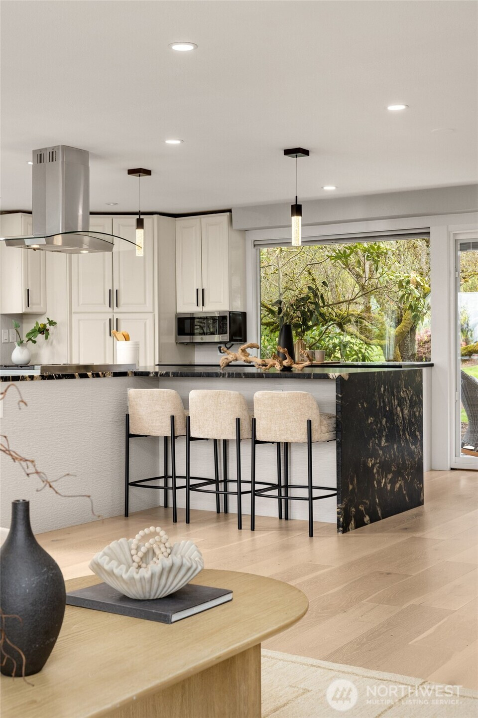 (650)533-3259VIEWS!! Jaw-dropping territorial & mountain views set the stage for this beautifully updated home where every detail has been elevated. Stunning by day & breathtaking at sunset, the views never get old. The open main level is flooded with abundant natural light through oversized windows and stunning views creating an effortless flow between living, dining, and kitchen — with all main living spaces conveniently on one floor for easy daily living. The chef’s kitchen is the heart of it all — anchored by a dramatic quartz island with a waterfall edge, gas range + a breakfast bar perfectly positioned to take in the views. Wide-plank hardwood floors tie the space together with a refined, contemporary edge. The living room features a stacked stone gas fireplace, & a slider opens directly to a large wraparound deck designed for view-chasing at every hour. The primary suite is conveniently located on the main floor. Two other bedrooms on the main floor level as well. The lower level features a fully equipped 2nd kitchen, a bedroom, expansive family room, gas fireplace, & a separate private entrance, offering 2 fully independent levels & exceptional flexibility for guests, extended family, or rental income. This move-in-ready gem combines functional design w/ the best of Pacific Northwest living. Newer appliances, furnace, & water heater. Tucked in a private, quiet Finn Hill neighborhood, adjacent to greenbelt, mins from DT Kirkland.
