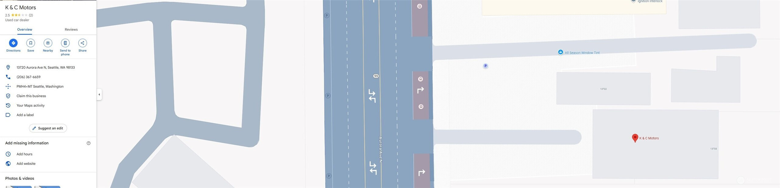 (650)533-3259Comes with current income of $3000 a month from Tint specialist on site that is currently renting back buiding 2 Lots, - with 8,000+ in building sq.ft, The area is a hotspot for growth, with WinCo Foods now in the neighborhood and an 8-story apartment/condo complex already under development across the street. High Visibility: 100 feet of street frontage on the bustling Aurora Avenue North ensures maximum exposure. Strategic Access: Minutes from Seattleās downtown core without the congestion, offering convenience for both businesses and residents. Thriving Neighborhood: Surrounded by ongoing and future urban developments, mixed-use or residential projects. Commercial Investors looking to establish retail or office spaces.