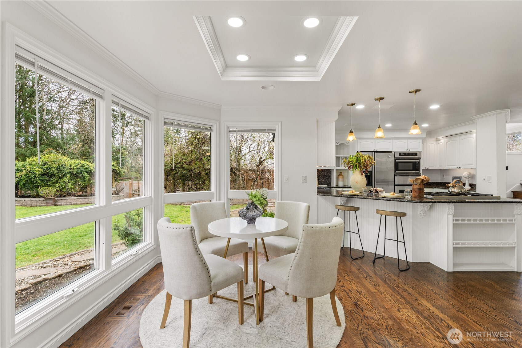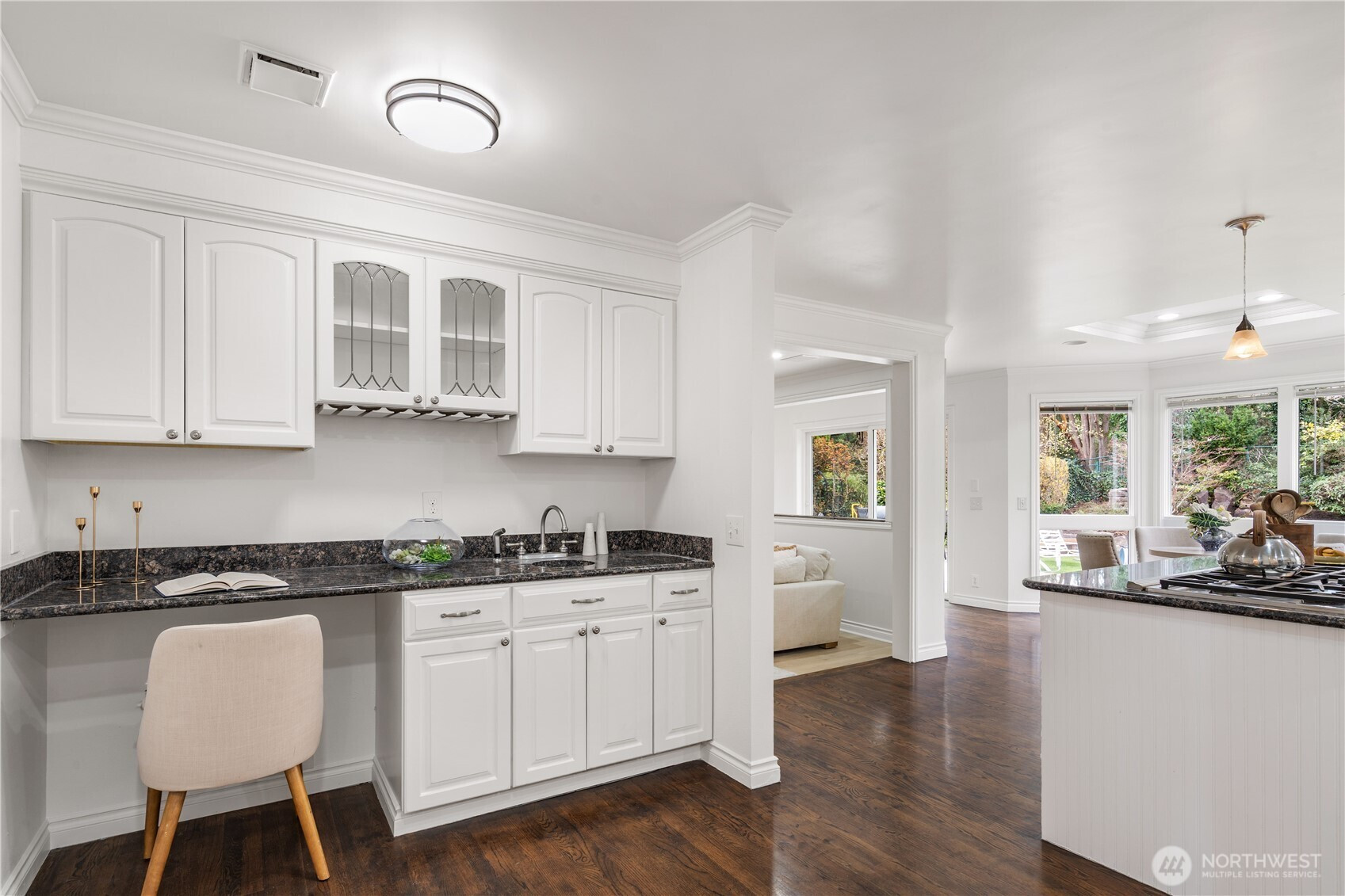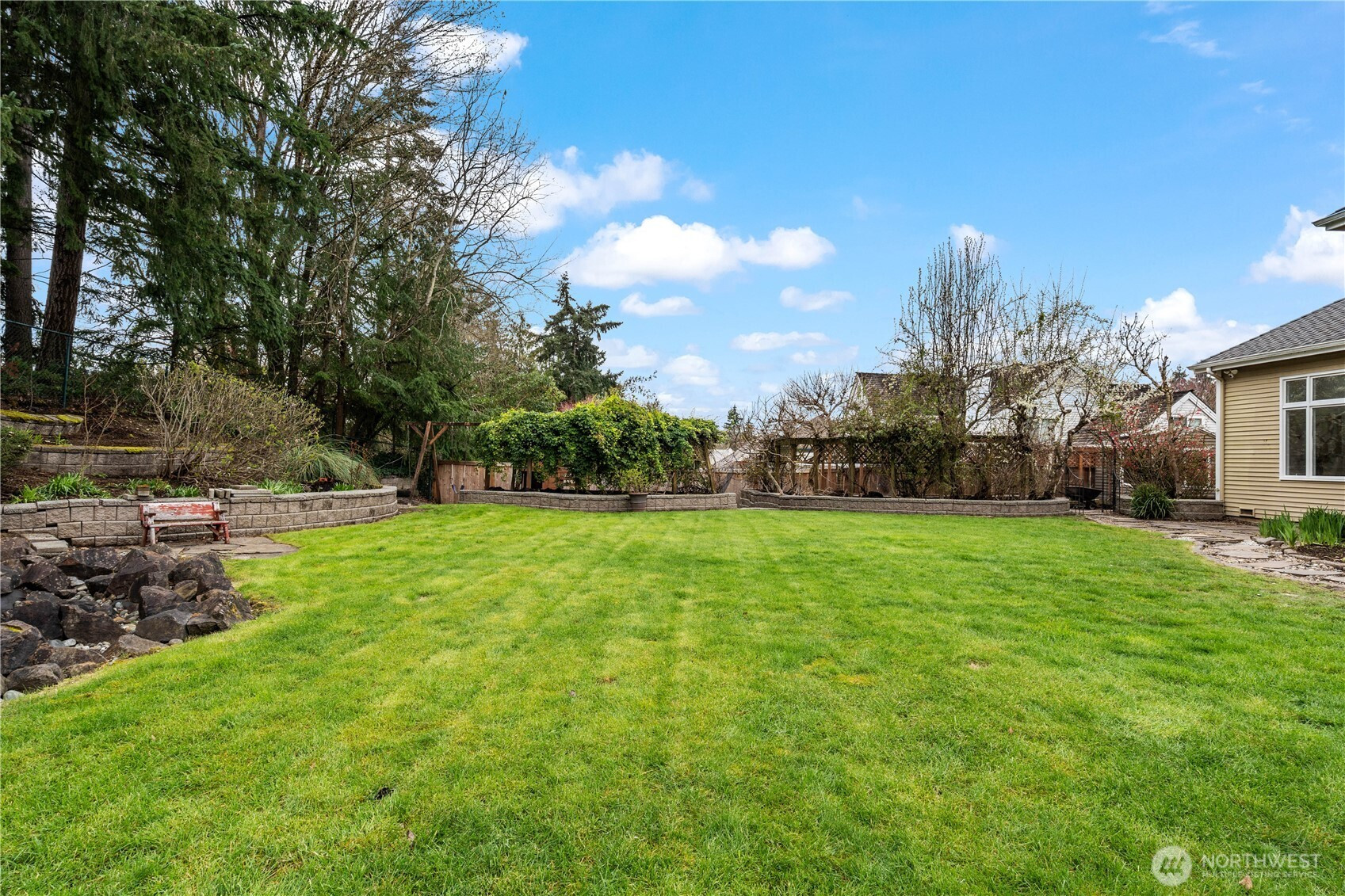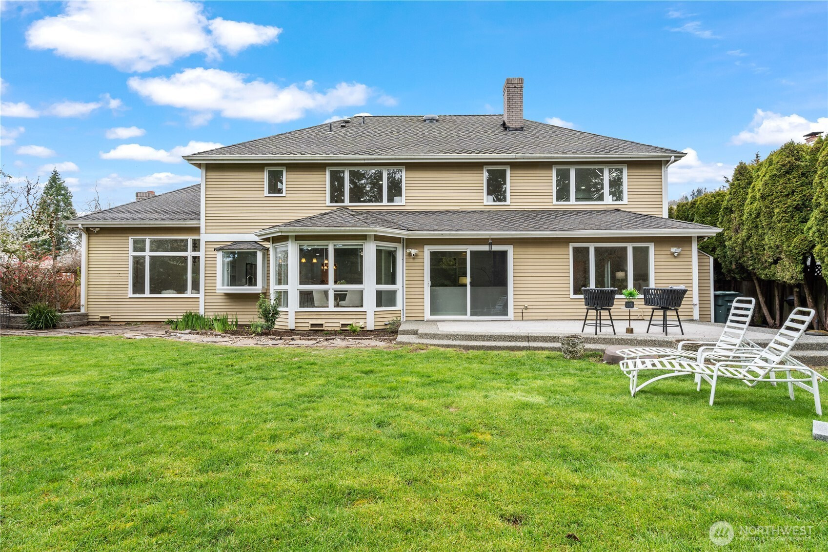 (650)533-3259Exceptional luxury living in coveted Amherst! Situated on a rare, expansive level lot backing to a serene greenbelt, this beautifully updated 5-bedroom, 4.5-bath residence offers timeless elegance, privacy, and modern comfort in one of Bellevue’s most desirable neighborhoods. Grand vaulted ceilings, skylights, rich hardwood floors, and two fireplaces create a warm yet sophisticated ambiance. Formal living and dining rooms provide refined entertaining spaces, while the dramatic family room opens seamlessly to the updated gourmet kitchen, featuring quartz countertops, stainless steel appliances, double ovens, and a sunlit breakfast nook overlooking the lush south-facing backyard. The luxurious primary suite is a private retreat with sitting area, oversized walk-in closet, and spa-inspired 5-piece bath. A main-floor guest suite is ideal for visitors or multigenerational living. Designed for exceptional indoor-outdoor living with an entertainment-sized deck, patio, built-in fire pit, pond with waterfall, fully fenced yard, vegetable gardens, fruit trees, and fragrant shrubs including jasmine, gardenia, lavender, and lilac. Major updates include new interior paint, new flooring, kitchen upgrades, refreshed landscaping, 2 new furnaces and A/Cs, new sump pump, attic and crawl space insulation, and newer garage doors. 2012 roof. Award-winning Bellevue schools. A rare blend of luxury, space, and lifestyle.