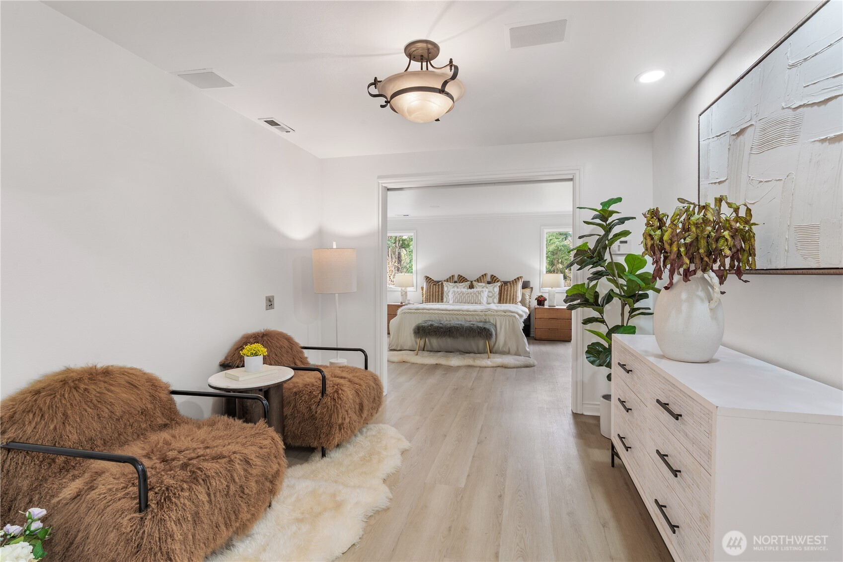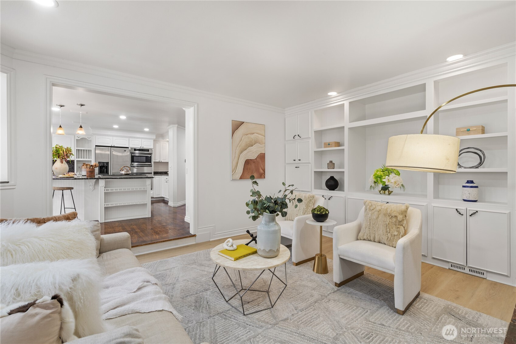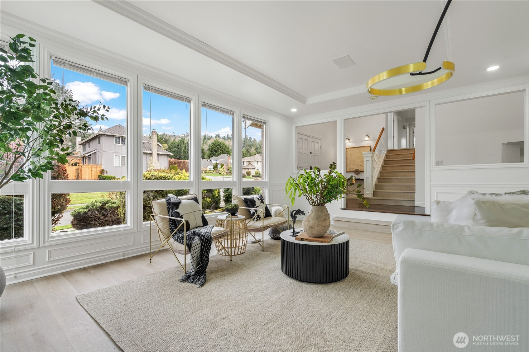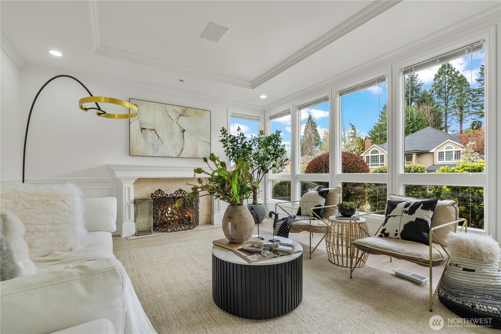 (650)533-3259Exceptional luxury living in coveted Amherst! Situated on a rare, expansive level lot backing to a serene greenbelt, this beautifully updated 5-bedroom, 4.5-bath residence offers timeless elegance, privacy, and modern comfort in one of Bellevue’s most desirable neighborhoods. Grand vaulted ceilings, skylights, rich hardwood floors, and two fireplaces create a warm yet sophisticated ambiance. Formal living and dining rooms provide refined entertaining spaces, while the dramatic family room opens seamlessly to the updated gourmet kitchen, featuring quartz countertops, stainless steel appliances, double ovens, and a sunlit breakfast nook overlooking the lush south-facing backyard. The luxurious primary suite is a private retreat with sitting area, oversized walk-in closet, and spa-inspired 5-piece bath. A main-floor guest suite is ideal for visitors or multigenerational living. Designed for exceptional indoor-outdoor living with an entertainment-sized deck, patio, built-in fire pit, pond with waterfall, fully fenced yard, vegetable gardens, fruit trees, and fragrant shrubs including jasmine, gardenia, lavender, and lilac. Major updates include new interior paint, new flooring, kitchen upgrades, refreshed landscaping, 2 new furnaces and A/Cs, new sump pump, attic and crawl space insulation, and newer garage doors. 2012 roof. Award-winning Bellevue schools. A rare blend of luxury, space, and lifestyle.