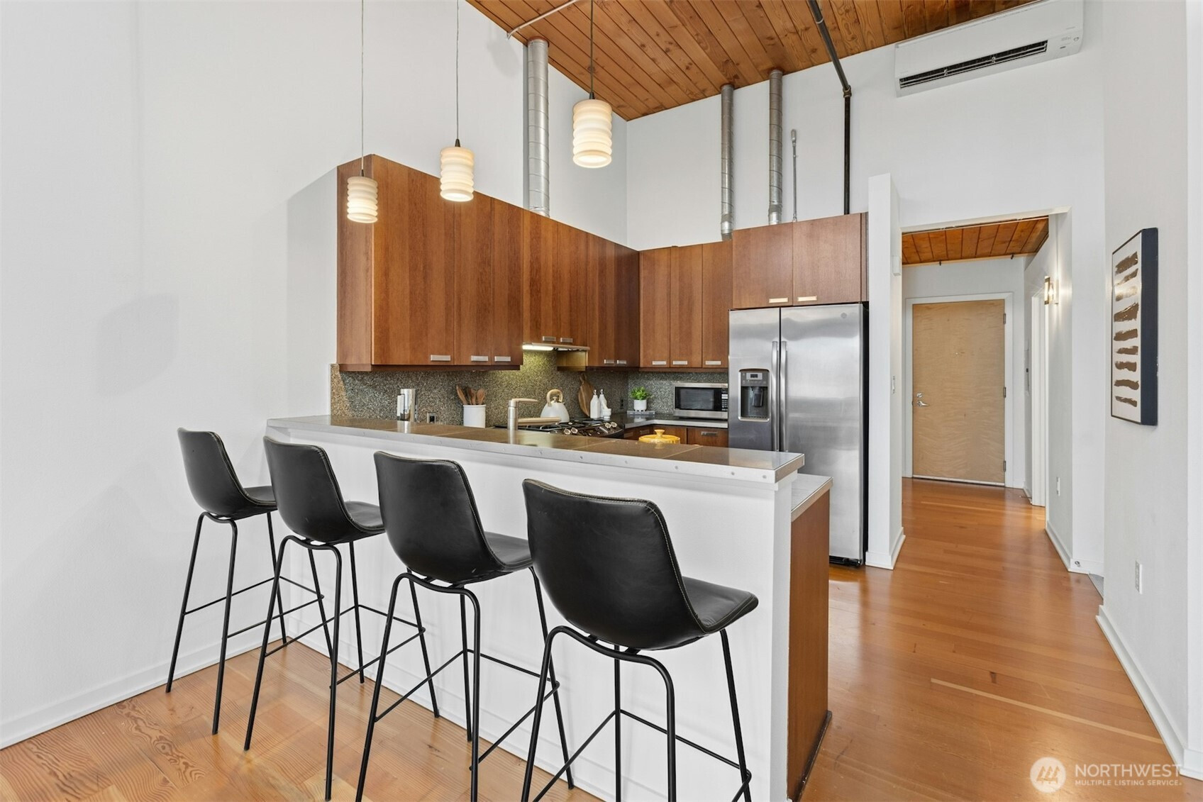 (650)533-3259Experience urban loft living at the iconic historic Trace Lofts. This stylish residence features reclaimed Douglas Fir floors with southern exposure. The clerestory windows fill this condo with natural light, making it feel larger due to the tall ceiling. When visiting this home, you’ll finally say, “Wow! This is a cool, well-designed home.” The open-concept living space includes a very comfortable modern kitchen with stainless steel appliances, under-cabinet lighting, and contemporary finishes—perfect for everyday living and entertaining. Step outside through the French doors to your private balcony or enjoy the building’s rooftop deck, which offers chaise lounge chairs, or nestle around the gas fire pit with friends in a very comfortable space. This 1-bedroom, 1-bathroom condo boasts 807 sq ft of thoughtfully designed space, blending historic character with modern comfort. As you enter the lobby, you'll see sewing machines that reflect the factory that occupied this building years ago. The building offers a secure package delivery area. One secured parking space is included, with an additional parking space available. The building is clean, with a well-maintained community reflecting a well-run HOA. Located in one of Seattle’s most walkable neighborhoods, with a Walk Score of 99, you’re just steps from restaurants, coffee shops, nightlife, groceries, and entertainment. A rare opportunity to own a piece of Seattle’s historic warehouse loft living.