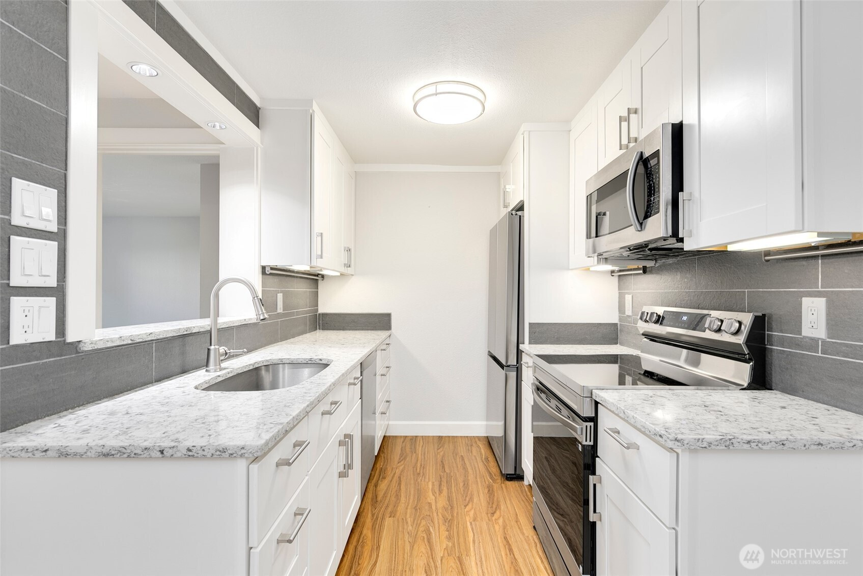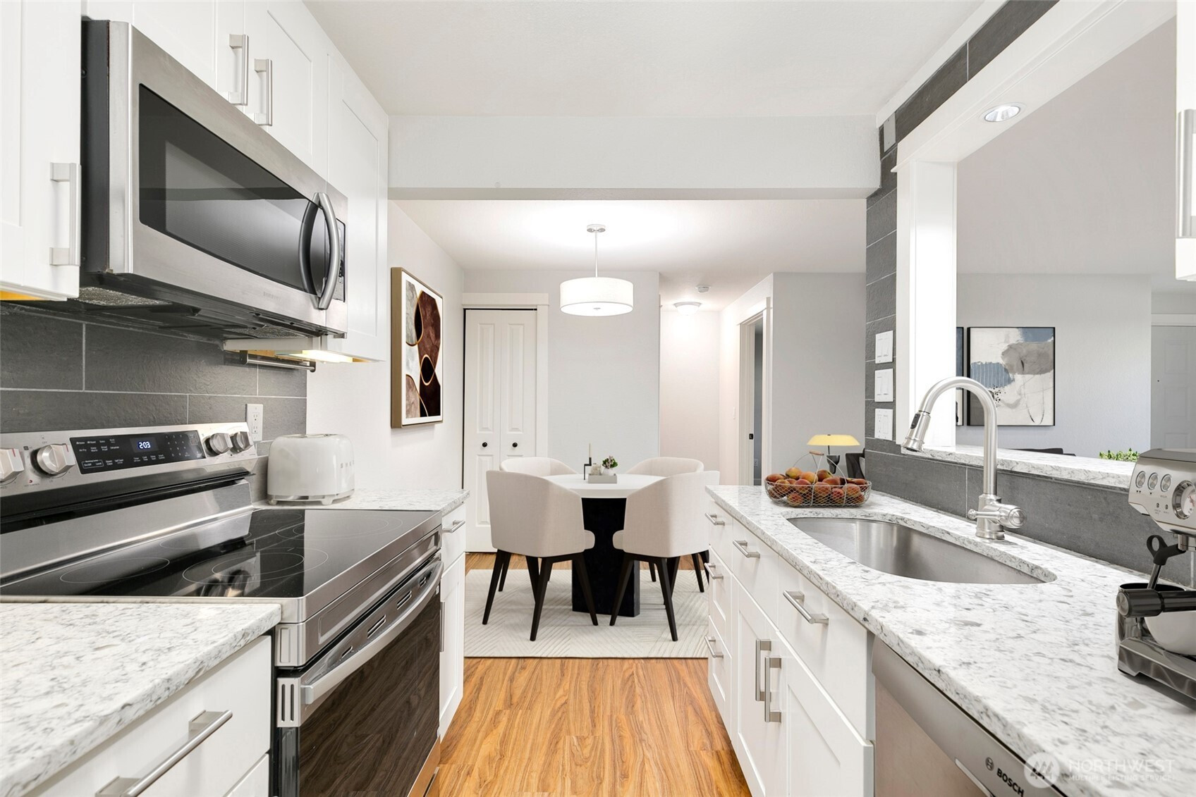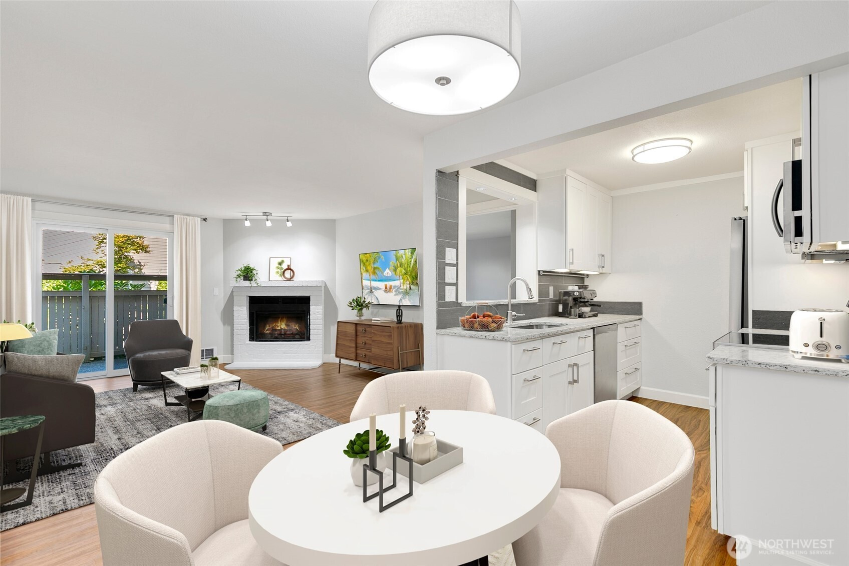 (650)533-3259Striking NW Contemporary style 2 bedroom/1.75 bath condo in sought-after Woodland Hills. This ground floor unit features an open concept floorplan that’s bathed in natural light with luxury vinyl plank flooring, custom lighting, & 2 primary bedroom suites. The fully updated gourmet galley style kitchen features quartz counters, custom crisp white cabinets, brand new designer SS appliances, tons of storage, & a full height tile backsplash all in a modern neutral color palette. The living room features a wood burning fireplace with a classic white tiered mantel & brick hearth, adjoining access to the dining room and patio, and plenty of space for entertaining. Unique design with two large primary bedrooms on opposite ends of the unit, each with its own dedicated bath & deep closets with tons of storage. Private & fenced patio ready for summer outdoor entertaining. Additional features include an in-unit full size washer and dryer, freshly painted interior in designer neutral colors, dedicated storage unit, 1-car carport parking directly adjacent to the unit, quiet location, and much more. Well managed HOA that’s pet friendly with ample reserves on park-like grounds with cabana, inground pool, hot tub, exercise facility, & athletic courts. Conveniently located in the heart of Woodinville near award winning restaurants, cafes, wineries, Northshore schools, and more. Just minutes to local shopping, Gold Creek County Park, hiking/biking trails, SR-522/I405, & rapid transit.