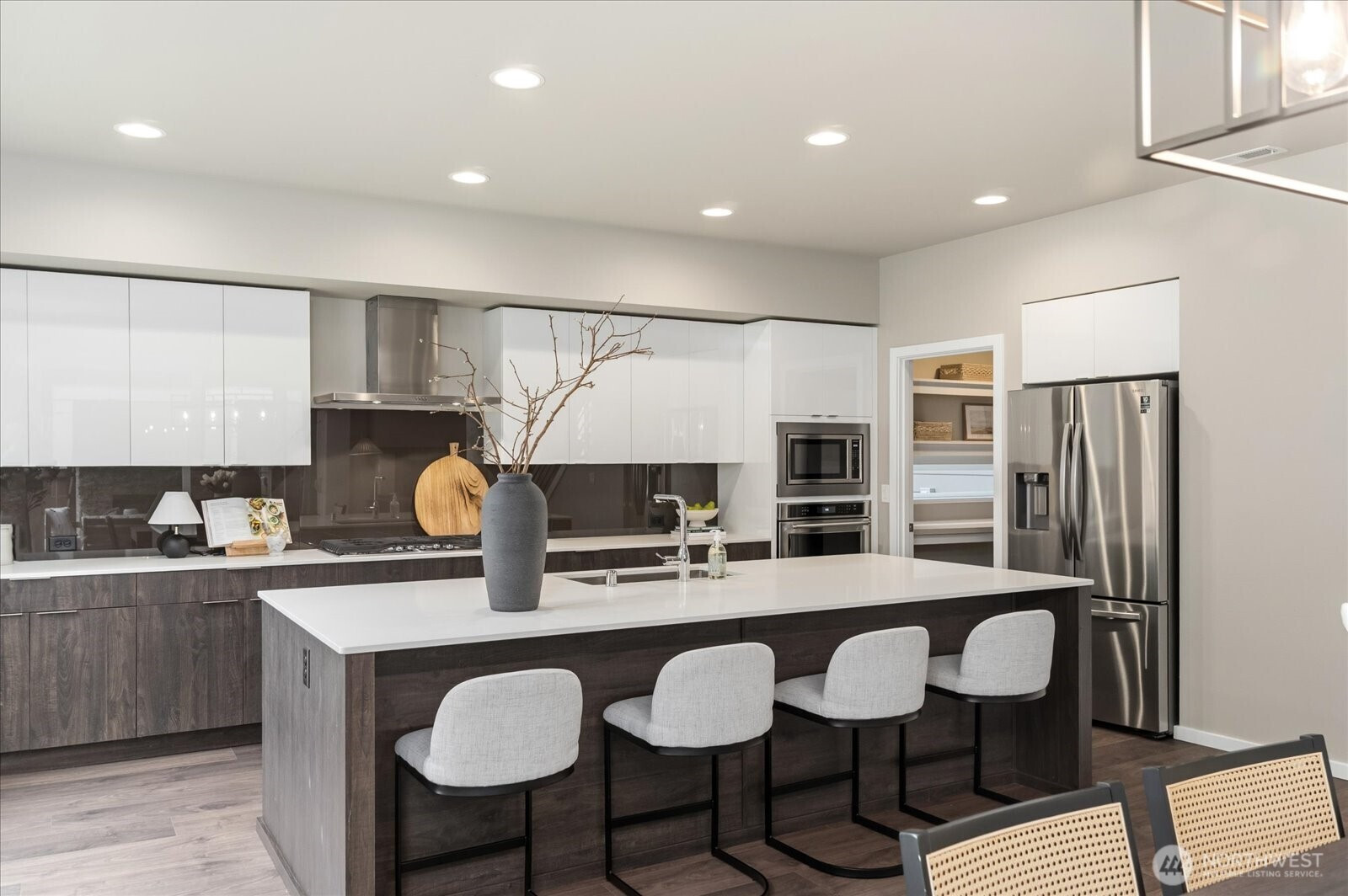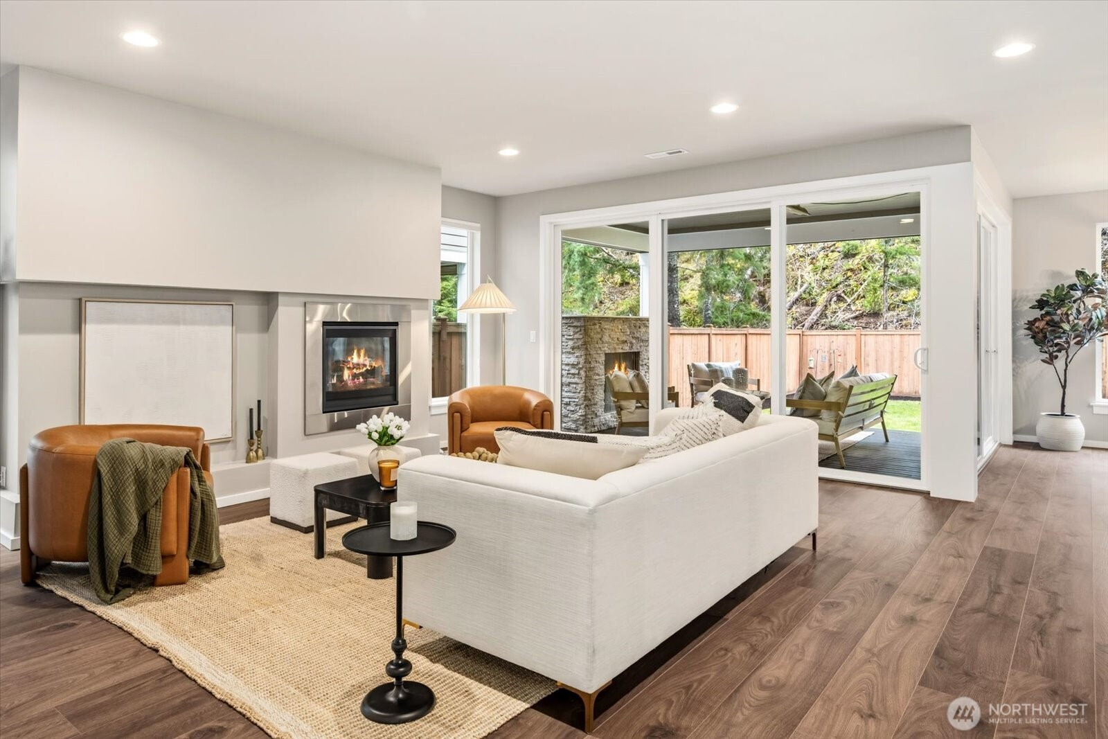 (650)533-3259Ideally situated in North Bend, this 4-bedroom, with office & loft, and 2.5 bathroom residence captures the essence of refined NW Contemporary living with luminous mountain views from the front of the home. Modern architecture meets natural beauty as you enter an expansive great room where oversized windows invite abundant natural light. The open floor plan transitions seamlessly into a chef’s kitchen equipped with stainless steel appliances, a generous prep island, and a substantial butler’s pantry. The adjacent dining area serves as an intentional space for effortless entertaining. Full-height sliding glass walls dissolve the boundary to a covered signature outdoor room, complete with a stone-surround fireplace and integrated overhead heating for year-round enjoyment. Upstairs, the primary sanctuary features French doors and a bespoke five-piece bath with a large soaking tub. Bedrooms are designed with a walk-in closet, including a notably large guest bedroom with sweeping views. To complete the incredible layout, a dedicated office provides a quiet sanctuary for productivity, while an upper-level open loft leisure space offers additional flexibility. Premium hardwoods flow consistently across both levels, reflecting a cohesive, elevated aesthetic. The level, fully fenced backyard offers a private sanctuary, complemented by a three-car garage, air conditioning, and tankless water heater. Nearby top-rated schools, parks, transit, freeways, shopping, and dining! Welcome home!