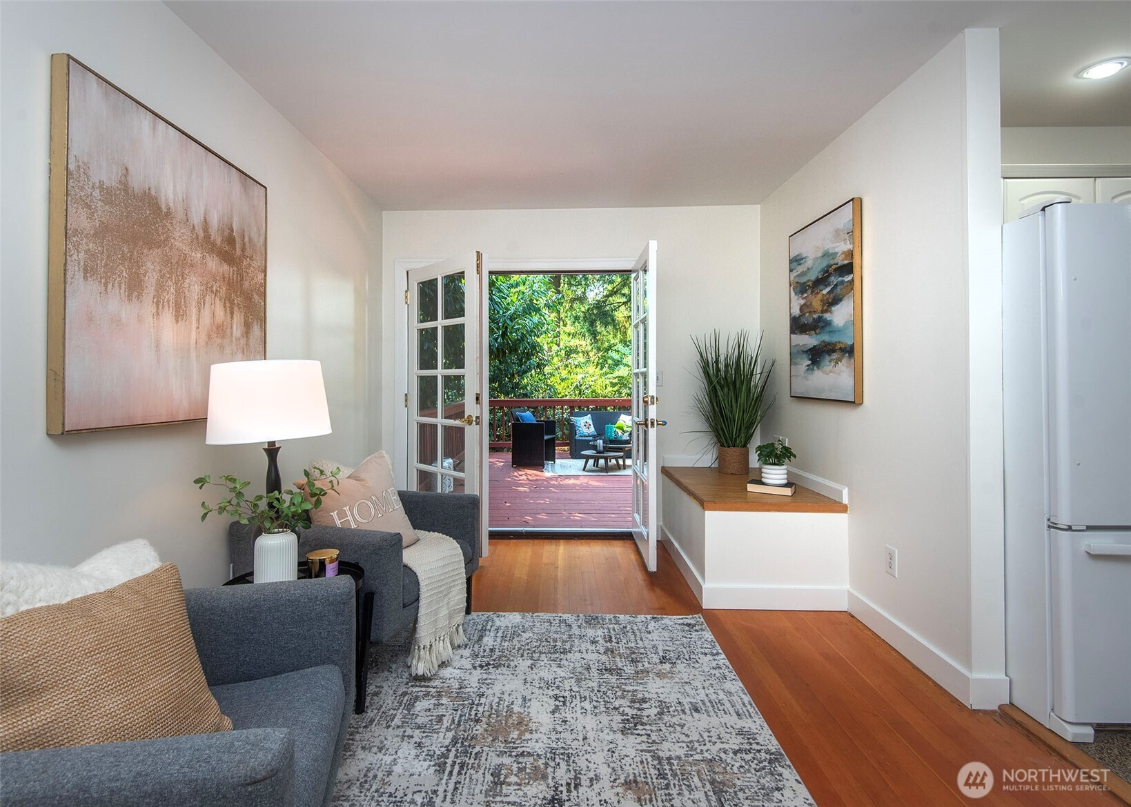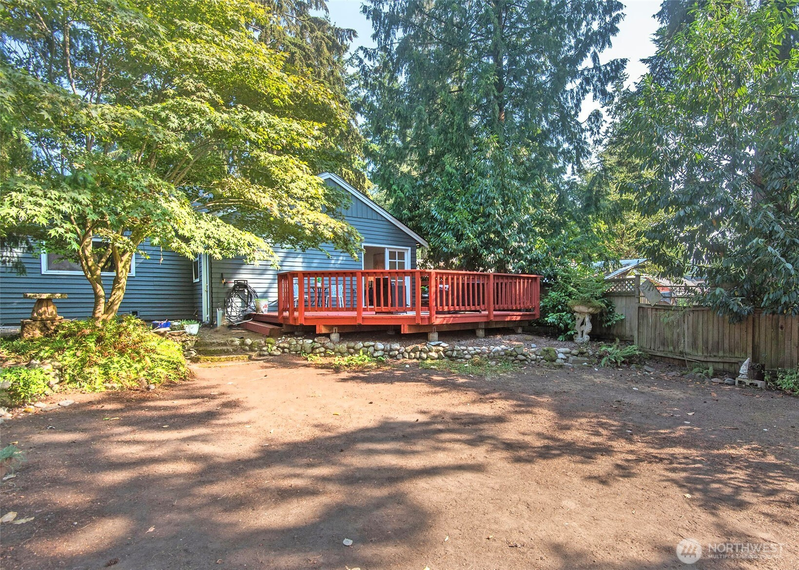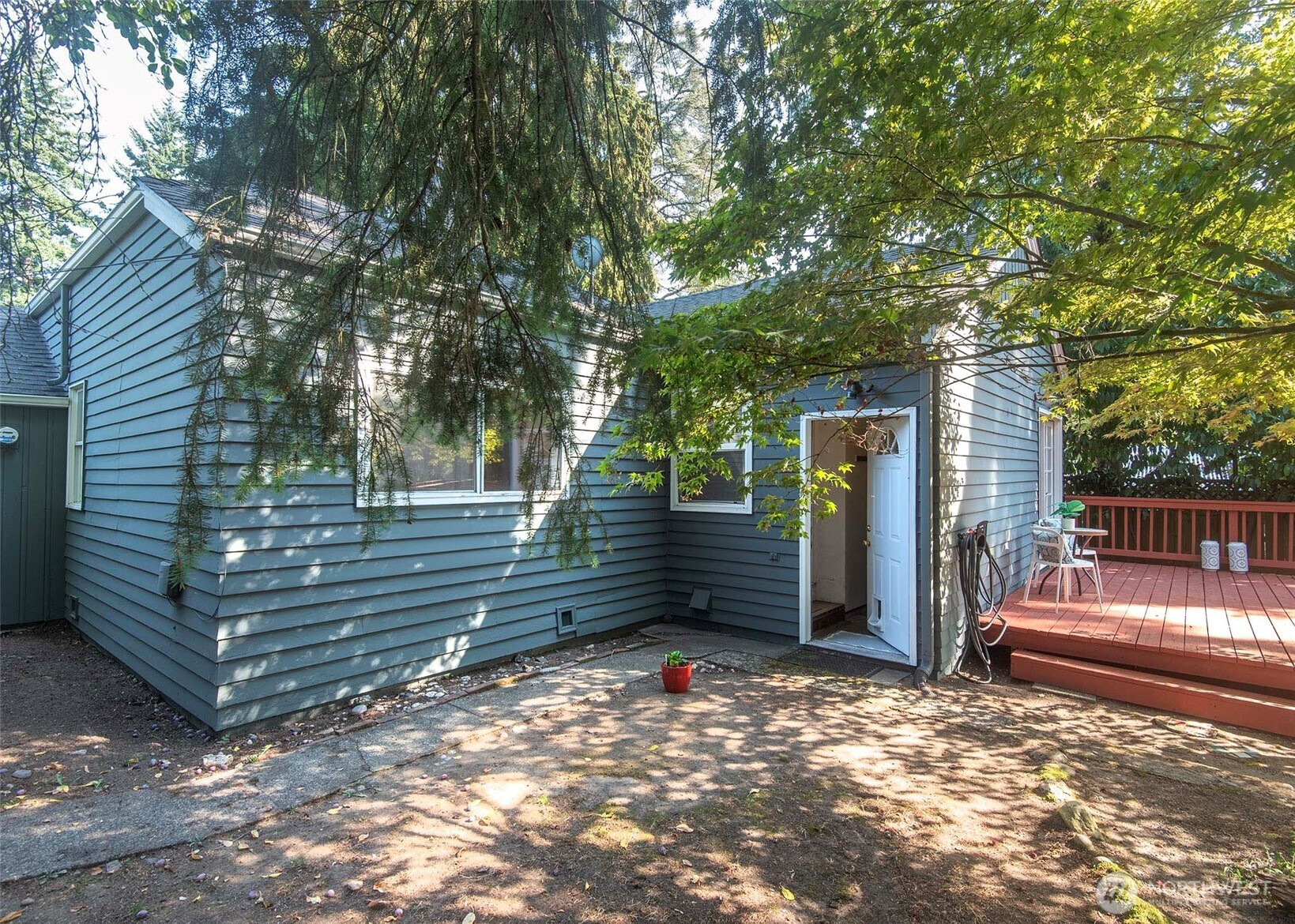 (650)533-3259Come check out this charming home with a great eat in open kitchen with walk in pantry, Marmoleum flooring, breakfast bar/island, and French doors off dining room making this a wonderful space to live in. French doors lead to spacious deck & large fenced backyard with mature trees. Located on a nice street in Olympic Hills making this a terrific location with short distance to light rail, restaurants, cafes, shopping, freeway, & Jackson Park Golf Course. Fresh paint, updated plumbing, recent gas forced air furnace & hot water tank, hardwood floors, wood burning fireplace, basement with front load washer/dryer/utility sink/storage, one car attached garage, & 2 bedrooms & full bathroom round out this home & make it a must see!!!