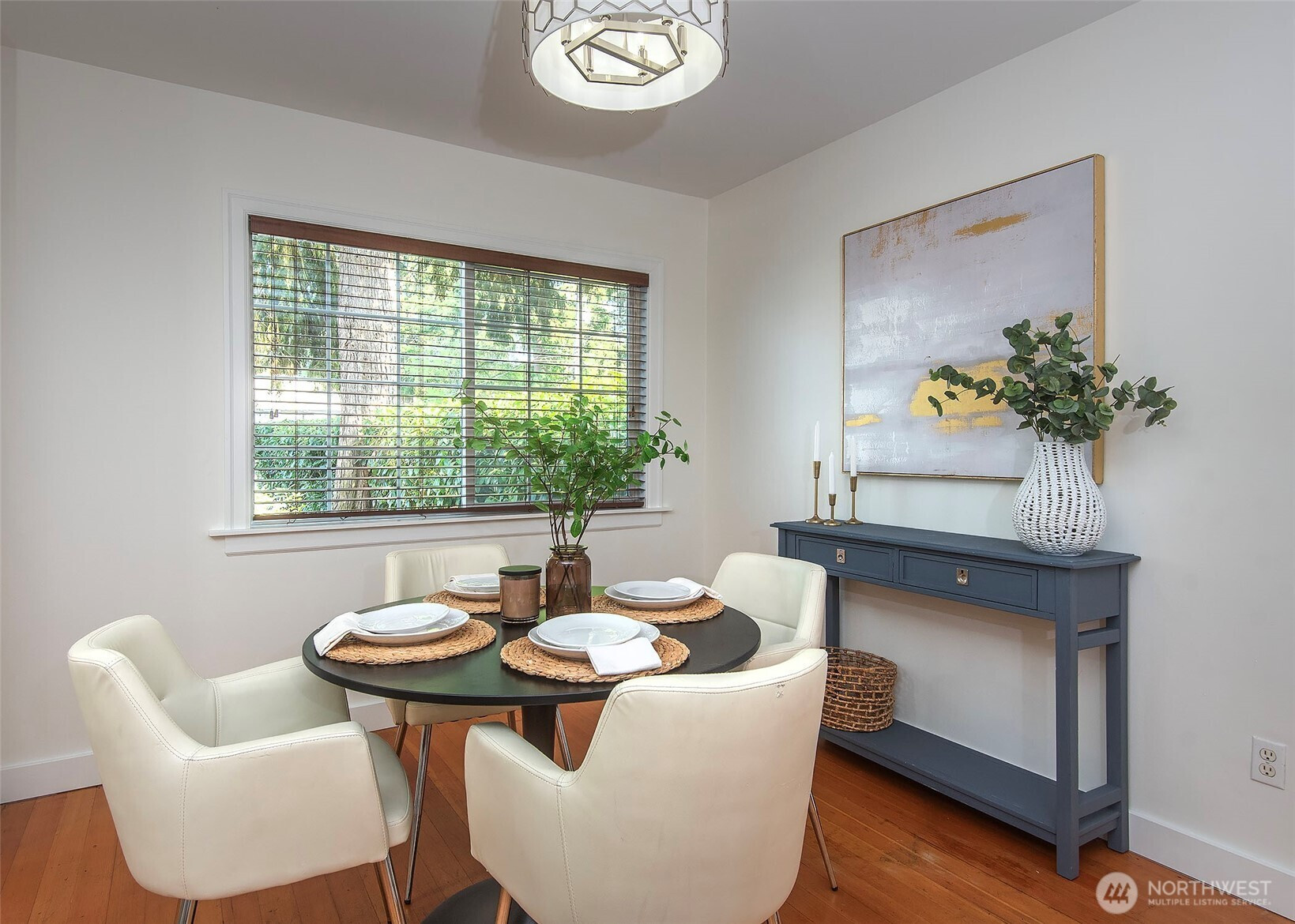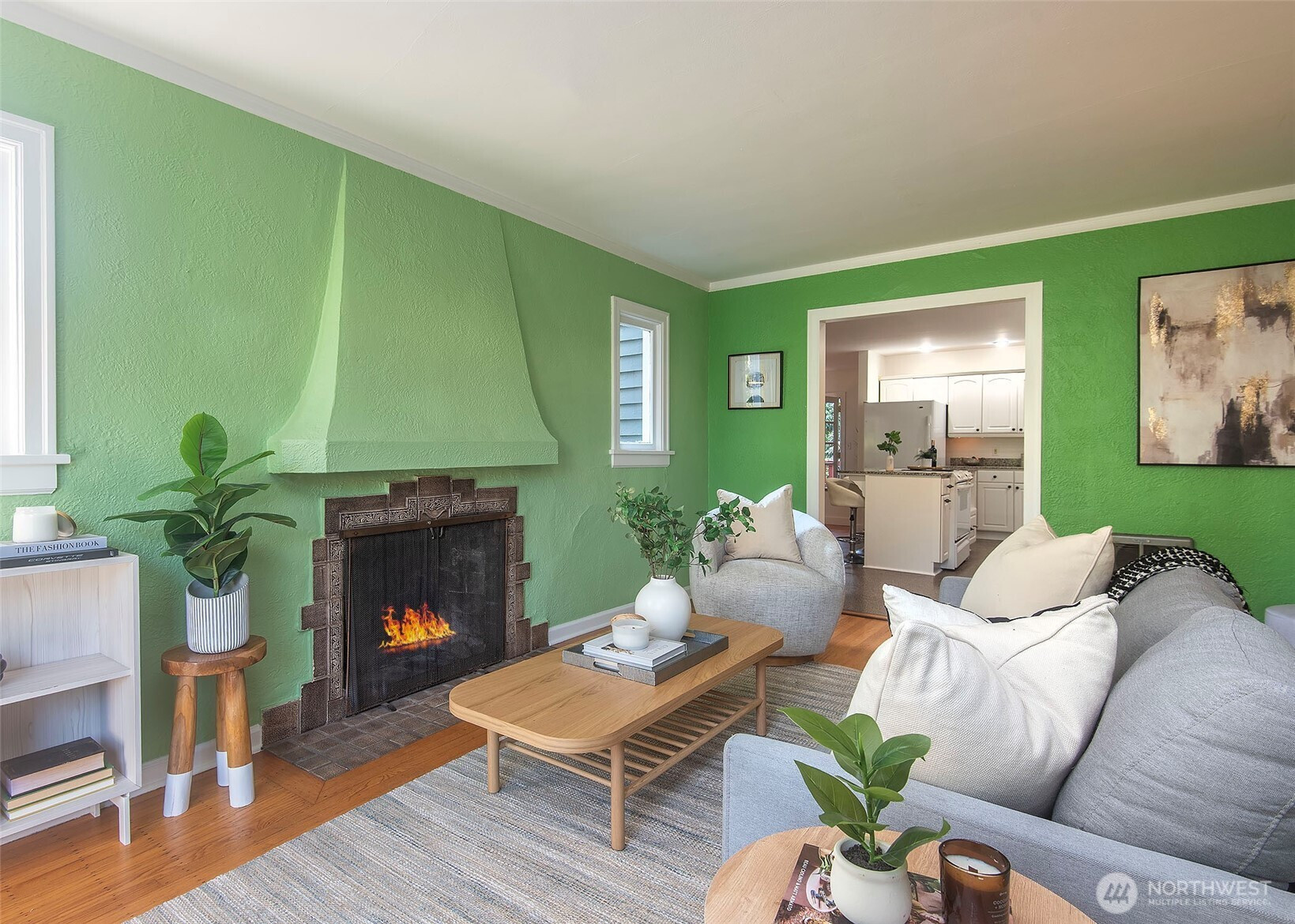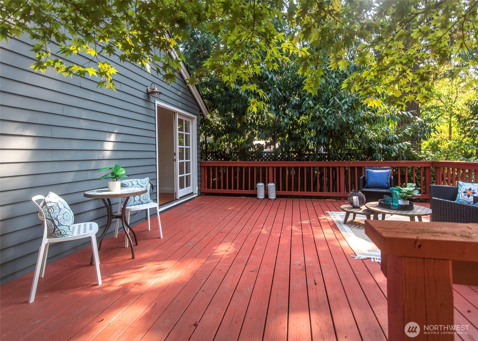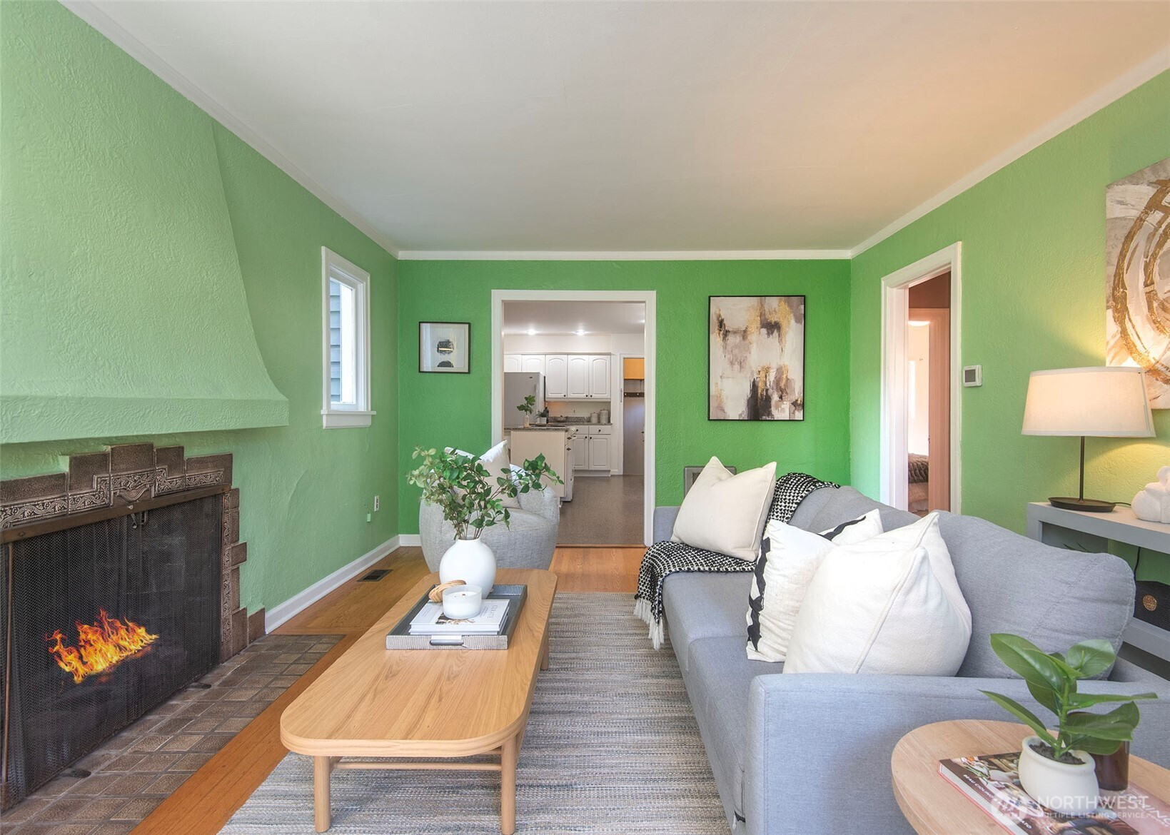 (650)533-3259Come check out this charming home with a great eat in open kitchen with walk in pantry, Marmoleum flooring, breakfast bar/island, and French doors off dining room making this a wonderful space to live in. French doors lead to spacious deck & large fenced backyard with mature trees. Located on a nice street in Olympic Hills making this a terrific location with short distance to light rail, restaurants, cafes, shopping, freeway, & Jackson Park Golf Course. Fresh paint, updated plumbing, recent gas forced air furnace & hot water tank, hardwood floors, wood burning fireplace, basement with front load washer/dryer/utility sink/storage, one car attached garage, & 2 bedrooms & full bathroom round out this home & make it a must see!!!