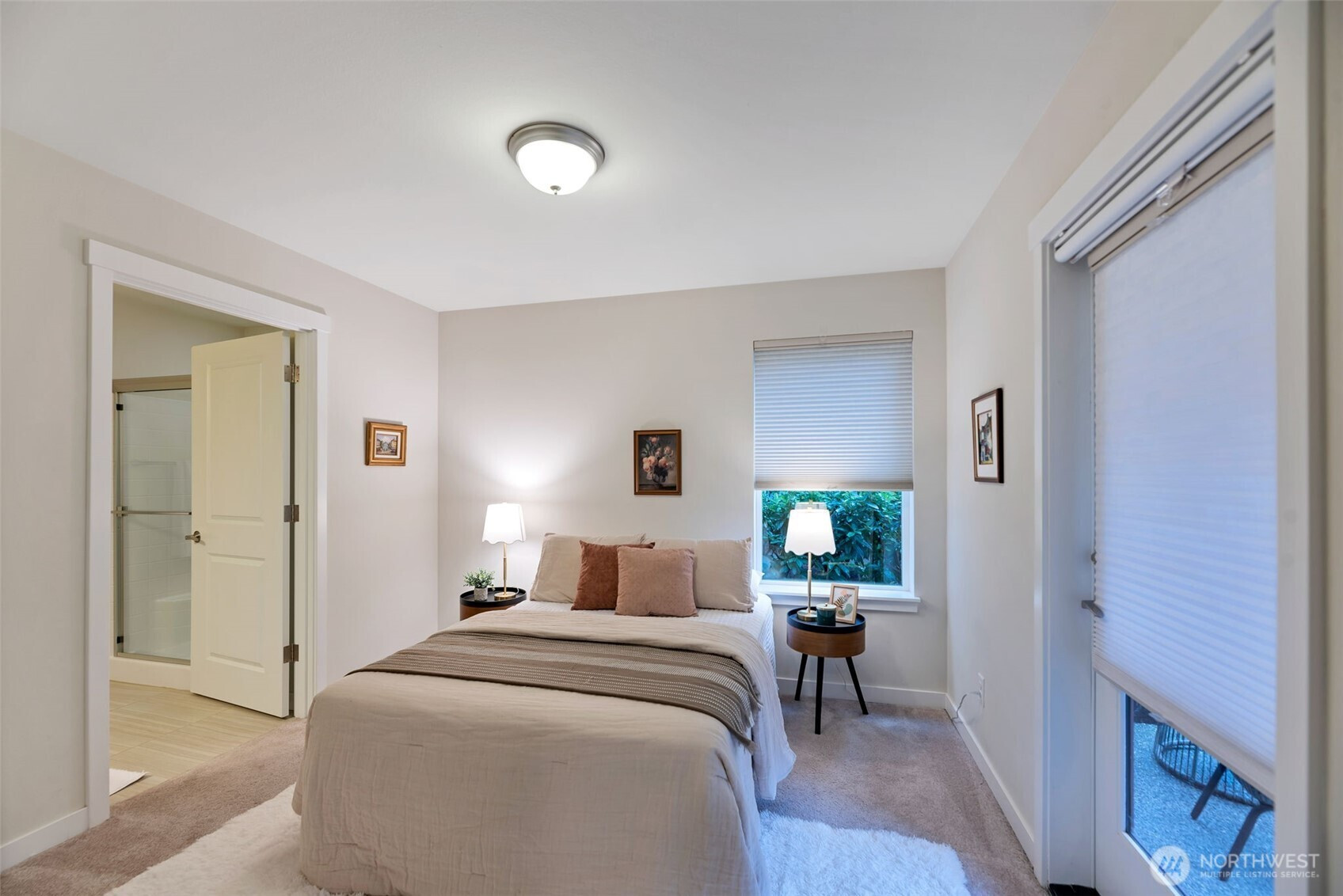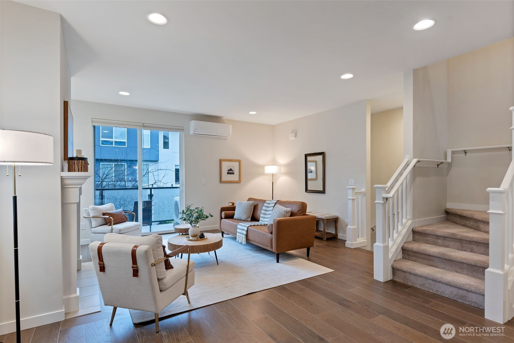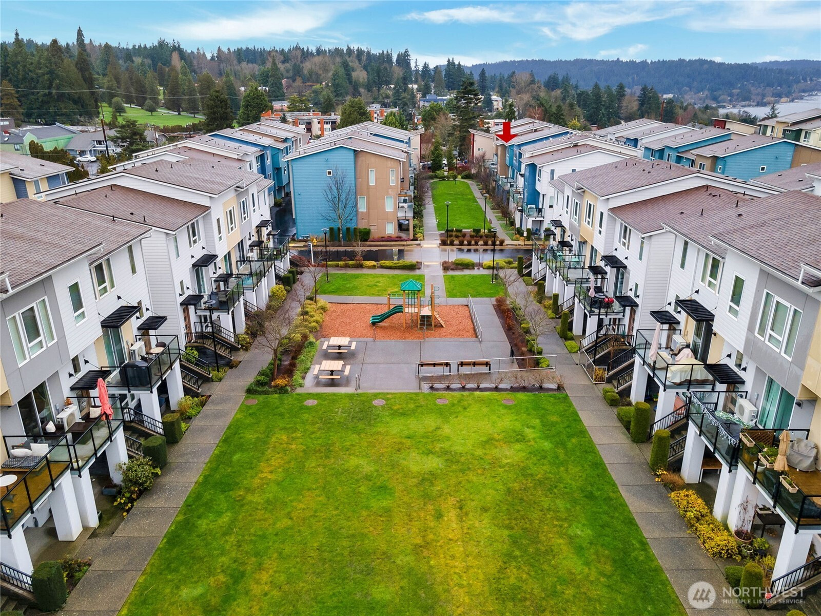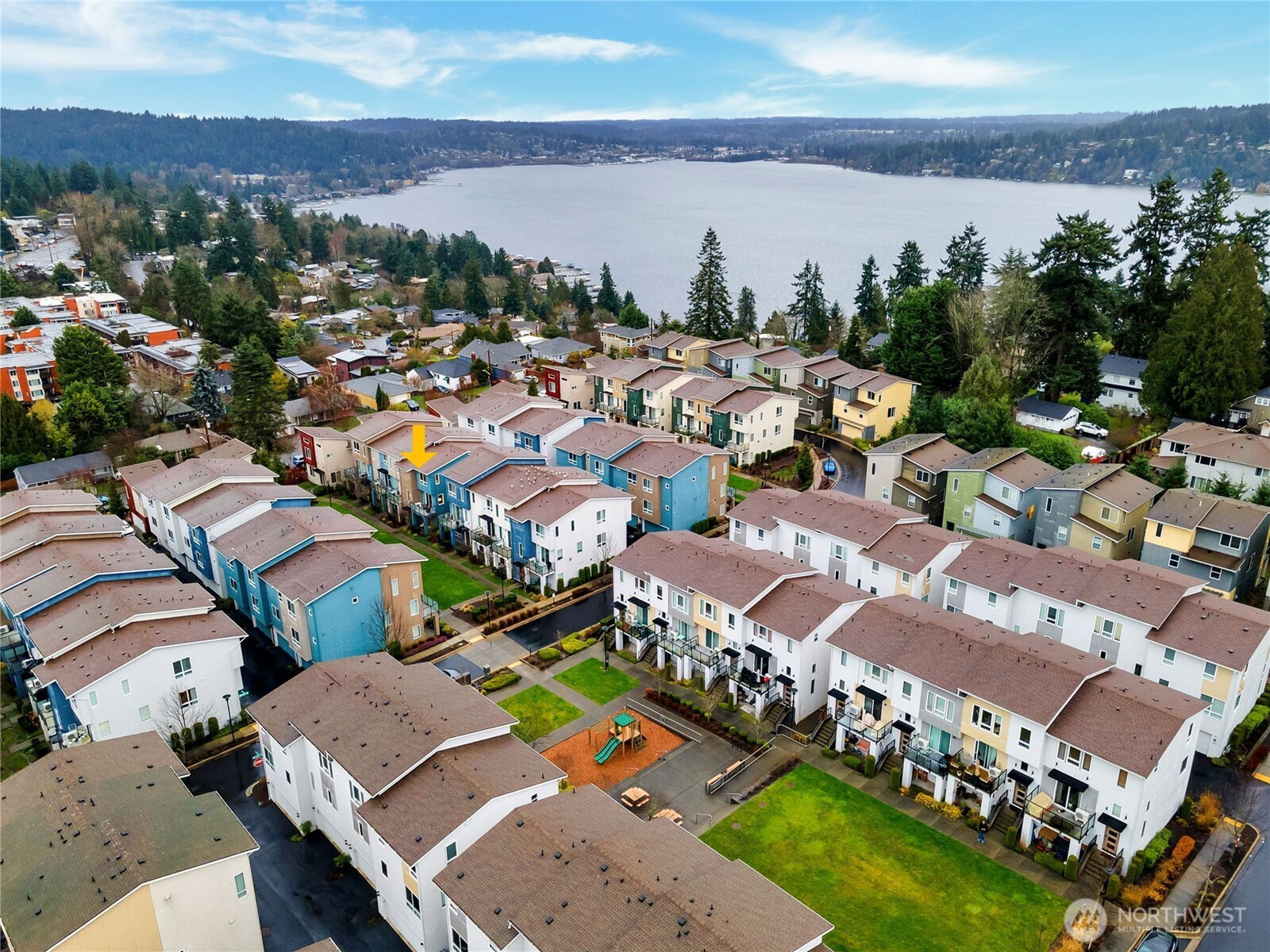 (650)533-3259The largest floorplan among townhomes in the sought-after 12 Degrees North community, this corner unit is filled with natural light with 9-ft ceilings and oversized windows. Main level offers a 2-car garage, a laundry room w/ full-size W/D, and a private ensuite bedroom with patio—ideal for guests, in-laws, or a home office. Second level features a spacious living area with balcony, a chic kitchen with gas range and under-cabinet pull-out drawers, split mini AC, a cozy gas fireplace, and a half bath. Top floor includes a generous primary suite with a walk-in closet, plus two additional bedrooms and a full bath. Enjoy community bike racks, a playground, walking paths, and easy access to transit, shopping, dining, Burke-Gilman Trail, and I-5.