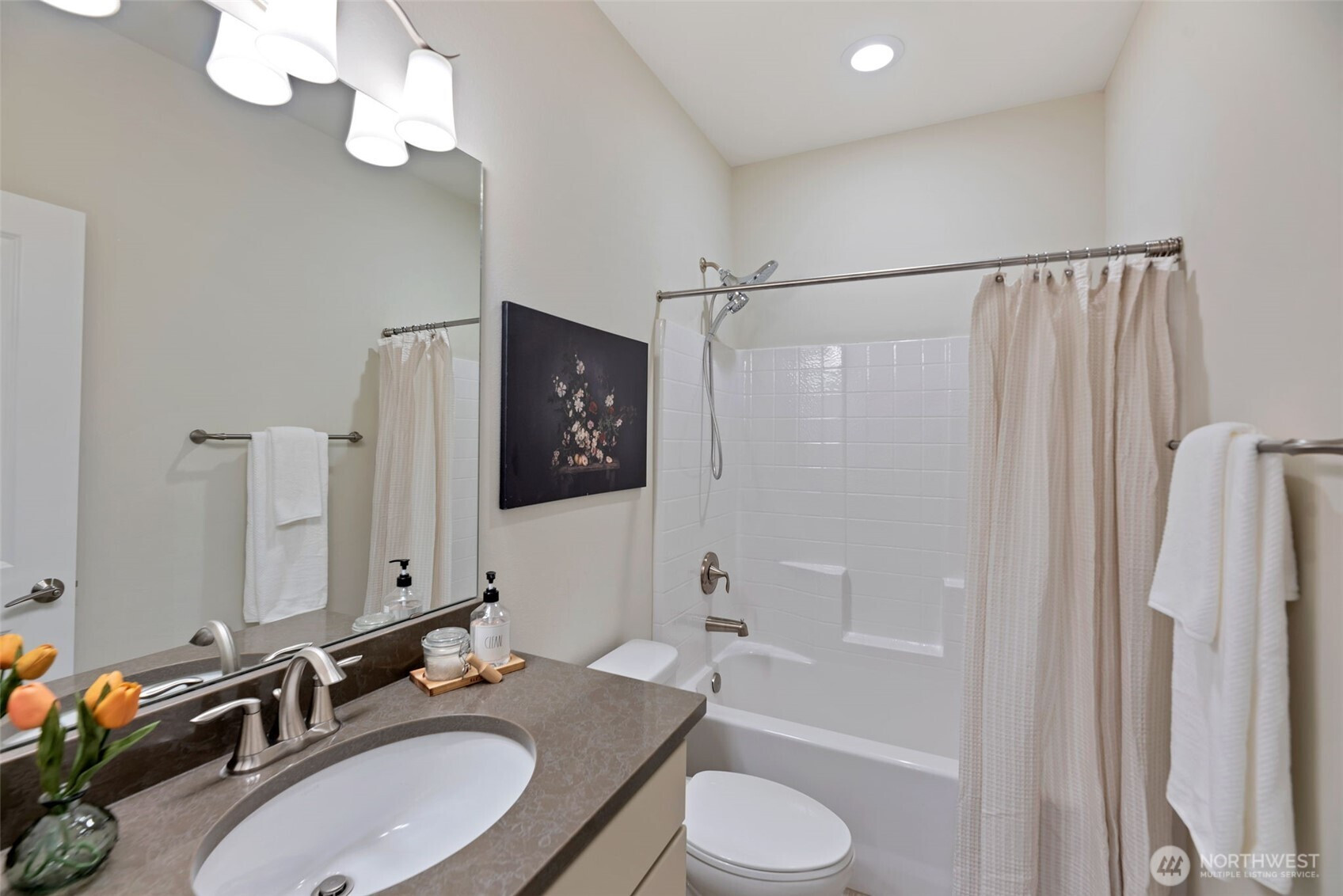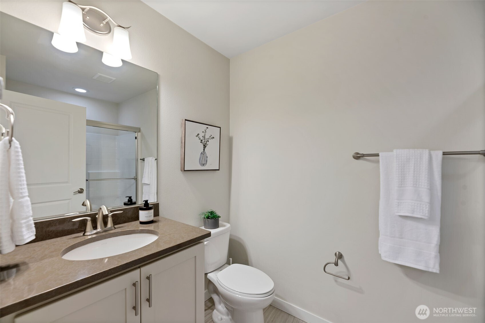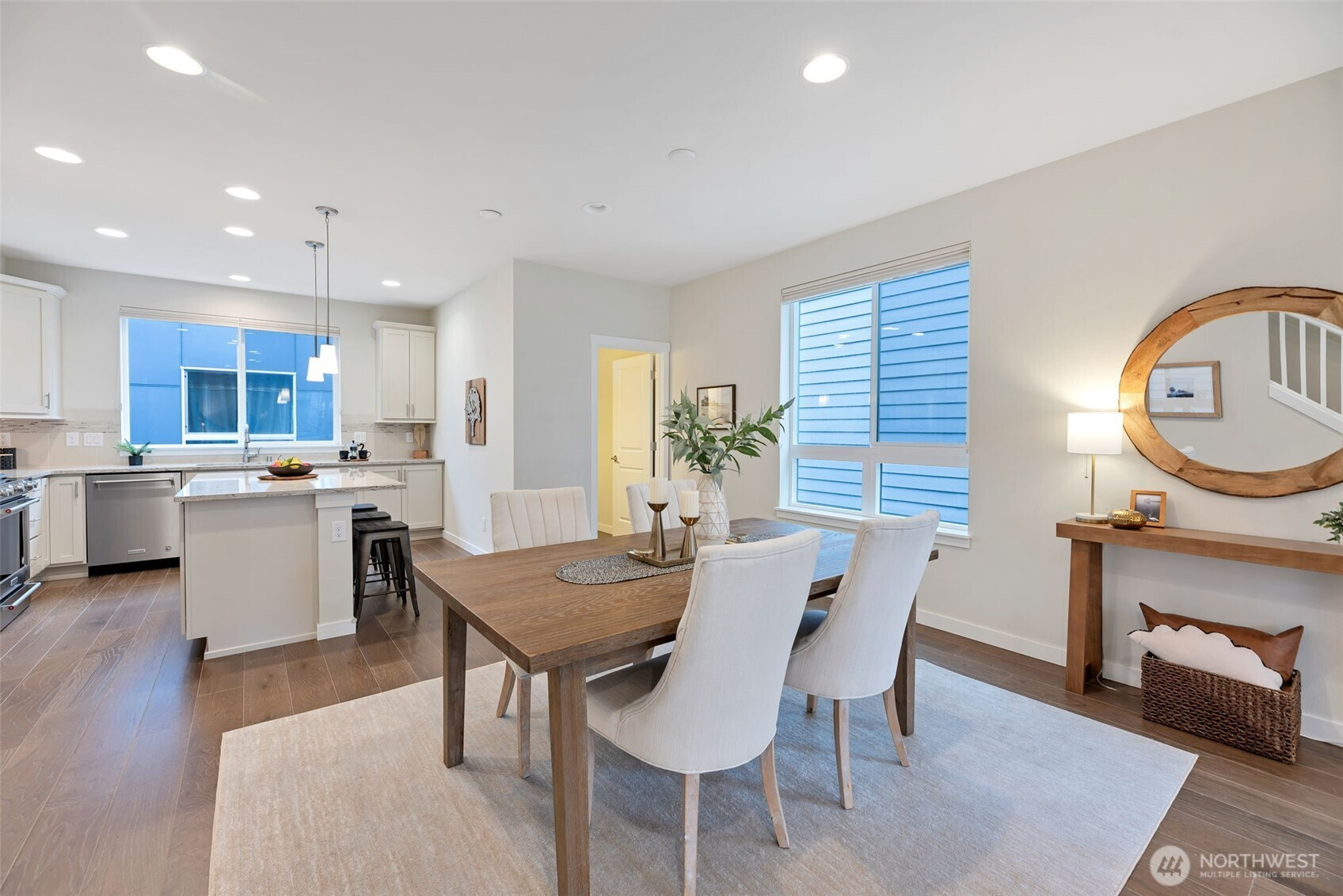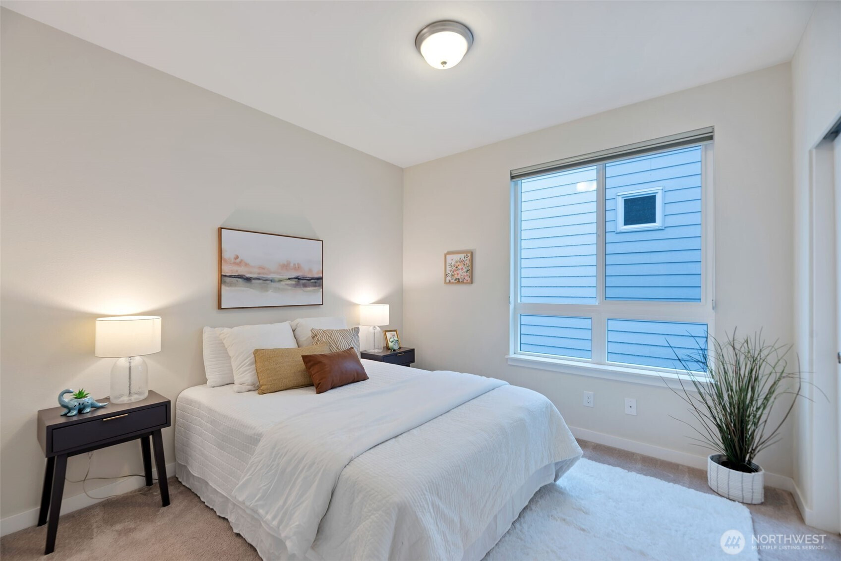 (650)533-3259The largest floorplan among townhomes in the sought-after 12 Degrees North community, this corner unit is filled with natural light with 9-ft ceilings and oversized windows. Main level offers a 2-car garage, a laundry room w/ full-size W/D, and a private ensuite bedroom with patio—ideal for guests, in-laws, or a home office. Second level features a spacious living area with balcony, a chic kitchen with gas range and under-cabinet pull-out drawers, split mini AC, a cozy gas fireplace, and a half bath. Top floor includes a generous primary suite with a walk-in closet, plus two additional bedrooms and a full bath. Enjoy community bike racks, a playground, walking paths, and easy access to transit, shopping, dining, Burke-Gilman Trail, and I-5.