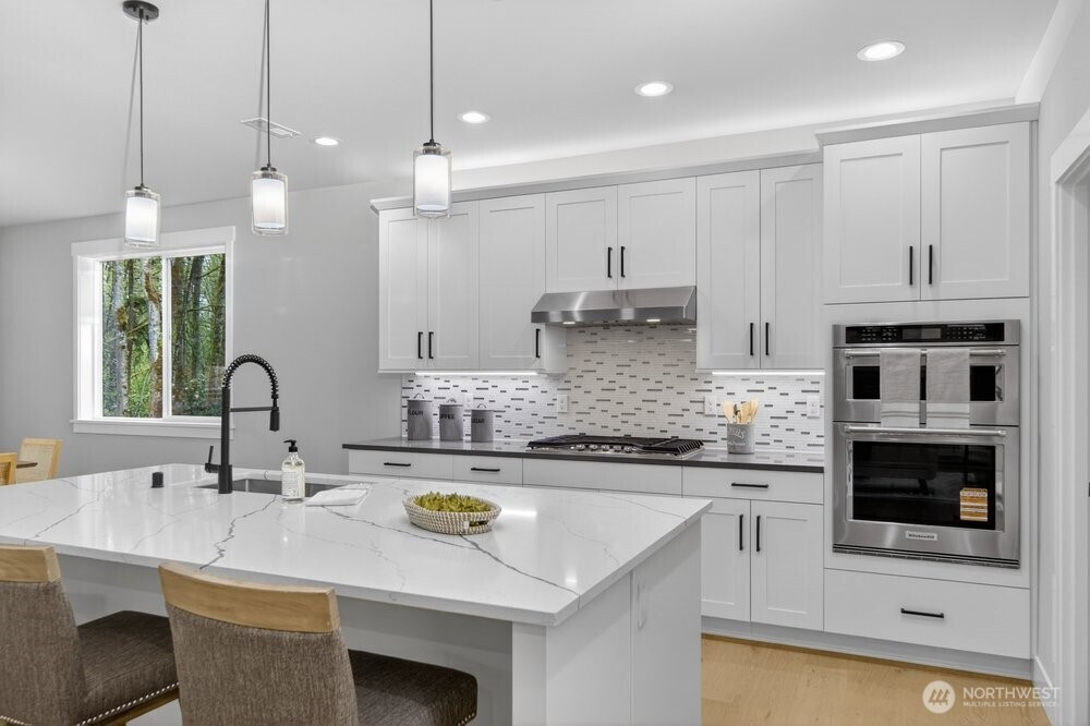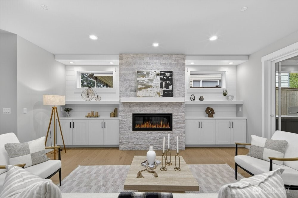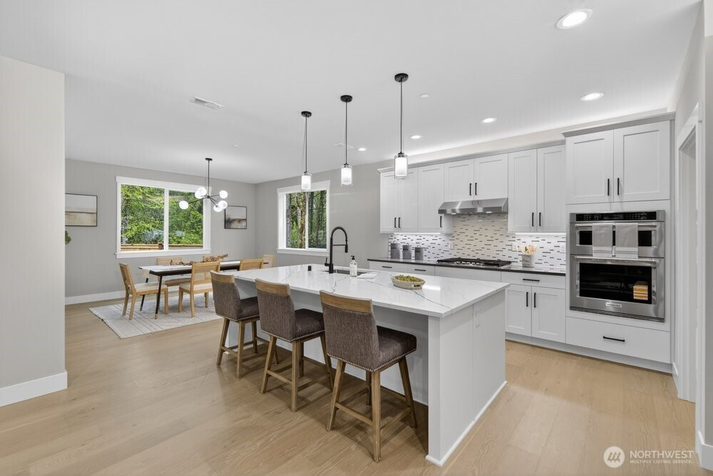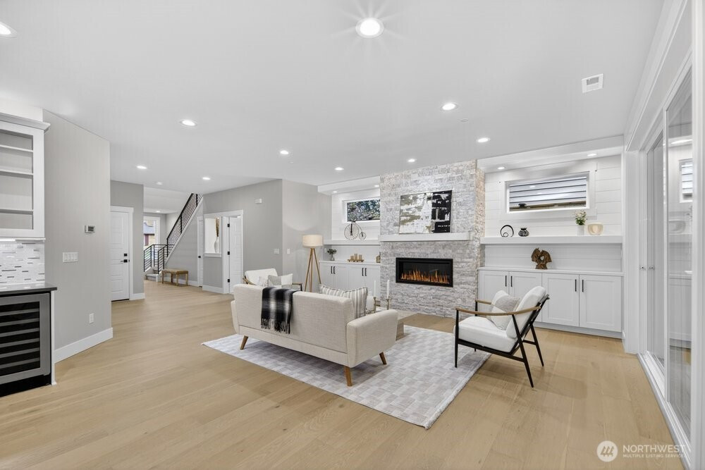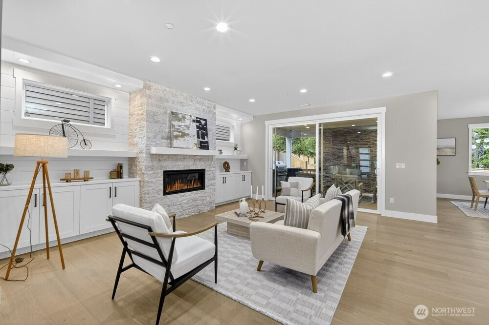 (650)533-3259Tucked in the Kenmore this 5-bed new construction home by Arcadia Homes features soaring 9-foot ceilings and dramatic floor-to-ceiling windows that flood the home with natural light & enhance the expansive open-concept layout and wide-plank hardwood flooring. The entertainer’s kitchen is appointed with chef-grade stainless steel appliances, wine cooler, oversized island with seating, and spacious walk-in pantry. Custom built-ins throughout. 1-bed on main & 4-up, including a generous primary suite complete with a spa-inspired 5-piece bath and custom walk-in closet. Designed for seamless indoor-outdoor living, the covered outdoor space is ideal for year-round entertaining, featuring an outdoor gas fireplace and built-in gas BBQ. Oversized 2-car garage. Located within the coveted Northshore School District. Enjoy a quiet, tucked-away setting with close proximity to Saint Edwards State Park, transit, and major commuter routes.