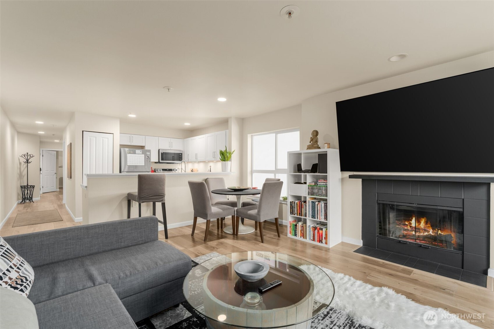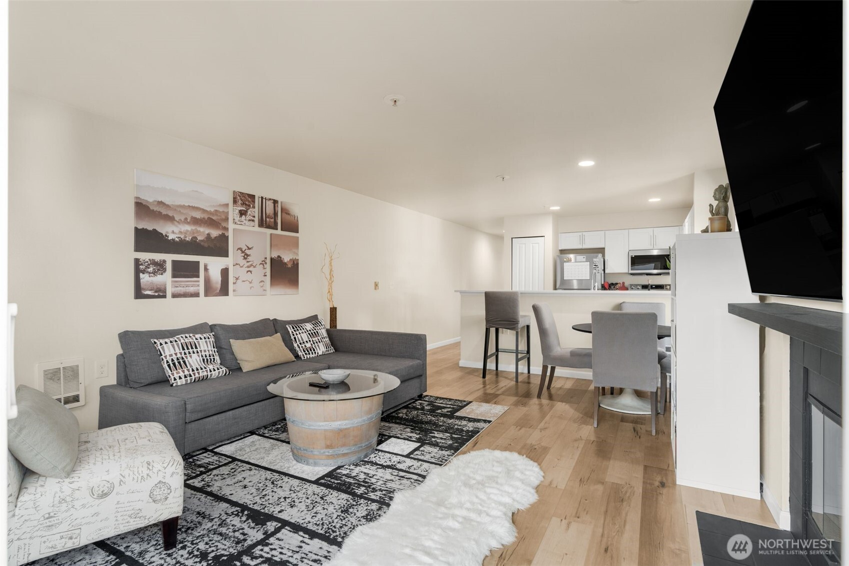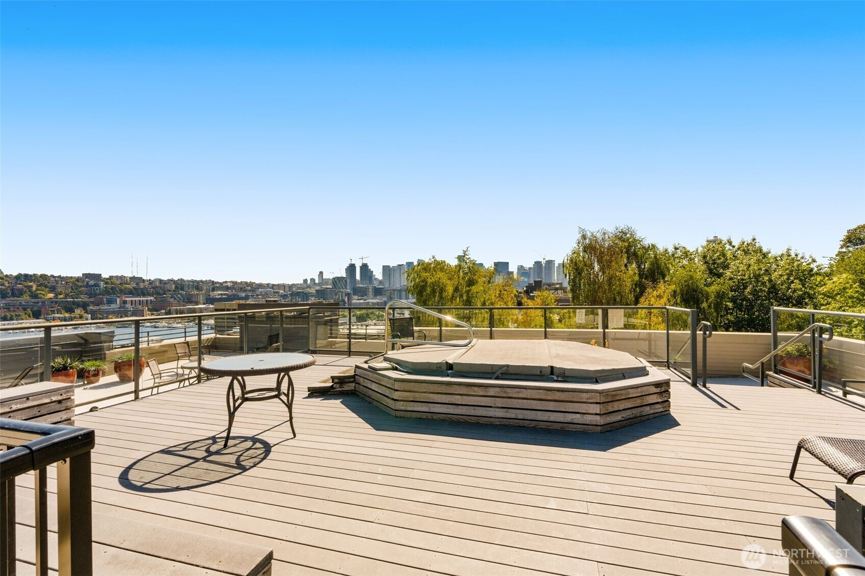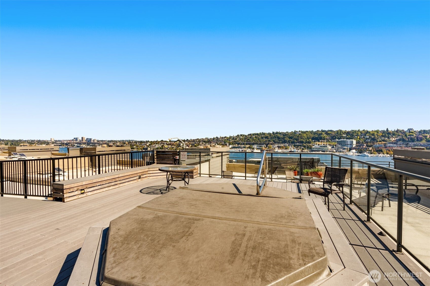(650)533-3259Welcome home to this beautifully updated 2-bd/1-ba corner unit condo in the heart of Westlake. Step inside to find an open-concept living space with peekaboo views of Lake Union, a cozy wood-burning fireplace, and an elegant kitchen with sleek countertops, modern cabinetry, and SS appliances — perfect for daily living and hosting. Enjoy stunning views of Lake Union & downtown Seattle on the expansive rooftop deck — complete with a hot tub and lounge areas, ideal for entertaining and 4th of July fireworks. Secure bldg w/ elevator, garage w/ assigned parking. Strong HOA, no rental cap. Moments from downtown and Lake Union. Walk to top employers and local hotspots — getting around by foot, bike, or transit is a breeze. Urban living its best!