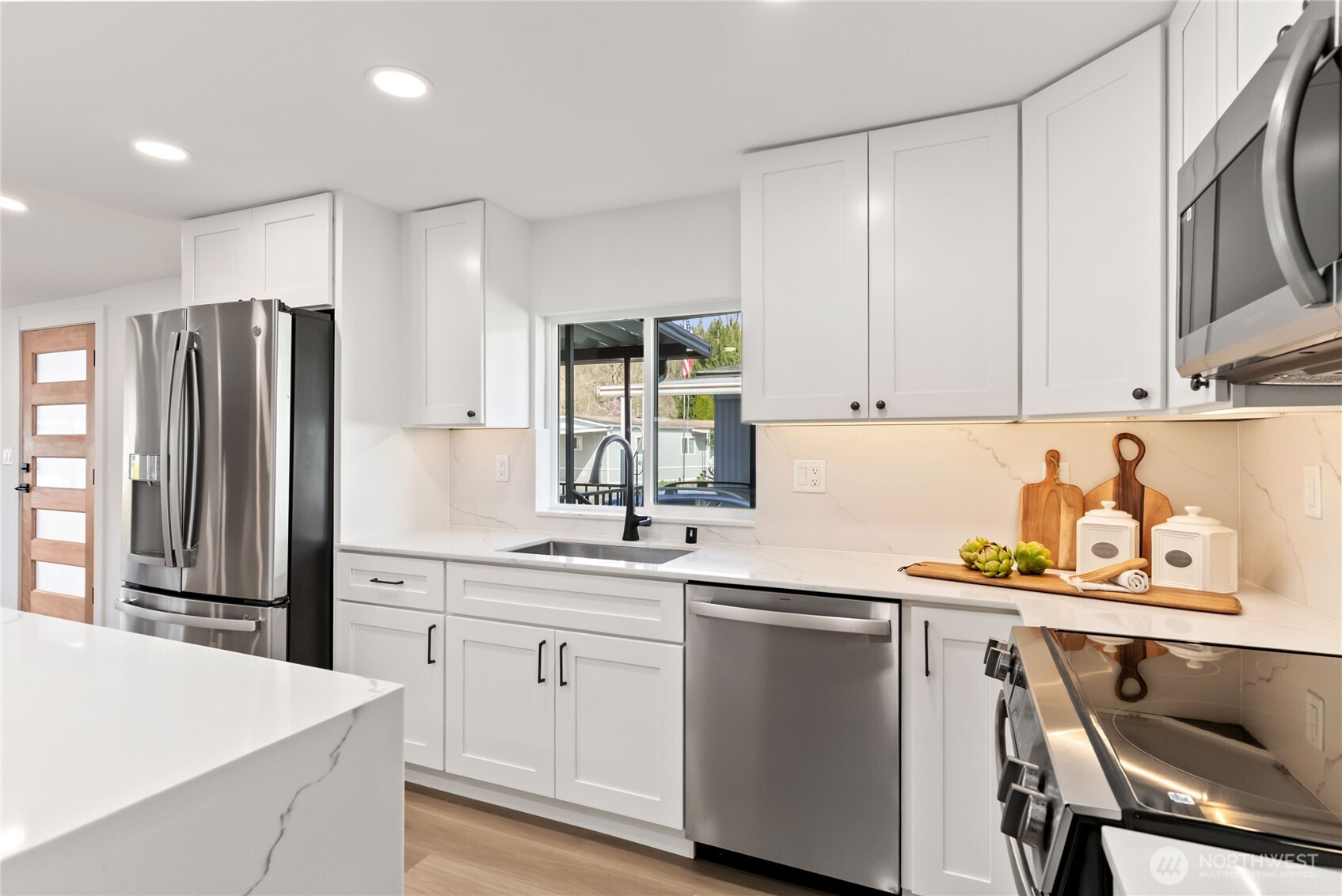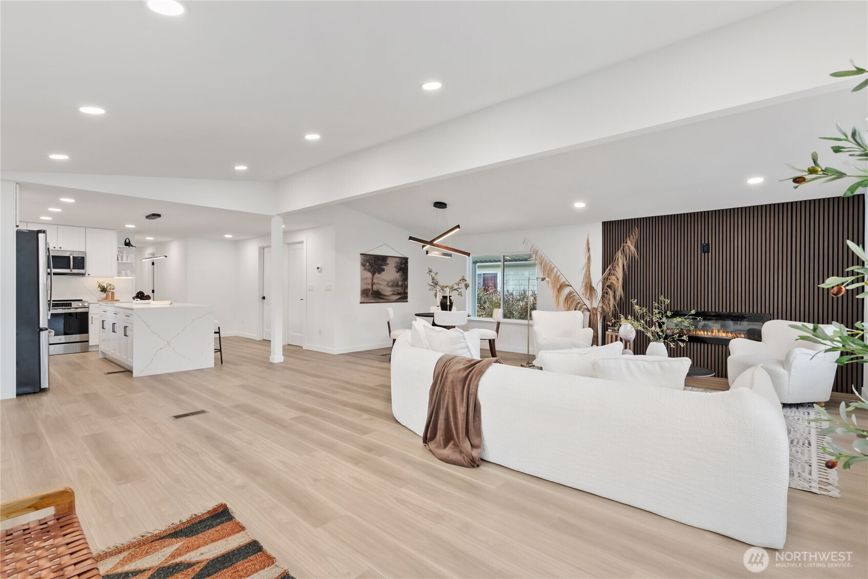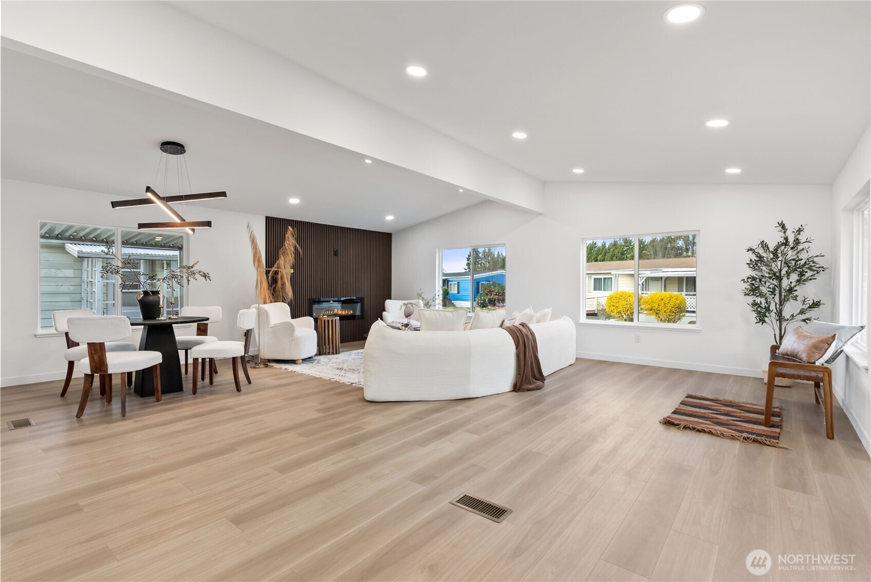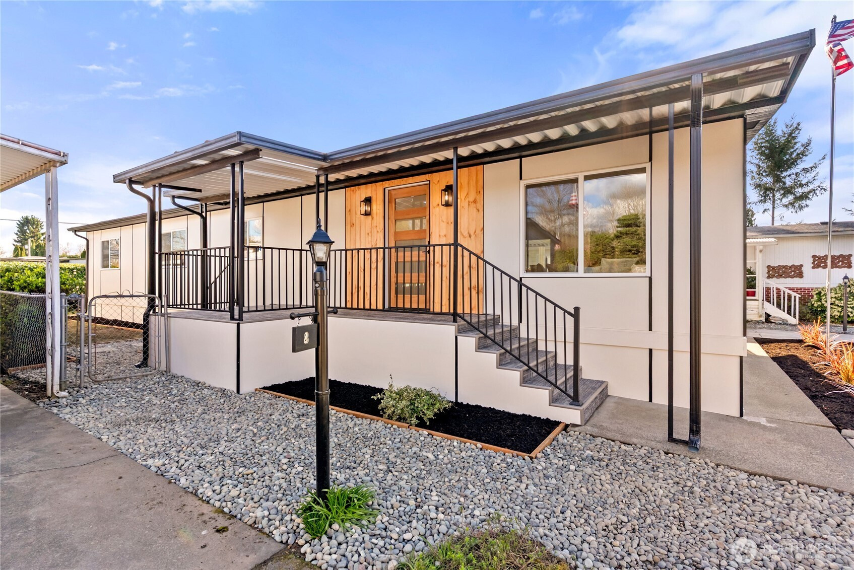 (650)533-3259One of the finest homes in the sought-after 55+ Walnut Grove community, this fully remodeled 3-bedroom, 2-bath residence offers exceptional style and comfort throughout. Thoughtfully updated inside and out, featuring a new roof, new windows, new furnace with heat pump, and beautiful LVP flooring. The stunning chef’s kitchen showcases new custom cabinetry, waterfall quartz countertops, full-height quartz backsplash, under-cabinet and island lighting, stainless steel appliances, and a sleek slide-in range. Vaulted ceilings elevate the expansive living room, anchored by a striking electric fireplace and seamless flow into the dining area—perfect for entertaining. Enjoy year-round relaxation on the covered front porch with a warm wood accent entry, surrounded by mature landscaping. The spacious layout includes a generous laundry room with direct access to a 3-car carport and a large storage shed. Retreat to the luxurious primary suite featuring a second electric fireplace, oversized walk-in closet, double vanity with motion-sensor lighting, and a spa-inspired jetted tub with customizable lighting. A versatile second suite with its own bath offers ideal flexibility for guests or shared living. Ideally located near scenic trails, the Green River, shopping, dining, and transit including Kent Station. This is refined, turnkey living at its best—truly a must-see.