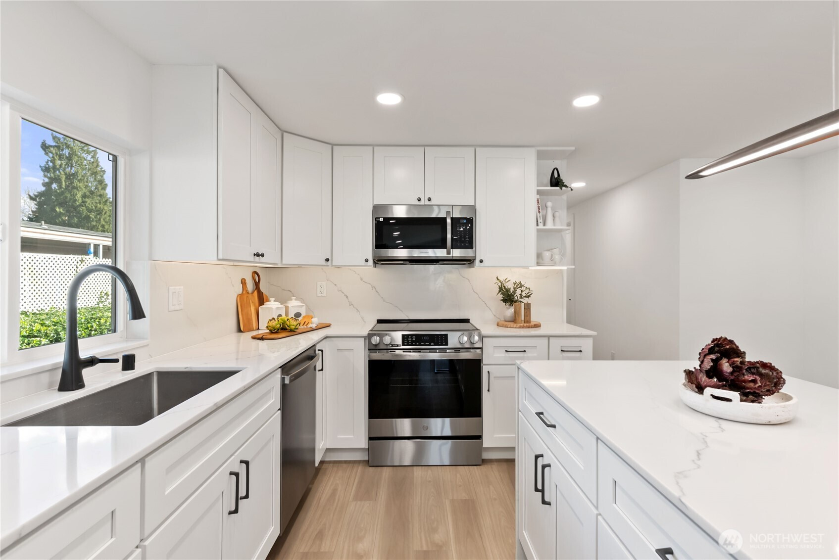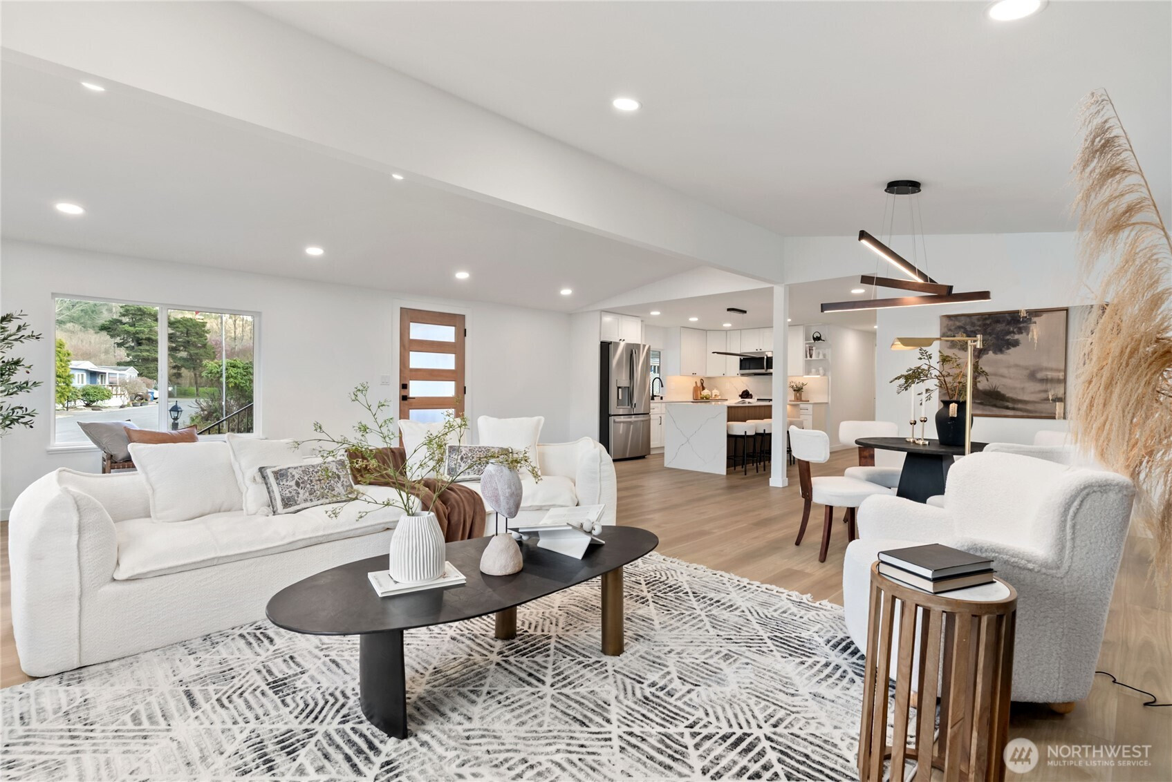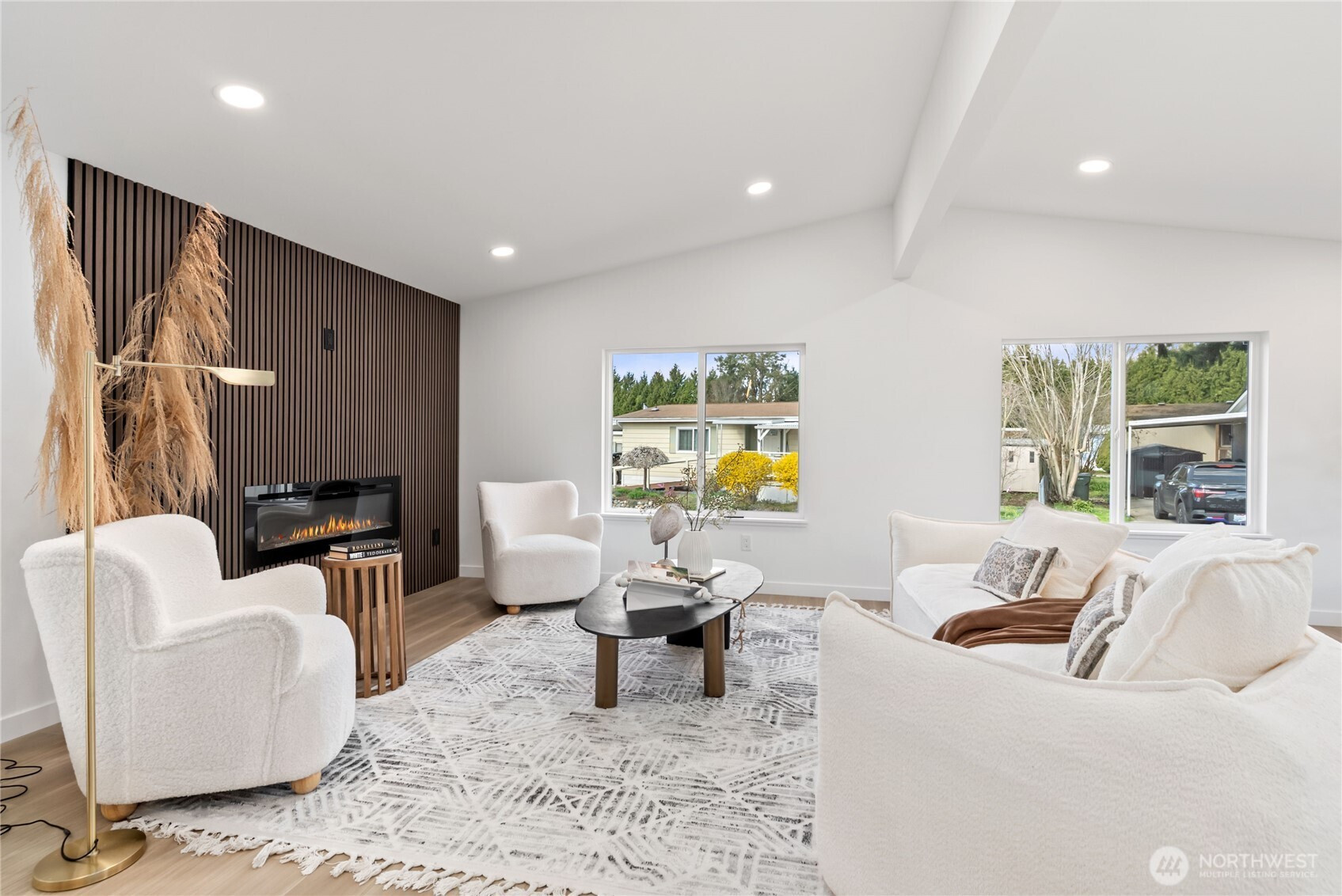 (650)533-3259One of the finest homes in the sought-after 55+ Walnut Grove community, this fully remodeled 3-bedroom, 2-bath residence offers exceptional style and comfort throughout. Thoughtfully updated inside and out, featuring a new roof, new windows, new furnace with heat pump, and beautiful LVP flooring. The stunning chef’s kitchen showcases new custom cabinetry, waterfall quartz countertops, full-height quartz backsplash, under-cabinet and island lighting, stainless steel appliances, and a sleek slide-in range. Vaulted ceilings elevate the expansive living room, anchored by a striking electric fireplace and seamless flow into the dining area—perfect for entertaining. Enjoy year-round relaxation on the covered front porch with a warm wood accent entry, surrounded by mature landscaping. The spacious layout includes a generous laundry room with direct access to a 3-car carport and a large storage shed. Retreat to the luxurious primary suite featuring a second electric fireplace, oversized walk-in closet, double vanity with motion-sensor lighting, and a spa-inspired jetted tub with customizable lighting. A versatile second suite with its own bath offers ideal flexibility for guests or shared living. Ideally located near scenic trails, the Green River, shopping, dining, and transit including Kent Station. This is refined, turnkey living at its best—truly a must-see.