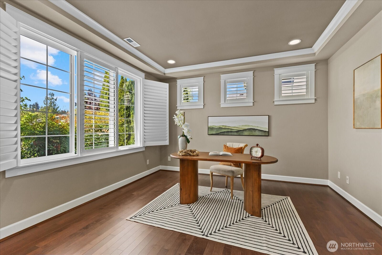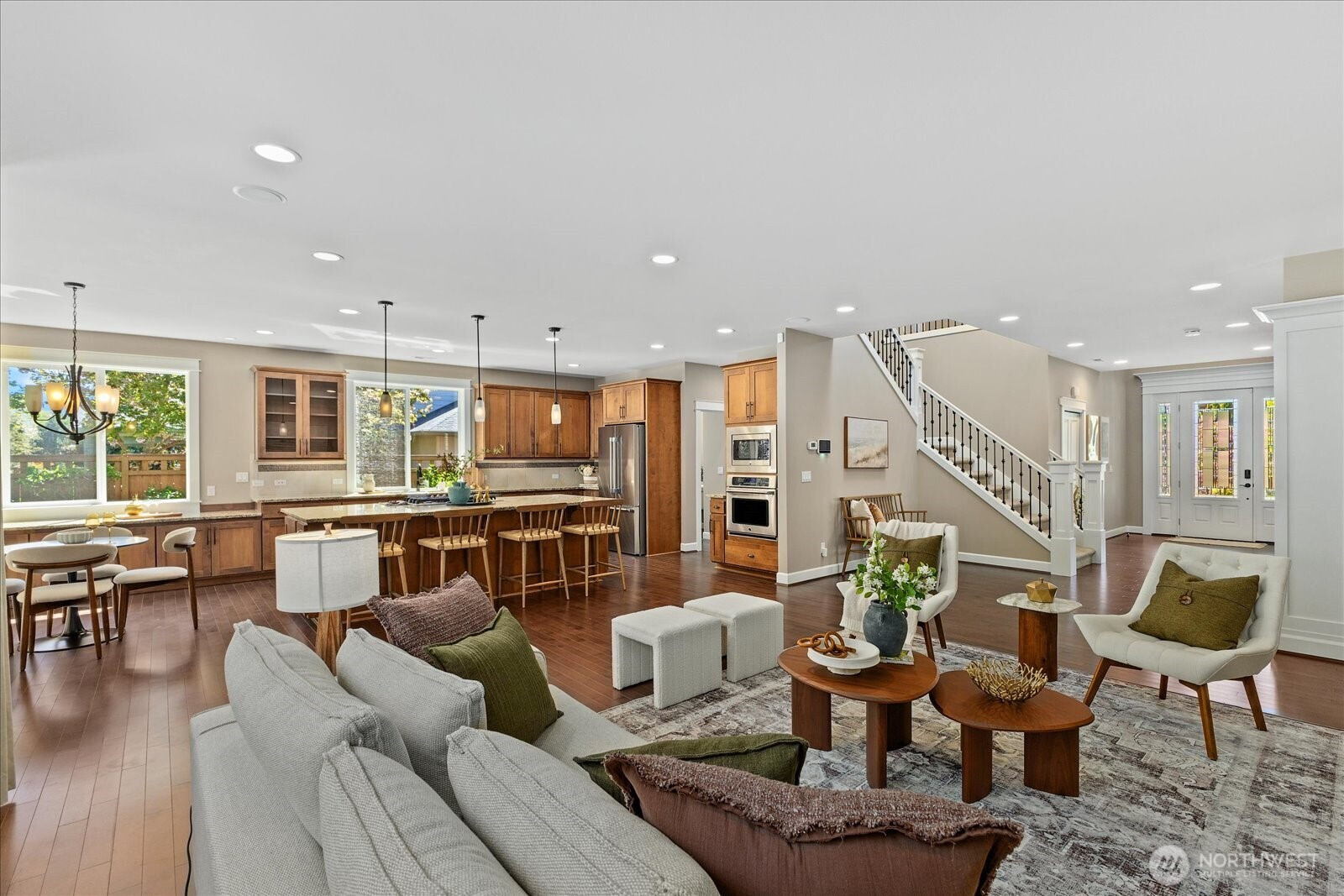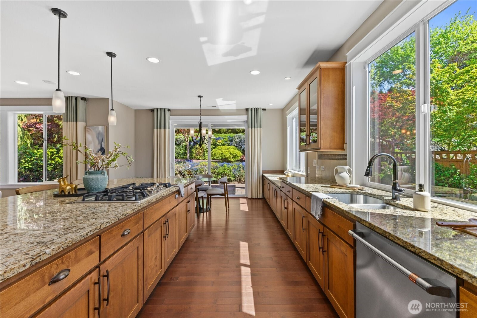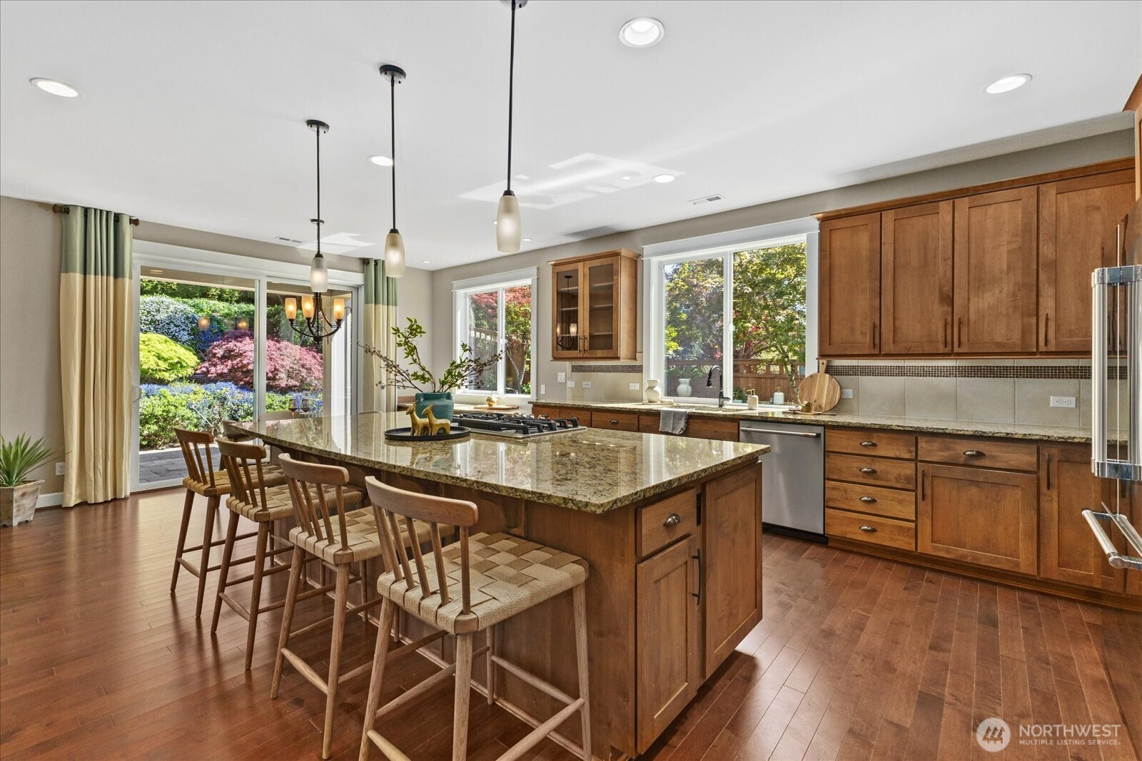 (650)533-3259A rare offering in the coveted Caulfield community, this beautifully appointed 4-bedroom, 3.5-bath Craftsman blends timeless design with modern comfort in the award-winning Northshore School District. Bathed in natural light, the thoughtfully designed two-story layout offers a collection of refined living spaces, seamless flow, and effortless livability. At the heart of the home, an open-concept kitchen connects to a covered outdoor living area—perfectly suited for year-round entertaining—surrounded by lush, mature landscaping featuring hydrangeas, lilacs, cherry blossoms, Japanese maples, and dogwoods. A private putting green adds a distinctive touch of leisure and luxury. The serene primary suite serves as a true retreat, complete with a custom-designed closet and spa-inspired bath. Additional enhancements include custom garage cabinetry, a tailored pantry, new dishwasher, air conditioning, and abundant storage throughout. Perfectly positioned near Saint Edward State Park and The Village at Totem Lake, with easy access to I-405, this location offers a rare balance of privacy and connection. An idyllic floor plan, a sought-after community, and exceptional outdoor living—this is Northwest living at its finest.