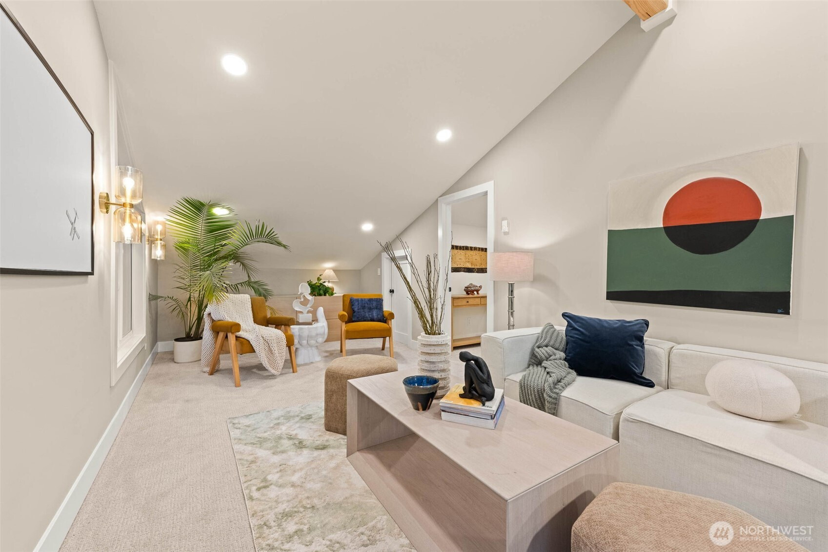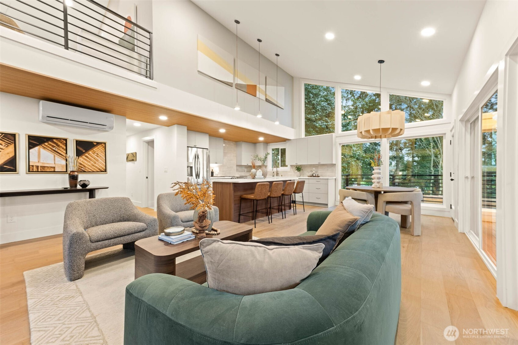 (650)533-3259A rare gem exuding effortless style and grace. Perched above with captivating lake views, this home commands attention from the moment you arrive. Soaring vaulted ceilings and walls of windows frame the stunning Northwest surroundings, while the wood-accented ceiling adds warmth and texture to the sleek, brand-new kitchen anchored by an oversized island—perfectly designed for gathering and entertaining. The adjoining living and dining spaces flow seamlessly to the wraparound deck, making al fresco dining a natural extension of everyday living. Follow the freshly landscaped, softly lit path to a level, serene backyard that feels straight from a storybook. On the main level, two bedrooms are paired with an organic modern full bath featuring a floating double vanity, modern tile, and elevated fixtures. Floating stairs create a dramatic architectural moment, leading to a stunning bonus space that overlooks the main living area with glimpses of the lake. The primary suite is a true retreat tucked away with treehouse-inspired charm, complete with a walk-through closet with built-ins and a spa-like ¾ bath adorned in warm, refined finishes and thoughtful details. Fully reimagined with a highly functional layout and all new systems—including electrical, plumbing, windows, and more—this home delivers both beauty and peace of mind. Ideally located on a quiet street in an established neighborhood near top-rated schools, parks, Lake Washington, dining, and easy commuter routes.