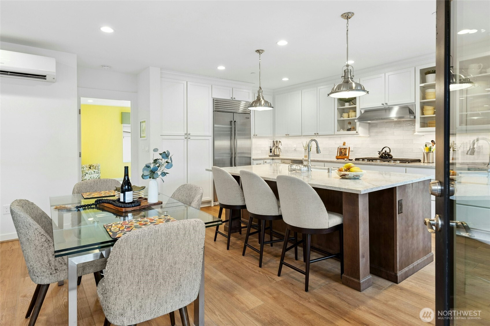 (650)533-3259Refined modern luxury meets exceptional privacy in this stunning top-floor residence at The Lofts at 15th. Quietly positioned in the back of the community, this better-than-new single-level home offers rare convenience with elevator access directly from the private attached two-car garage with EV charger to the residence. This tech-forward home features an oversized primary suite, plus two additional bedrooms connected by a Jack-and-Jill bath and an elegant powder room. Over $160K in thoughtfully curated upgrades include a built-in Sub-Zero refrigerator, beverage fridge, Hunter Douglas top-down/bottom-up blinds, and Samsung The Frame TV. The chef’s kitchen with expansive island flows seamlessly into a light-filled great room with generous wall space ideal for art. Enjoy a full-width, ultra-private deck just off the kitchen with natural gas stub for BBQ—perfect for entertaining, container gardening, or relaxing outdoors. The community showcases rich materials, contemporary architecture, and striking metal and wood trellis shade structures over the top-floor outdoor living spaces. Built by Toll Brothers in 2022, this boutique luxury community includes just 22 residences. HOA dues include water and sewer. Walkable location with easy access to Bellevue, Redmond, Kirkland, and downtown Seattle.