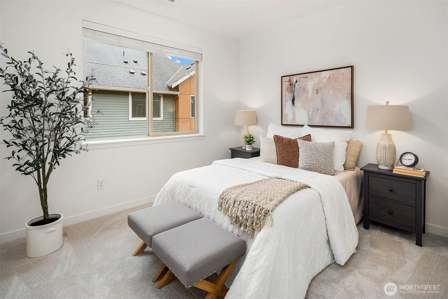 (650)533-3259Generous east and west-facing windows fill this modern home with abundant natural light, while two mini-splits provide year-round comfort. The open-concept living area showcases gorgeous engineered hardwood floors and flows seamlessly from the living room to the kitchen and dining area, extending out to the deck—perfect for entertaining as well as comfortable everyday living. The stylish kitchen features quartz countertops, glass tile backsplash, island with breakfast bar, pendant and under-cabinet lighting, and stainless steel appliances. The primary suite offers a private ¾ bathroom with a dual-sink vanity and a tile shower. A second bedroom with an adjacent full bathroom is just down the hall. Additional highlights include a laundry closet with storage space, courtyard entry with a coat closet and direct access to the tandem 2-car garage, new carpet, and fresh interior paint. Pet-friendly community with no rental cap. Prime location with convenient access to Microsoft's main campus, downtown Bellevue and Redmond, plus abundant nearby amenities including shopping, dining, community parks, Lake Sammamish, and freeway access.
