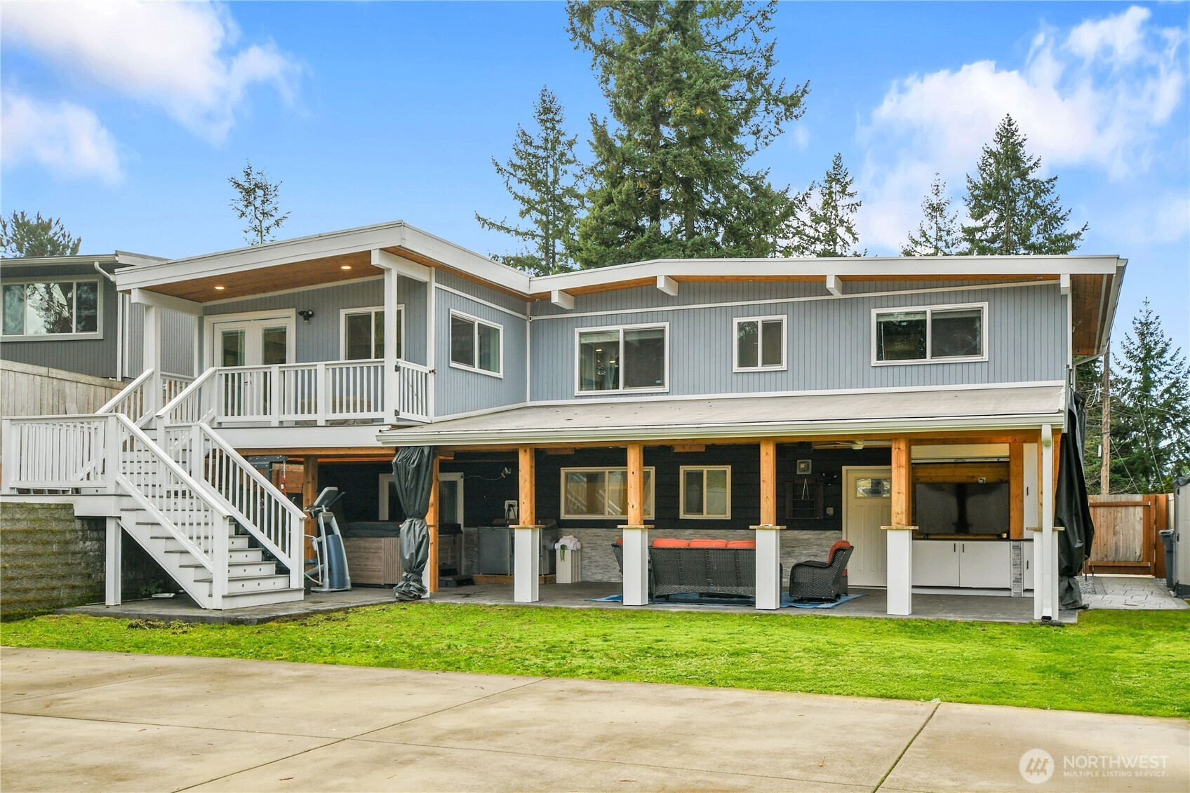 (650)533-3259Exceptional home you have been waiting for now available. Come see this 1 of a kind custom 5beds, 3bath, 2car garage can be easily converted back to original setting! It is move in ready w/upgrades & updating done. Entertain your friends with delights from your specious chef's dream kitchen w/ granite counters, SS appliances and lots of storage space. A newer 97% gas furnace w/central A/C & mini split, newer windows, doors, trim, cabinets, copper plumbing, smart home technology & 2021 PVC insulated roof, sauna, to name just few updates. Enjoy the NW outdoors year-round w/ this amazing heated & covered stamped concrete patio, hot tub & entertainment area in the private fenced backyard. MIL and possible future DADU. This house has it all