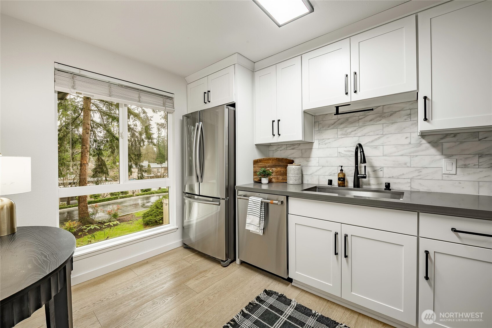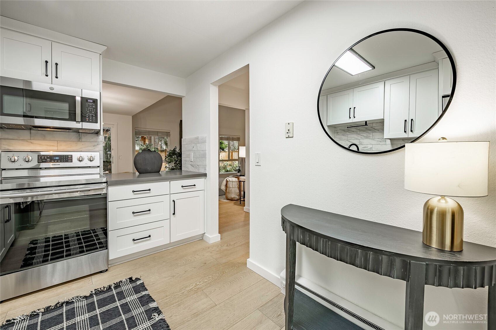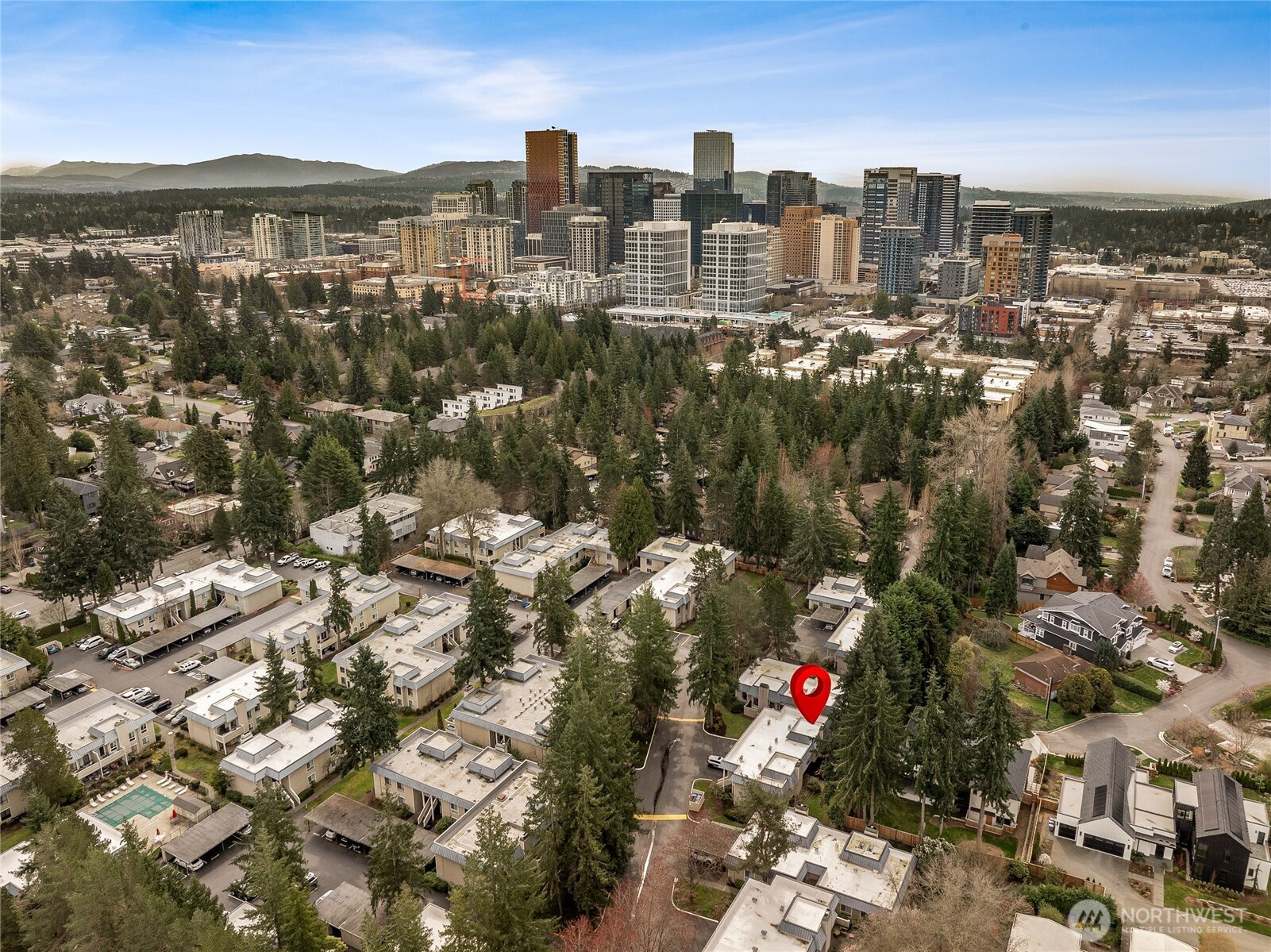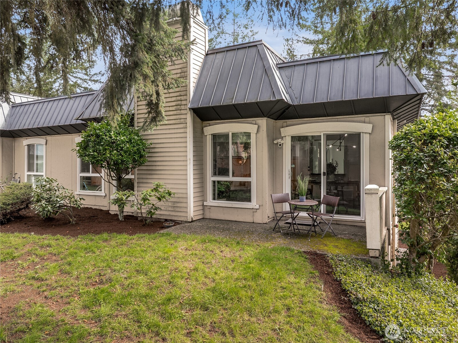 (650)533-3259This rare EAST facing, tastefully remodeled, end-unit townhome delivers the privacy of a single-family home with the ease of low-maintenance living at one of the Eastside's most coveted addresses. Positioned at the end of the row, minimal shared walls, and a sense of space interior units simply can't match. The attached two-car garage + driveway park, and direct interior staircase access is a standout feature - no navigating the outdoors to unload groceries or head out on a rainy morning. Inside, vaulted ceilings & oversized windows frame treetop views & fill the living rm w/ warm natural light all day. The open kitchen features white cabinetry, SS apps, and a layout that flows seamlessly into the dining and living areas - perfect for entertaining or a quiet evening. A glass slider opens to a private patio with a grassy surround and mature trees providing shade & seclusion. The home offers two generous bedrooms and two full bathrooms, a versatile lower-level bonus room that adapts easily to a home office, playroom, or guest suite - adding real flexibility to the floor plan - main floor laundry and approximately 120 SF of storage beaneath the unit round out a home designed for everyday ease. Fresh interior paint, remodeled kitchen, new carpet, & wide plank oak hardwood flooring deliver a move-in ready feel, while newer vinyl windows improve energy efficiency. Community pool, green space, and mins to shops, dining, I-405 & I-90, convenience at its best! Coveted Bellevue SD.