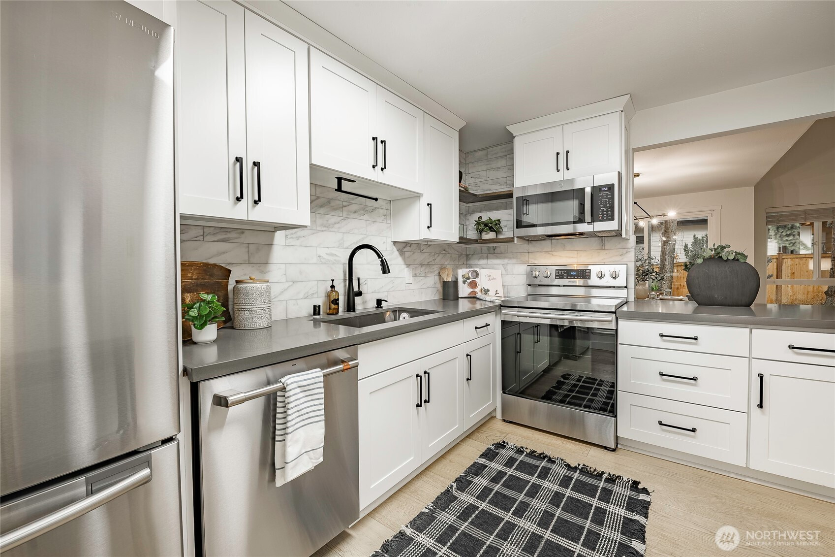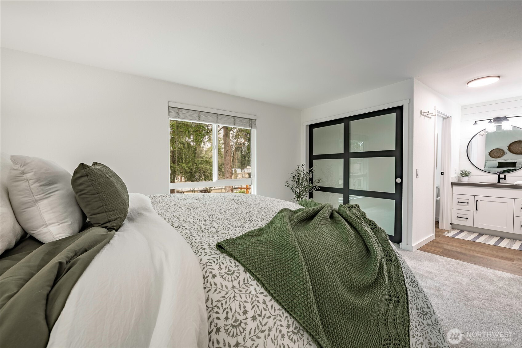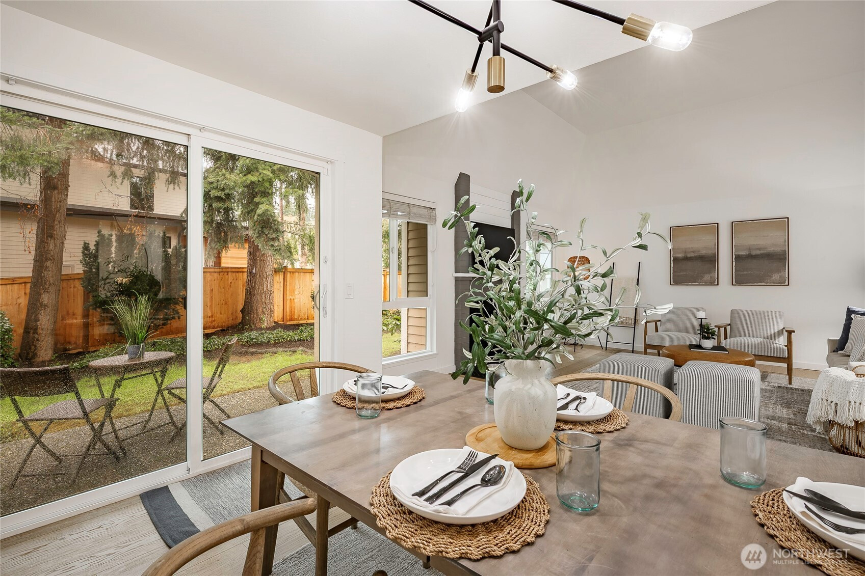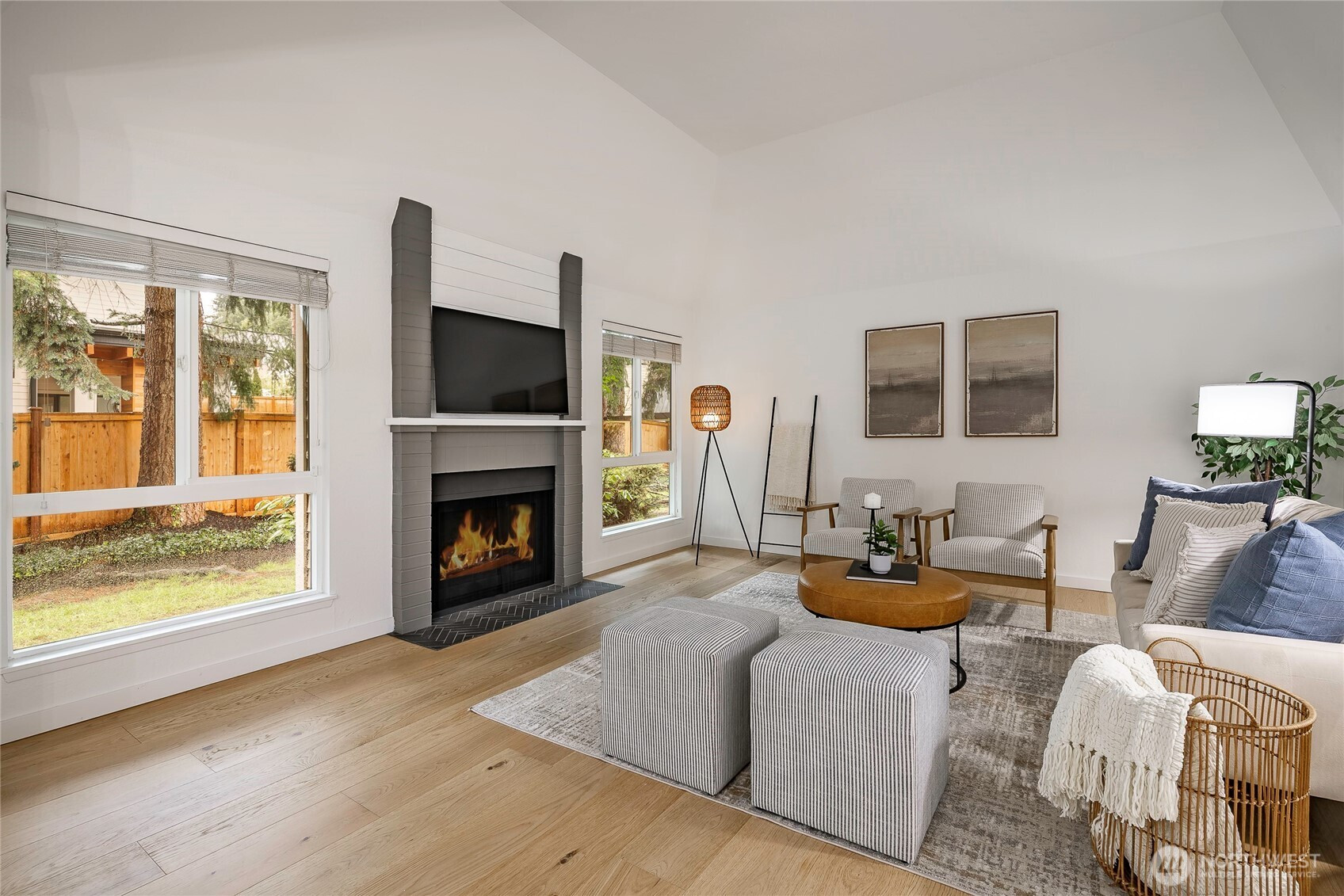 (650)533-3259This rare EAST facing, tastefully remodeled, end-unit townhome delivers the privacy of a single-family home with the ease of low-maintenance living at one of the Eastside's most coveted addresses. Positioned at the end of the row, minimal shared walls, and a sense of space interior units simply can't match. The attached two-car garage + driveway park, and direct interior staircase access is a standout feature - no navigating the outdoors to unload groceries or head out on a rainy morning. Inside, vaulted ceilings & oversized windows frame treetop views & fill the living rm w/ warm natural light all day. The open kitchen features white cabinetry, SS apps, and a layout that flows seamlessly into the dining and living areas - perfect for entertaining or a quiet evening. A glass slider opens to a private patio with a grassy surround and mature trees providing shade & seclusion. The home offers two generous bedrooms and two full bathrooms, a versatile lower-level bonus room that adapts easily to a home office, playroom, or guest suite - adding real flexibility to the floor plan - main floor laundry and approximately 120 SF of storage beaneath the unit round out a home designed for everyday ease. Fresh interior paint, remodeled kitchen, new carpet, & wide plank oak hardwood flooring deliver a move-in ready feel, while newer vinyl windows improve energy efficiency. Community pool, green space, and mins to shops, dining, I-405 & I-90, convenience at its best! Coveted Bellevue SD.