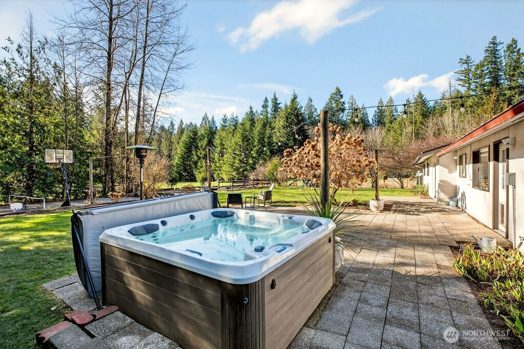 (650)533-3259Welcome home to timeless Northwest charm paired with effortless modern living. This beautifully maintained rambler sits on more than an acre across from the scenic Lake Youngs trail system, offering year-round access to nature while remaining close to everyday conveniences. With four spacious bedrooms, the home provides flexibility for gathering, working remotely, or simply relaxing. The private primary suite offers a peaceful retreat, featuring a beautifully tiled shower and generous closet storage. Designed for connection and entertaining, the remodeled kitchen anchors the home with a stunning 12-foot island, double ovens, and expansive workspace ideal for everyday living or special celebrations. Attic storage adds practical versatility, while thoughtful updates blend comfort with classic character. Step out to a private retreat created for every season. The fenced yard includes a patio and a versatile new sport court — enjoy a full-size pickleball game or a half-court basketball setup complete with an NBA three-point line. Relax under the stars in the hot tub or by the fire pit. Mature, low-maintenance landscaping, raised garden beds, open play areas, offer room for entertaining, recreation, or quiet moments alike. A private well and abundant space provide both independence and opportunity. Whether hosting friends, enjoying time with loved ones, or embracing the tranquility of the outdoors, this inviting property is a place where lasting memories come naturally.