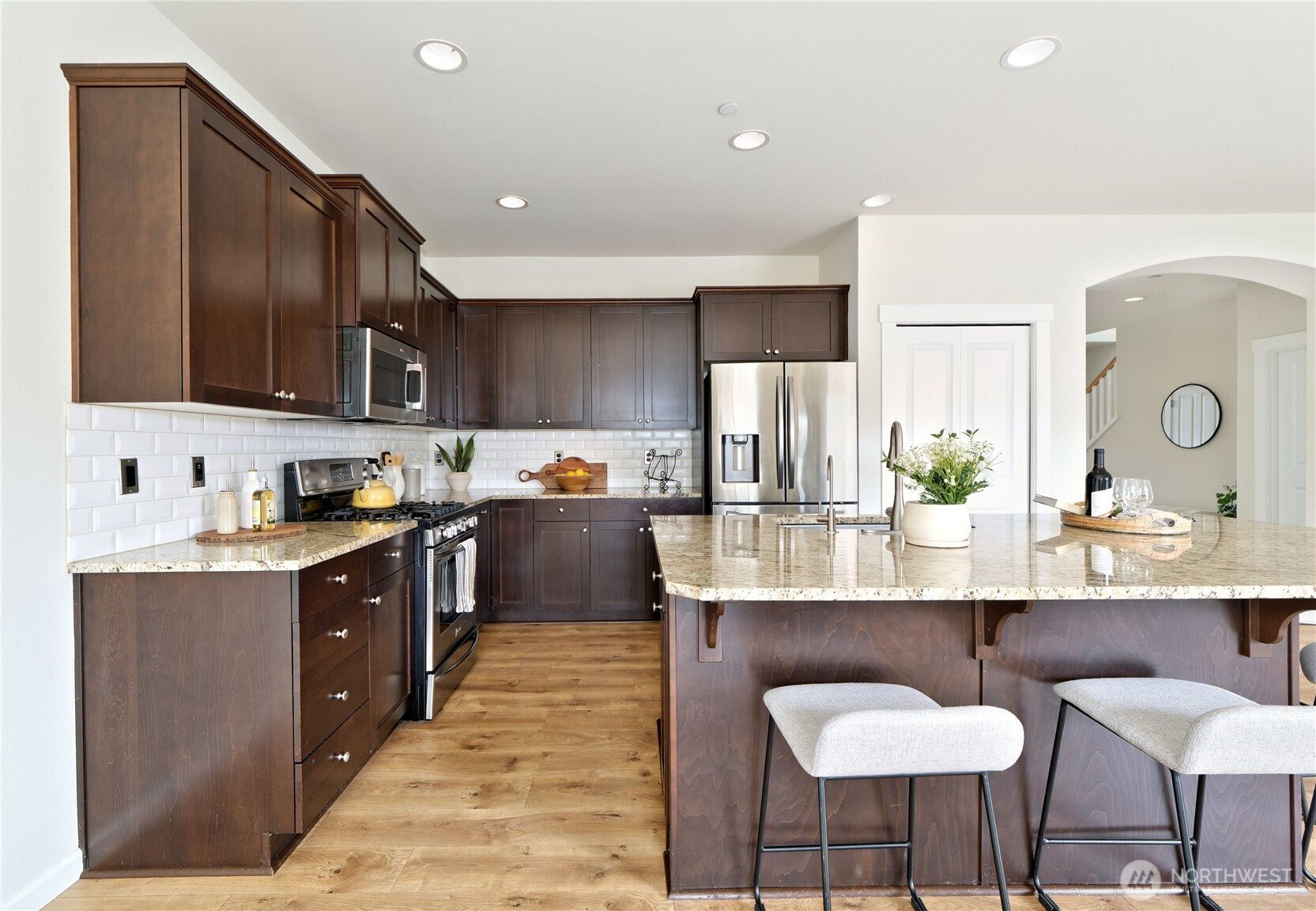 (650)533-3259Welcome to Ridgewood Lane, a beautifully crafted DR Horton home located on a quiet cul-de-sac. This residence is equipped with central air conditioning and a tankless water heater, and features soaring ceilings and large windows that fill the home with natural light, creating a bright and open atmosphere. The main living areas are finished with elegant engineered hardwood floors, adding both warmth and sophistication.At the heart of the home is the spacious kitchen, complete with granite countertops, rich espresso cabinetry, stainless steel appliances, and ample prep space—perfect for everyday living and entertaining. The open layout flows seamlessly into the living area, making it easy to gather and connect. A main-floor bedroom (or den) with an adjacent ¾ bath offers flexibility for guests, a home office, or multi-generational living.Upstairs, the primary suite features a generous walk-in closet and a well-appointed en suite bath. Three additional bedrooms and a versatile bonus room provide endless possibilities for a media room, playroom, or work-from-home space. Ideally located with easy access to major freeways, SeaTac Airport, hospitals, shopping centers, dining, and key business hubs, this home delivers exceptional everyday offering both convenience and a sense of security. This move-in ready home is an outstanding opportunity.