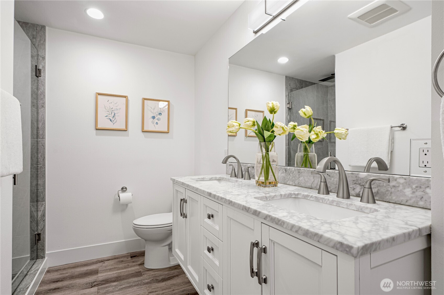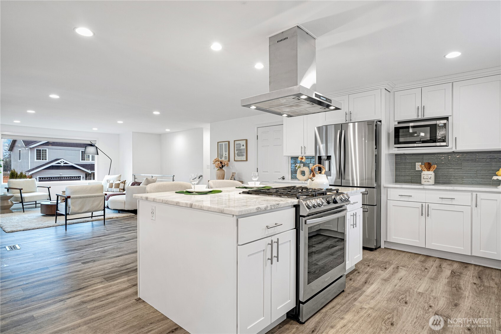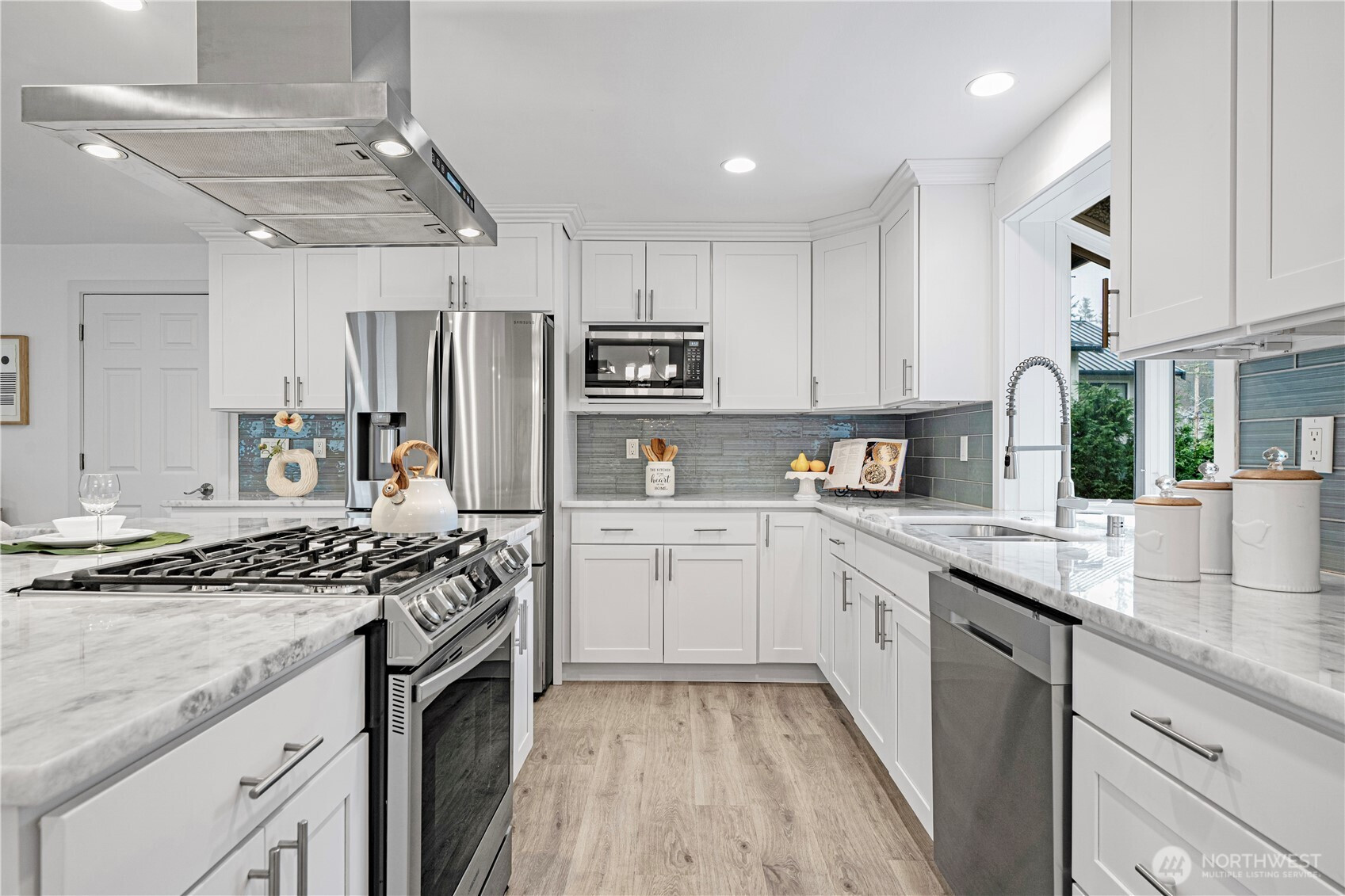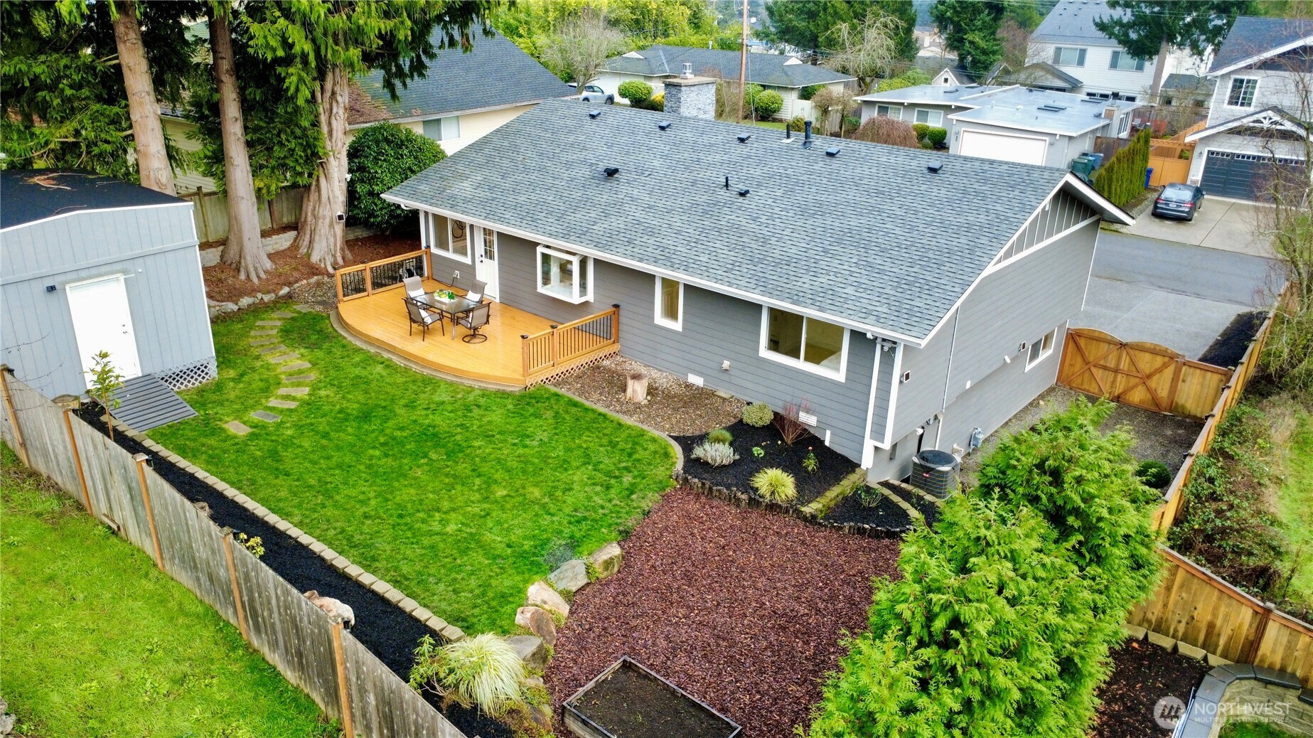 (650)533-3259Welcome to this 2020 stunning remodel 2-story home flooded amid natural light. Chic interior invites you to a sun-drenched living room featuring a floor-to-ceiling stone fp and french doors opening to a large covered cedar deck. Dream white kitchen showcases expansive marble countertops with breakfast bar. Walk-in pantry and spacious dining room add favor to life, completed with access to 2nd deck. Primary suite boasts 5-piece bath & walk-in closet. First floor provides versatility with bedroom, shower, and rec room w/ kitchenette. Desirable layout w/ 3 showers suffice your needs. Perfect for outdoor/indoor entertaining. Fenced yard includes a large shed doubling as a workshop. Great location, close to Microsoft, schools, and Lake Samm.
