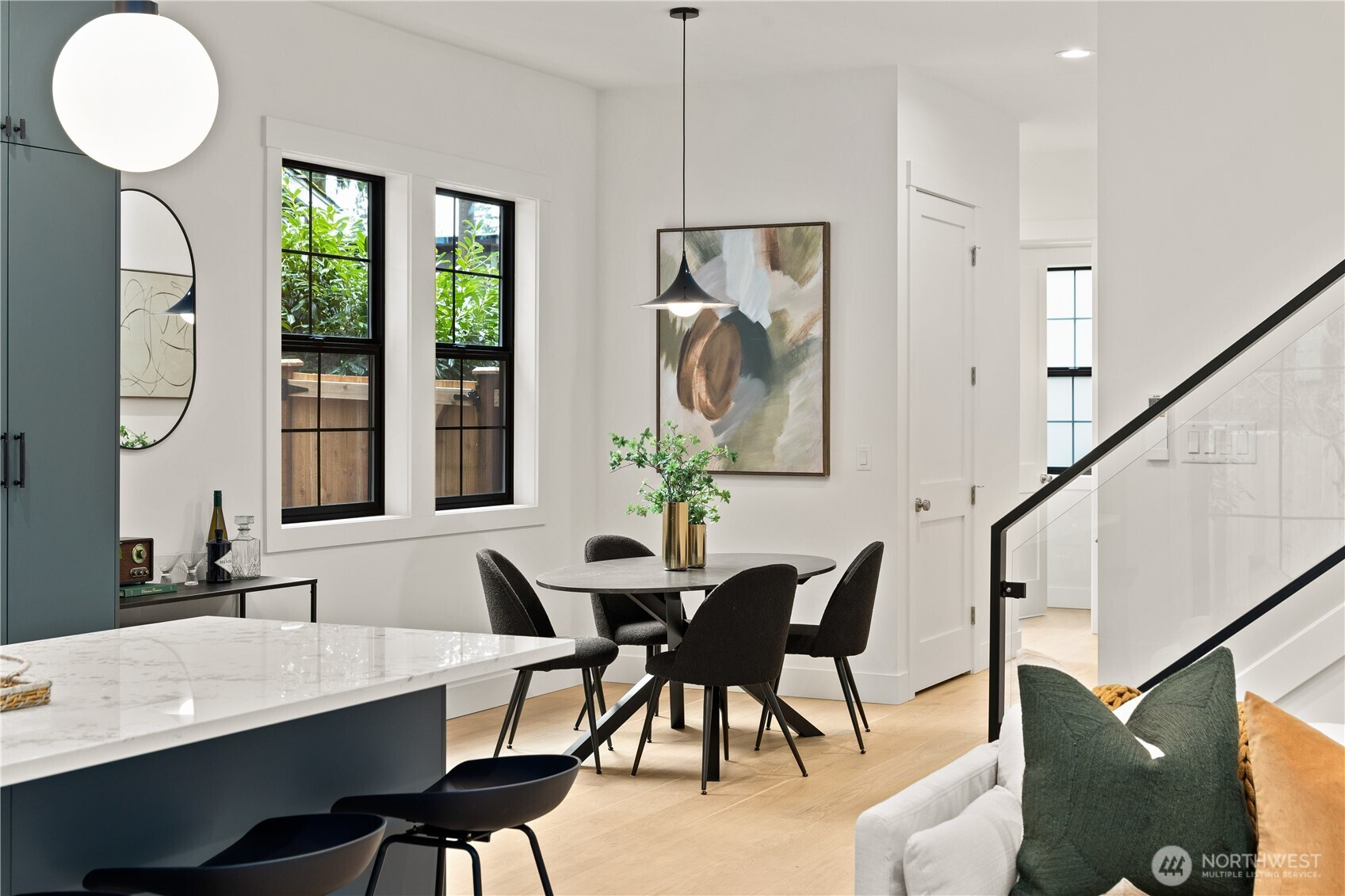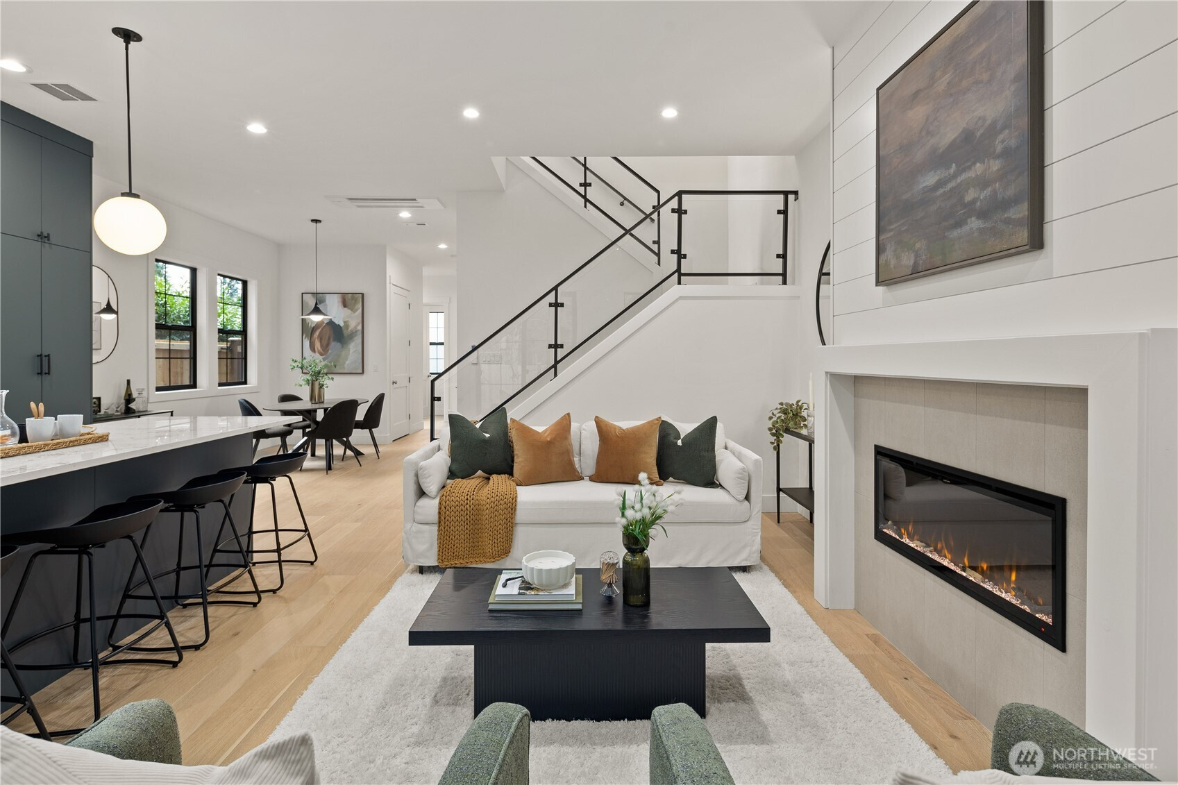(650)533-3259Beautiful new construction home in East Bellevue offering refined finishes and a thoughtfully designed, highly functional layout. The main level welcomes you with a spacious entry featuring convenient storage and a nearby guest powder room. The open-concept living areas center around a well-appointed kitchen with a generous island, abundant cabinetry, and seamless flow for everyday living and entertaining, complemented by a dedicated dining space. A designer fireplace feature wall adds warmth and architectural interest, while the staircase showcases a custom steel and glass railing for a striking modern touch. Enjoy a private backyard ideal for outdoor gatherings or pets. Upstairs, the primary suite features elevated ceilings, a well-designed ¾ bath with dual vanity and walk-in shower, and excellent natural light. Two additional bedrooms and a full hallway bath complete the upper level. Private garage parking adds everyday convenience. Located near multiple neighborhood parks, with a short drive to Bridle Trails State Park and Lake Sammamish recreation, plus convenient proximity to Microsoft, Eastside shopping, dining, and major commuter routes. In the highly regarded Bellevue School District.