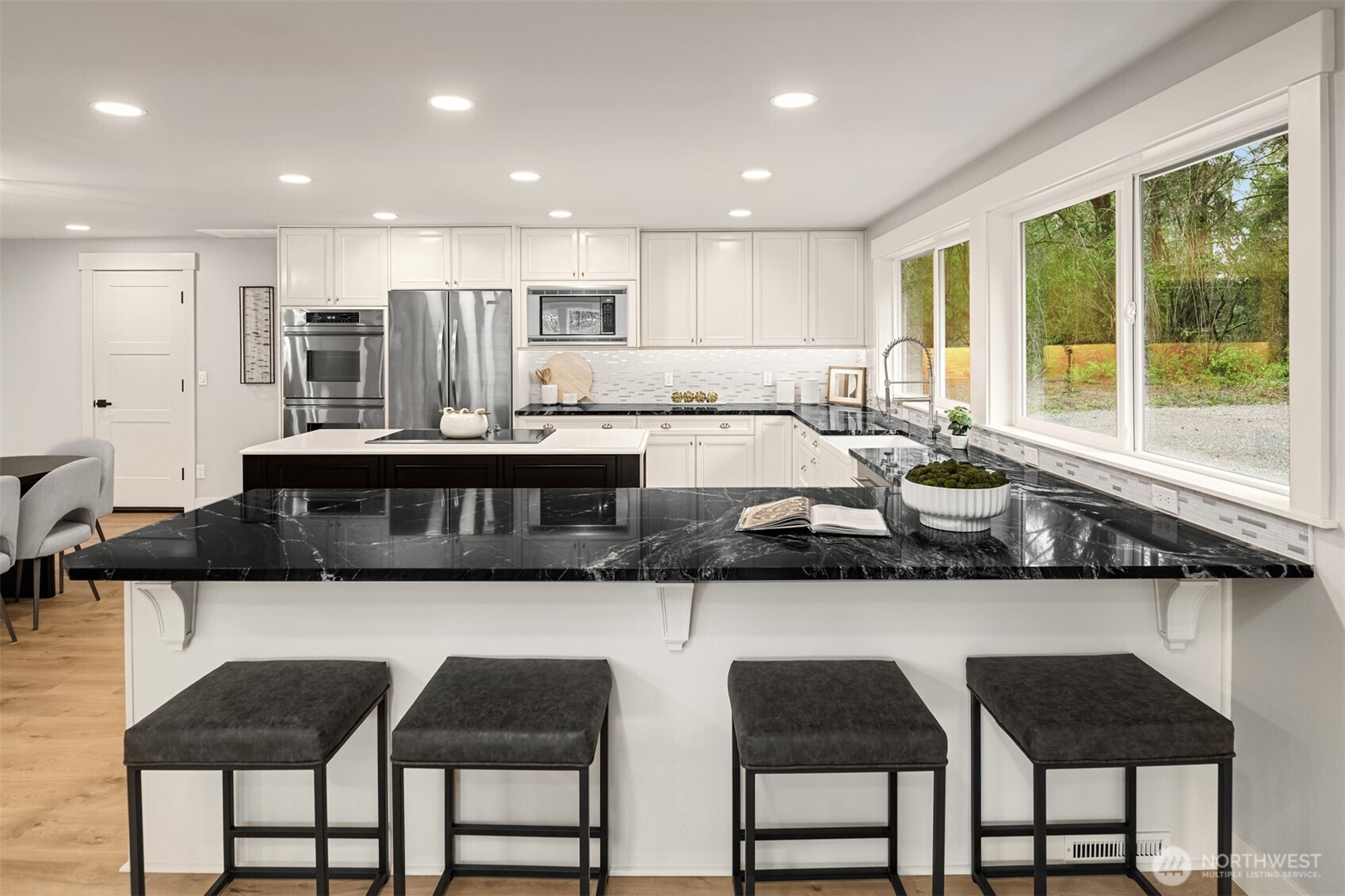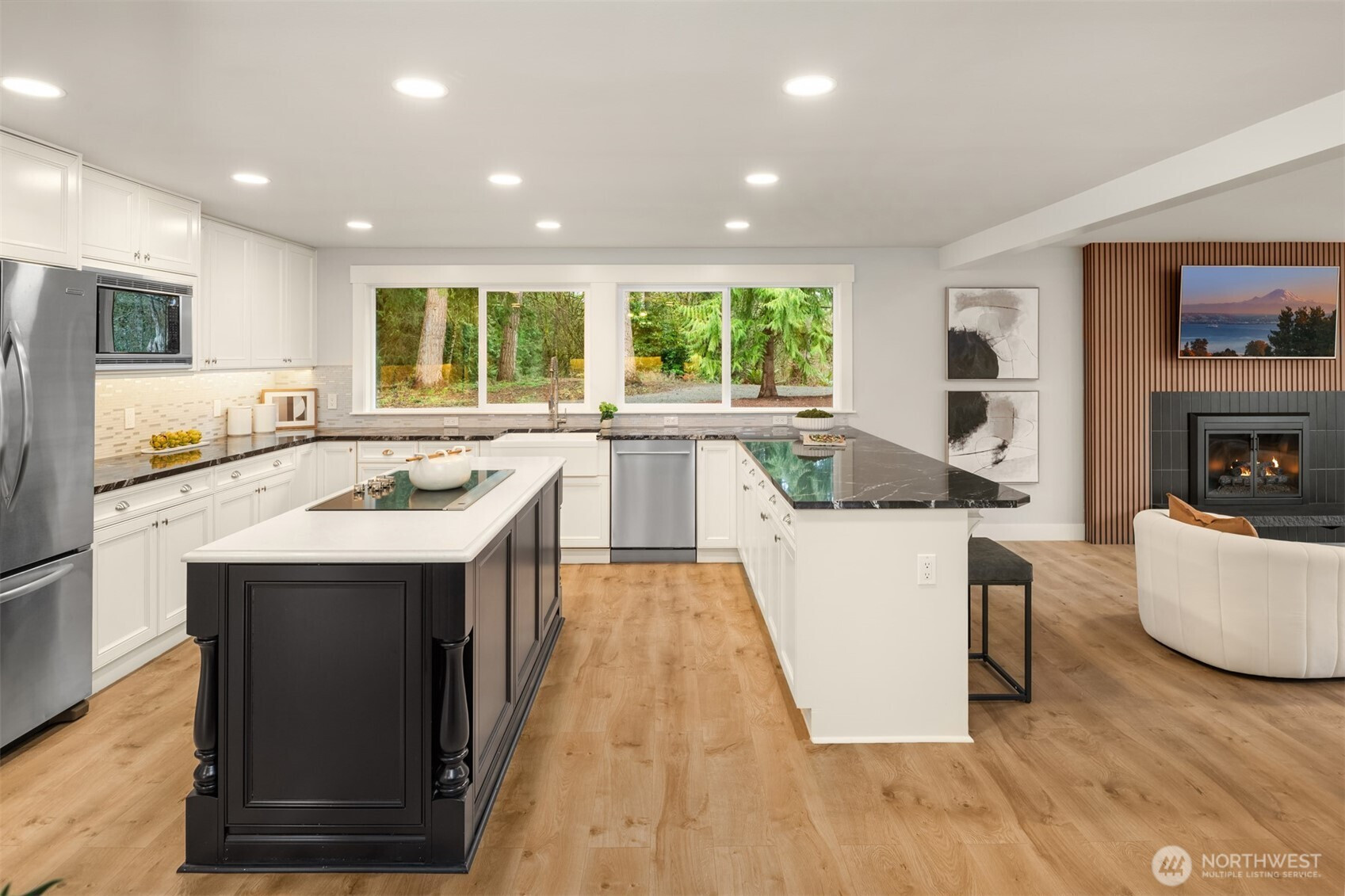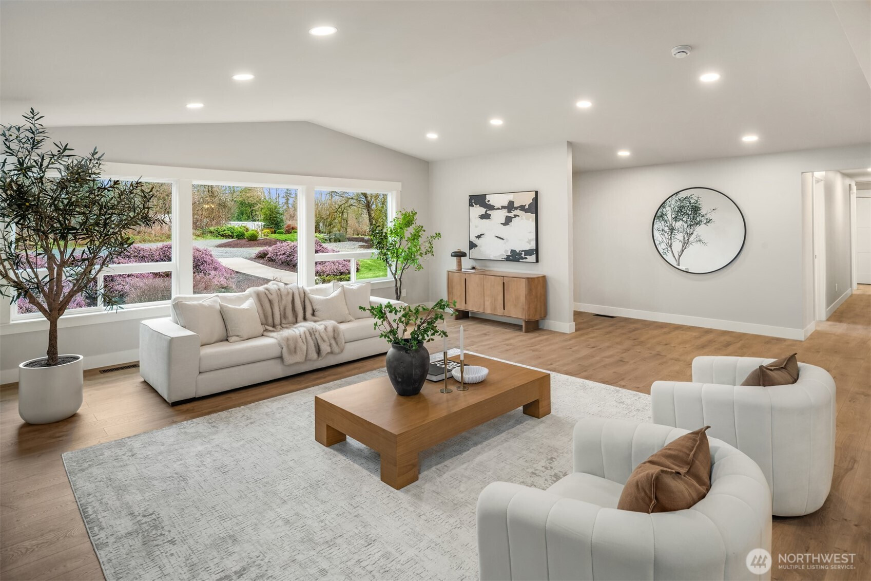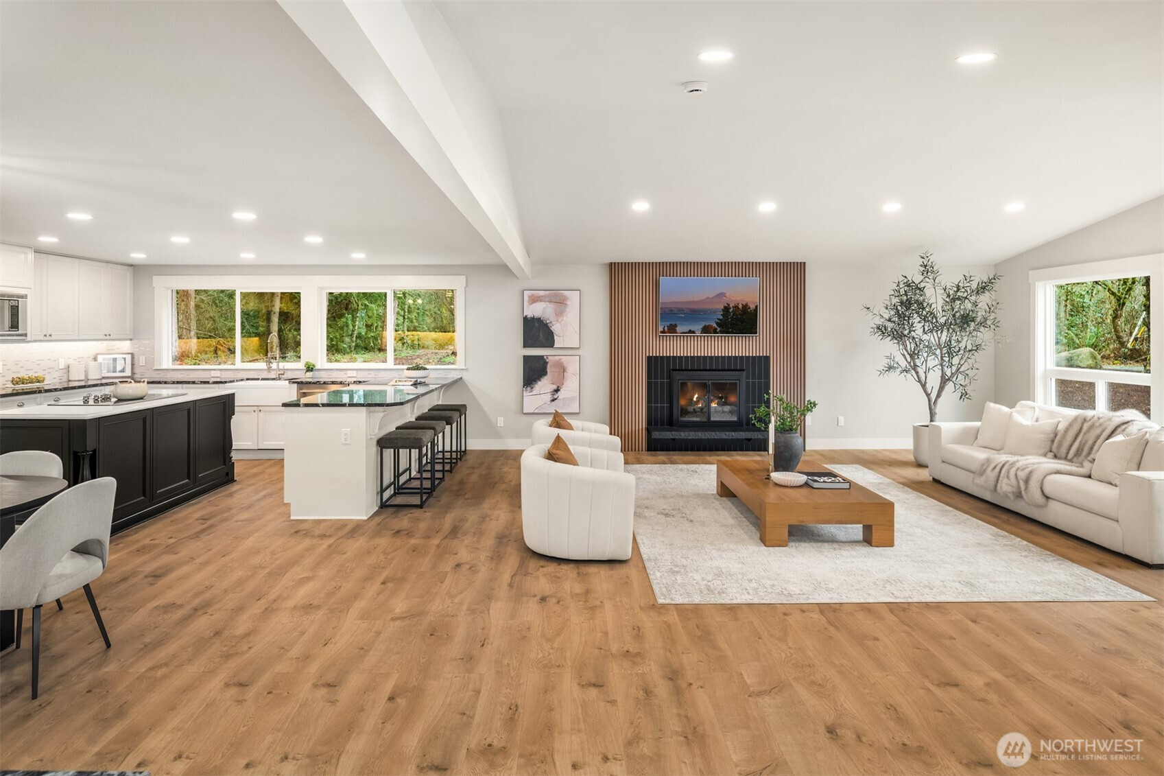 (650)533-3259Primely situated on 2.48 private acres in the East Renton Highlands and within the Issaquah School District, this reimagined farmhouse rambler offers a rare combination of privacy, scale, and modern refinement. A long, tree-lined private drive creates a memorable approach, gradually revealing the residence set well off the road amid open pasture, mature evergreens, and natural surroundings that provide exceptional seclusion and usable land. The setting offers both presence and flexibility—equally suited for quiet enjoyment and outdoor expansion, rarely found this close to Eastside conveniences. Vaulted ceilings and expansive windows introduce abundant natural light across the open-concept interior, anchored by a true chef’s kitchen appointed with stainless steel appliances, custom cabinetry, and refined finishes. Engineered oak hardwood flooring extends throughout, complemented by curated designer fixtures and thoughtfully renovated bathrooms. A modern farmhouse residence defined by land, privacy, and elevated everyday living.