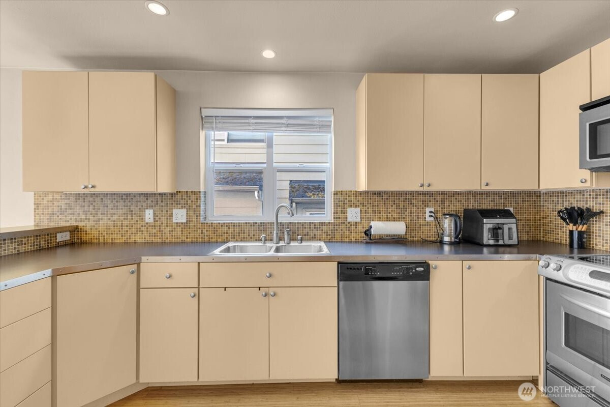 (650)533-3259Welcome to this Chic townhome mere blocks from Westwood Village with NO HOA DUES & a newly refurbished yard perfect for your furry friends. Enter through a spacious foyer, leading to an enclosed yard and patio, plus a one-car garage. Stylish bamboo flooring adorns the sunlit main living area with newly installed wooden-blinds for shade. The open kitchen boasts premium stainless steel appliances and an oversized pantry for all your culinary needs. Entertain in the living room with a charming balcony, complemented by a convenient half bath for guests. Upstairs, two bedrooms w/ vaulted ceilings share a modern bathroom, w/ laundry facilities conveniently located on the same level. Easy commute to whatever Seattle has to offer! Updates and New outdoor window trim installed throughout.