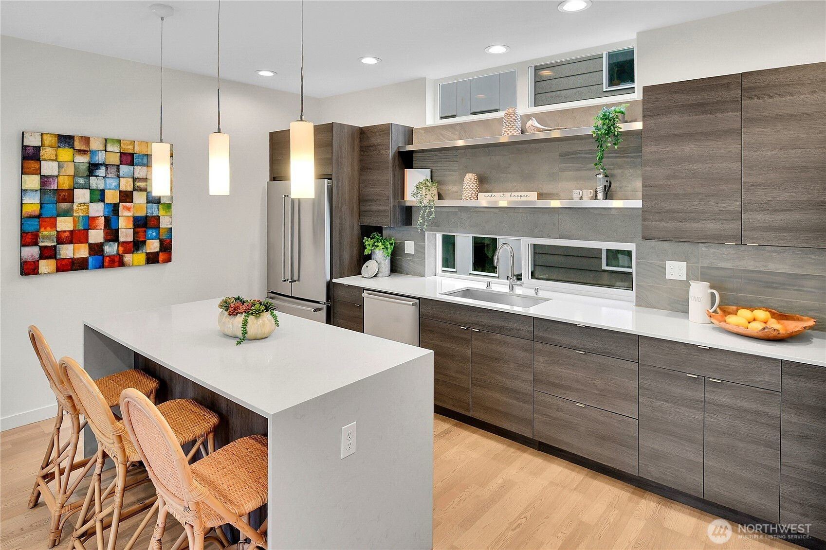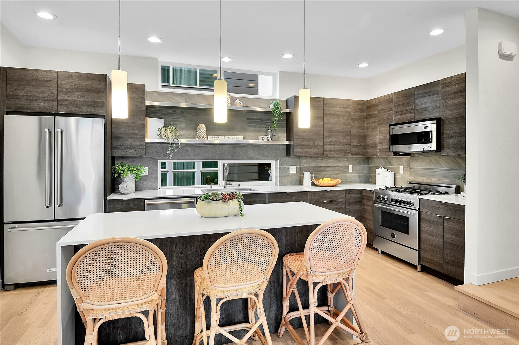 (650)533-3259Contemporary townhome in the heart of Ballard with an exceptional 92 Walk Score—just steps to vibrant shops, dining, and neighborhood favorites. Thoughtfully designed and 4-Star Built Green, this 10-year-old home offers in-floor radiant heat on every level and tankless on-demand hot water for year-round comfort and efficiency. The entry level features sleek concrete floors, a private bedroom ideal for guests or a home office, and a full bath. Upstairs, the primary suite is a true retreat with vaulted ceilings, a walk-in closet, spa-inspired bath with custom tiled dual shower, and a covered south-facing deck. The open-concept kitchen and great room are perfect for entertaining, highlighted by a stainless steel Bertazzoni range, quartz countertops, and abundant storage. Enjoy seamless indoor-outdoor living with a covered deck ideal for BBQs and dining al fresco. Alley access leads to convenient carport parking. Stylish, efficient, and perfectly located—urban living at its best in Ballard.