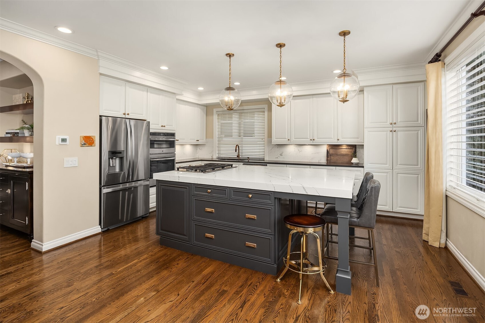 (650)533-3259A brilliant home, masterfully remodeled from top to bottom, on one of the most sought-after streets in Issaquah Highlands! Custom kitchen w/ all new cabinets, hardware, designer pendant lighting, high-end SS appliances & tailored island w/ quality quartz counters. Inviting family room flows to a private garden courtyard, creating the ultimate indoor/outdoor experience. Brand new roof, washer/dryer, water heater, lighting, + newer furnace all convey sheer devotion to a well-loved home. Thoughtful layout blends traditional style w/ today’s modern needs. A+ location—you’re in the center of it all, yet a world away on a quiet street. Primary is total perfection w/ herringbone tile accents, stylish vanity & walk-in closet. Perfection does exist.