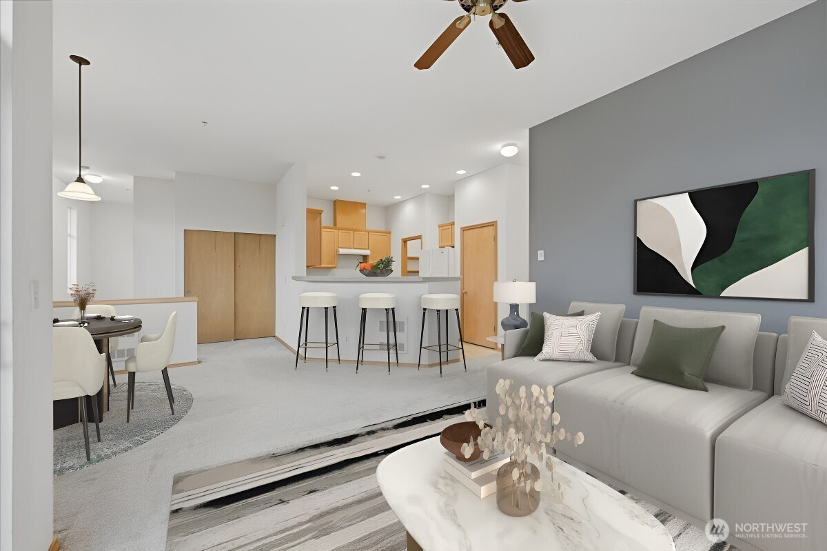 (650)533-3259Discover this beautiful 2-bedroom, 2-bathroom condo spanning 1,210 sqft in the heart of Sammamish! This inviting top-floor residence is flooded w/ natural light & boasts sleek tile countertops and a convenient breakfast bar ideal for casual meals or hosting friends. The spacious primary bedroom offers an en-suite bath and a walk-in closet. Unwind in the open-concept living area with cozy fireplace, sip your morning coffee on the private deck, or explore the surrounding trails and nearby park with sports court. Enjoy fantastic amenities, including a clubhouse equipped with a fitness center, game room, full kitchen, and outdoor pool. Highly acclaimed Issaquah School District, convenient access to shopping, and dining. Move-in ready!