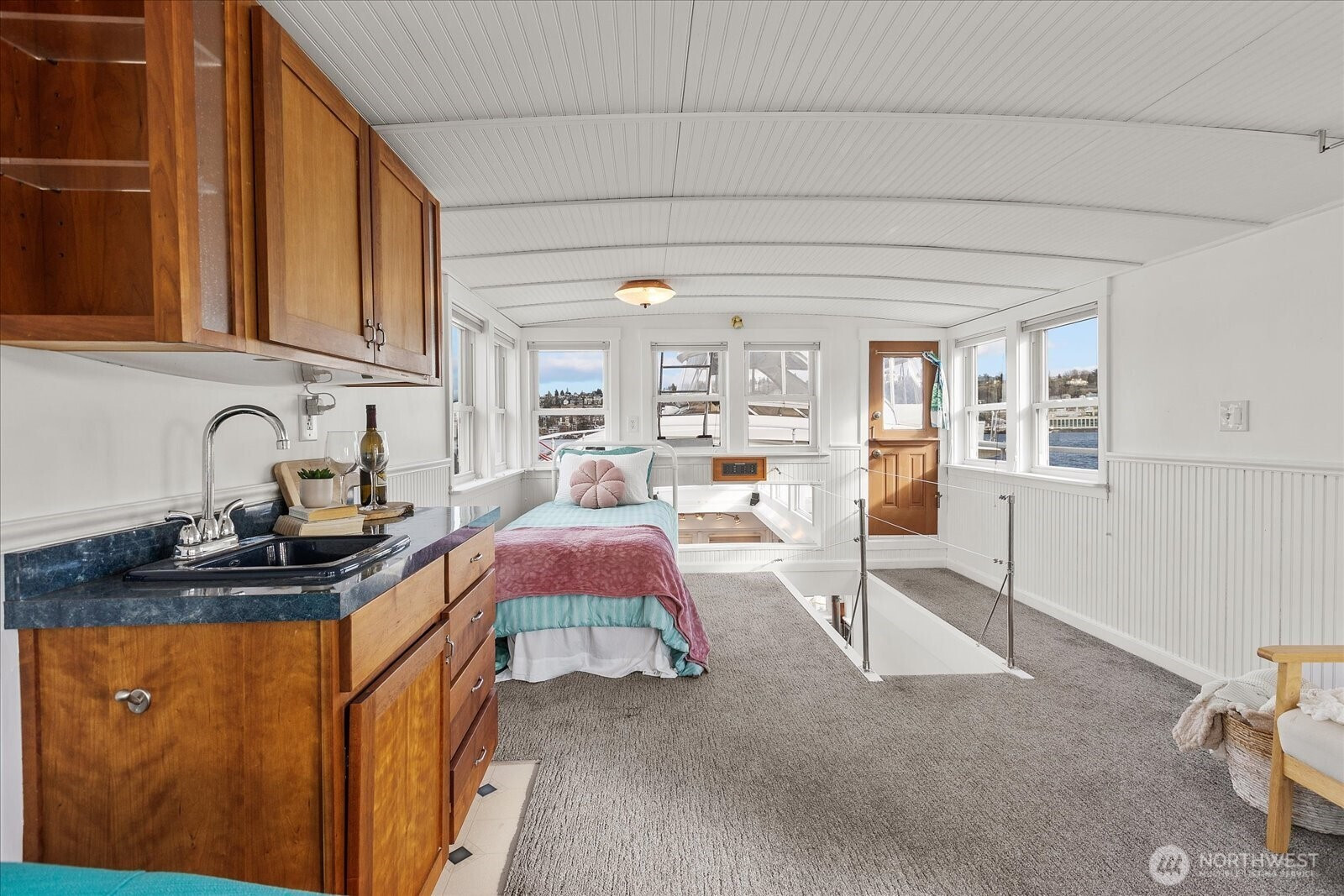 (650)533-3259Welcome aboard to this end-of-dock Seattle Houseboat with breathtaking water views. Relax on the spacious rooftop deck or two covered main-level decks. Enjoy vaulted ceilings, walls of windows, full kitchen with breakfast bar, built-in queen bed, full bath, and washer/dryer combo. The upper bonus room with built-in bar is perfect for guests, entertaining, or home office. You will love watching the fireworks, Duck Dodge, water planes, & incredible sunrises over Lake Union. Slip lease is $1,598/mo & includes moorage, insurance, DNR, facility fees, liveaboard status, & Property Data Protection. Paddleboard, kayak, or relax while living the lake lifestyle. Financing available. Minutes to Amazon, Google, & Adobe. Pets & rentals OK.