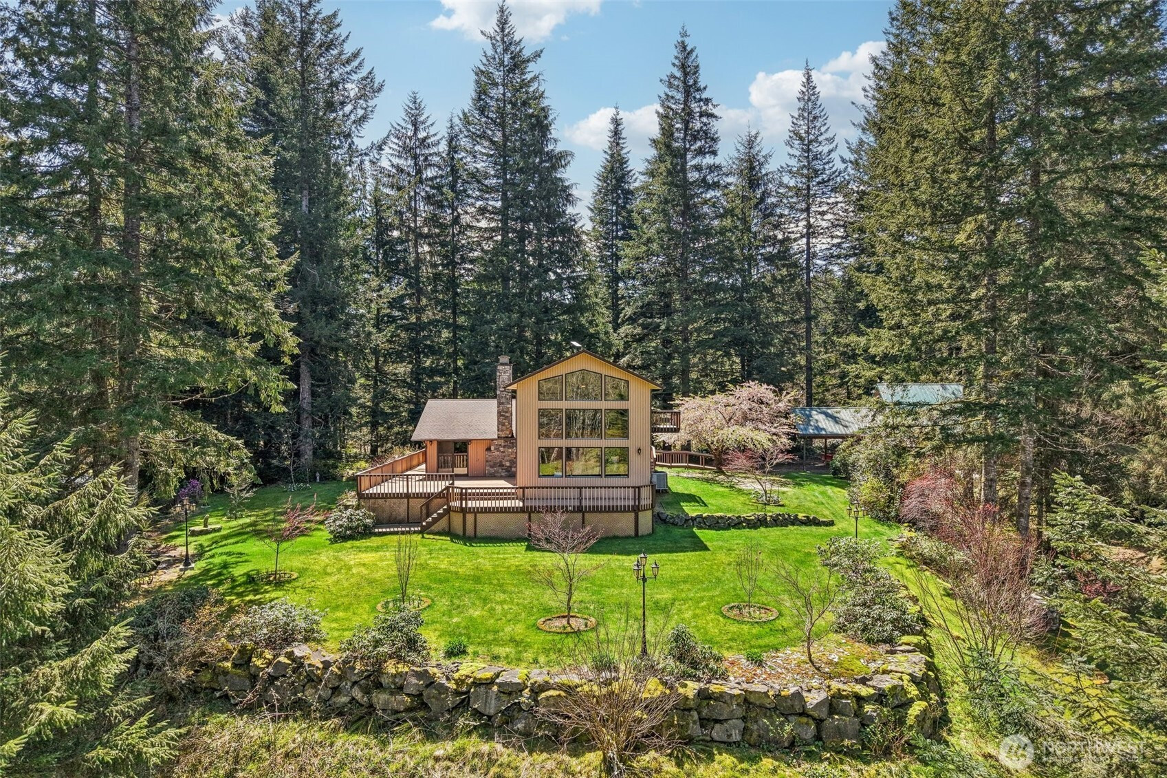 (650)533-3259Is this what you are looking for? Forested Sanctuary offering Serenity, Silence and Solitude. The Driveway is a forested canopy leading to a 2700 SQ. FT. 2 Story on 10 + acres with multiple ponds. This home has upstairs 900 sq. ft. primary suite with Vaulted ceilings offering panoramic views of forest and flowers. Wonderful upgraded primary bathroom with jetted tub, double vanity, separate shower, and skylight. Plus ductless HP - mini split, private deck and ceiling fan upstairs . Main level Kitchen with upgraded lighting, Stainless Steel Appliances: Refrigerator, Stove-Range , Dishwasher, and Microwave. Also, kitchen eating space and kitchen eating-bar. Utility room off of kitchen with washer , dryer and tankless hot water tank. Great room with Dining area, off of Kitchen, access to deck from dining room , upgraded facing and chimney, upgraded lighting through out great room leading into formal living room with another fireplace and offering wonderful views and side door to refurbished deck and hardwood floors through out house, both floors. Handicap access, Detached 2 car garage with shop upstairs and carport. View of largest pond from deck, Covered porch in front of house. !0 acres has trees with plenty of open space. Room for toys or other vehicles.