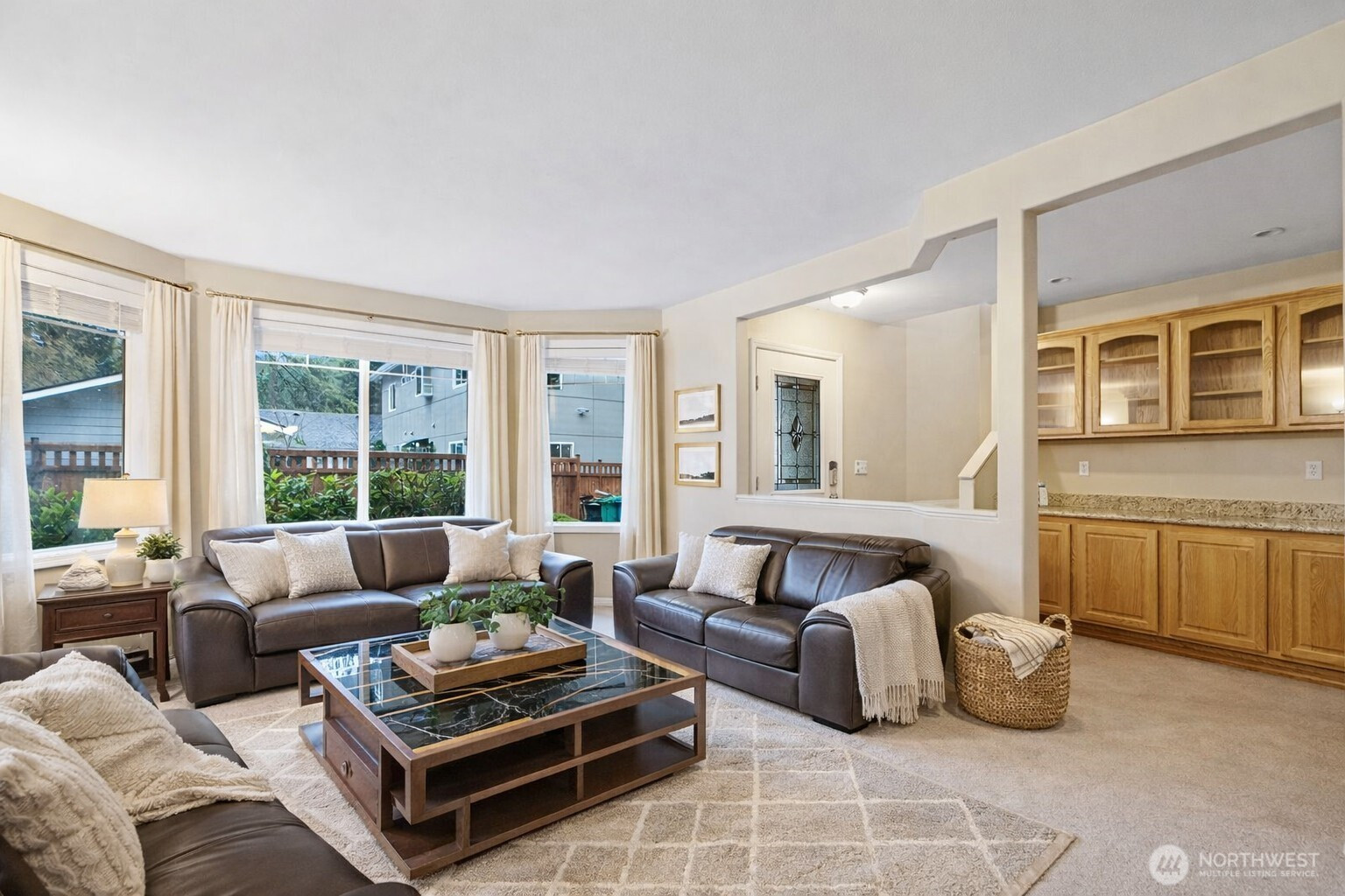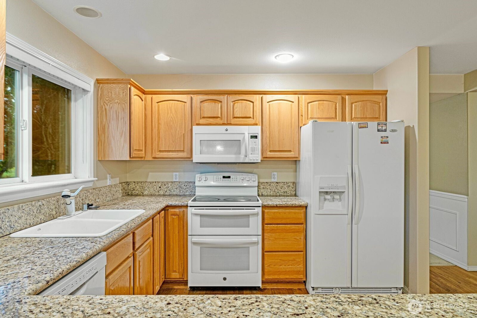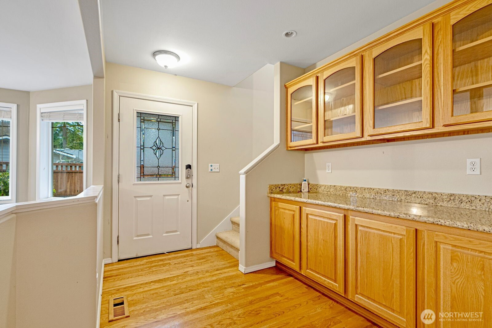 (650)533-3259Spacious two-story home featuring 4 bedrooms and 2.5 baths. Sunny home, slab granite counters, hardwoods, family rm connects to huge deck over grassy oasis. Back yard blends into a greenbelt-like setting providing privacy galore. 2 car garage, wainscotting, coffered ceilings in dining, divine master suite, forced air gas, quite private rd, parking for 8+cars, excellent Shoreline school. Walk to groceries, restaurants, schools, parks, buses.