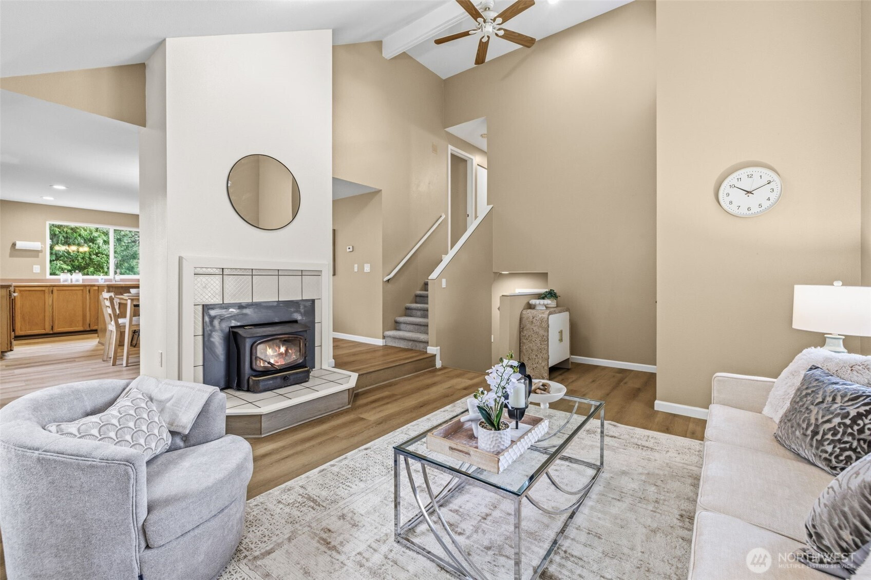 (650)533-3259Beautifully updated tri-level home featuring soaring vaulted ceilings, abundant natural light, and a centrally located wood-burning fireplace that anchors the main living space. Recent updates include new laminate hardwood flooring, fresh interior paint, and brand new carpeting throughout. Functional layout with all bedrooms on the upper level, a spacious main floor ideal for everyday living and entertaining, and a lower-level family room offering additional flexible living space. Step outside to a newer oversized Trex deck overlooking a private, fully fenced backyard with ample room for outdoor enjoyment. Extra-long driveway provides generous parking for multiple vehicles or guests. Conveniently located with easy access to Bellevue, Seattle, and Tacoma, and just a short drive to Sea-Tac Airport, making commuting and travel simple. Close to parks, schools, and everyday amenities.