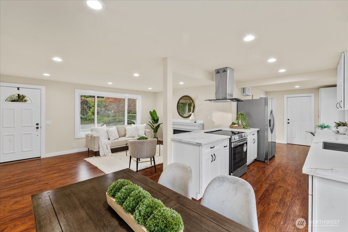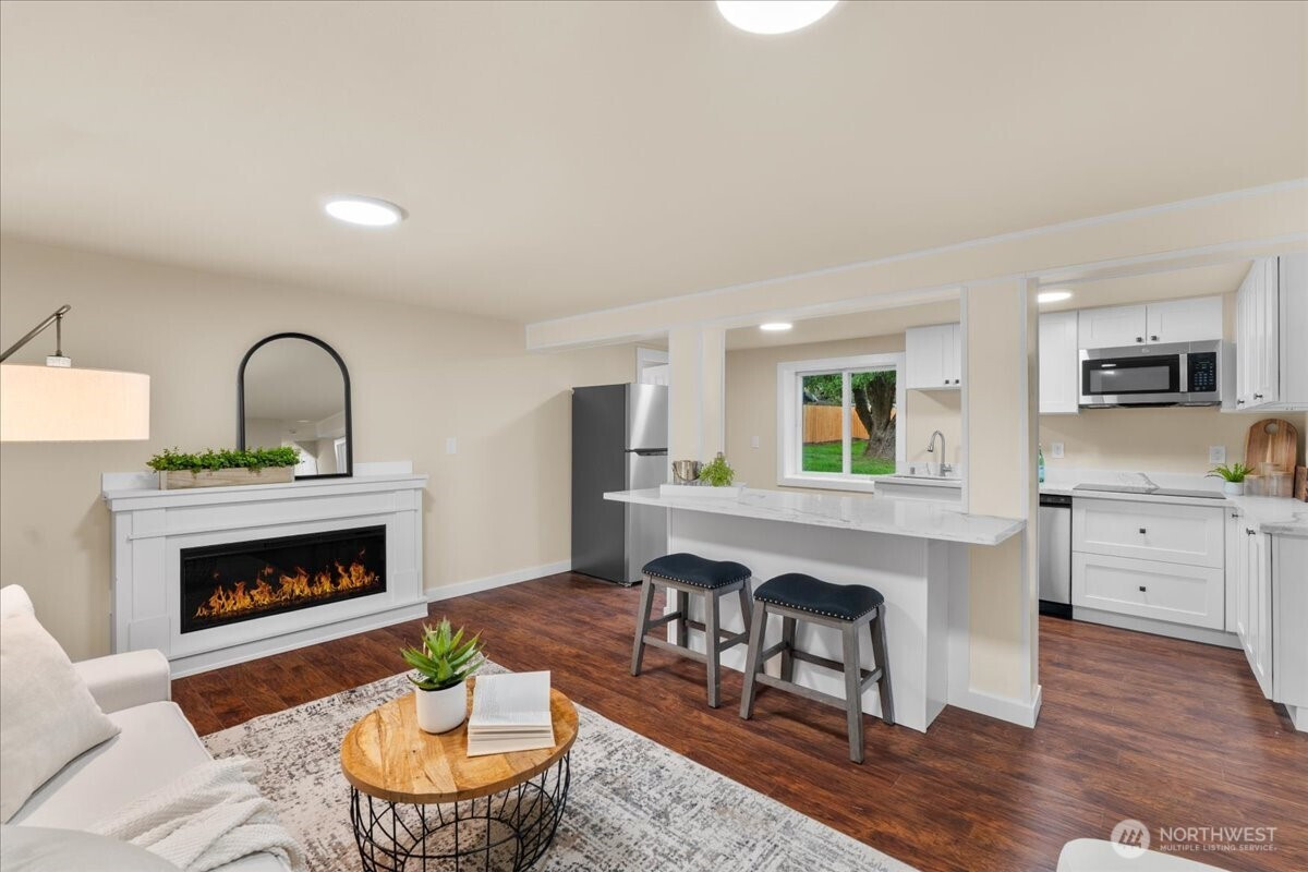 (650)533-3259Beautifully-remodeled home in North Hill, walk to local elementary! This meticulously updated, two-story home features modern updates throughout the 6 bedrooms, 2 baths and two living rooms. Kitchen & baths have 18mm quartz and brand new appliances. Enjoy the convenience of upstairs and downstairs laundry hookups and fully-fenced backyard with two decks and a patio. The downstairs has an independent entrance: perfect for guests, extended family, or rental income. Updated systems (connected to sewer, 200-amp electrical and service meter, new insulation, new water main and updated plumbing, EV charger, two high efficiency electrical FPs!). Conveniently located near Sea-Tac Airport, shopping, dining, and freeways.
