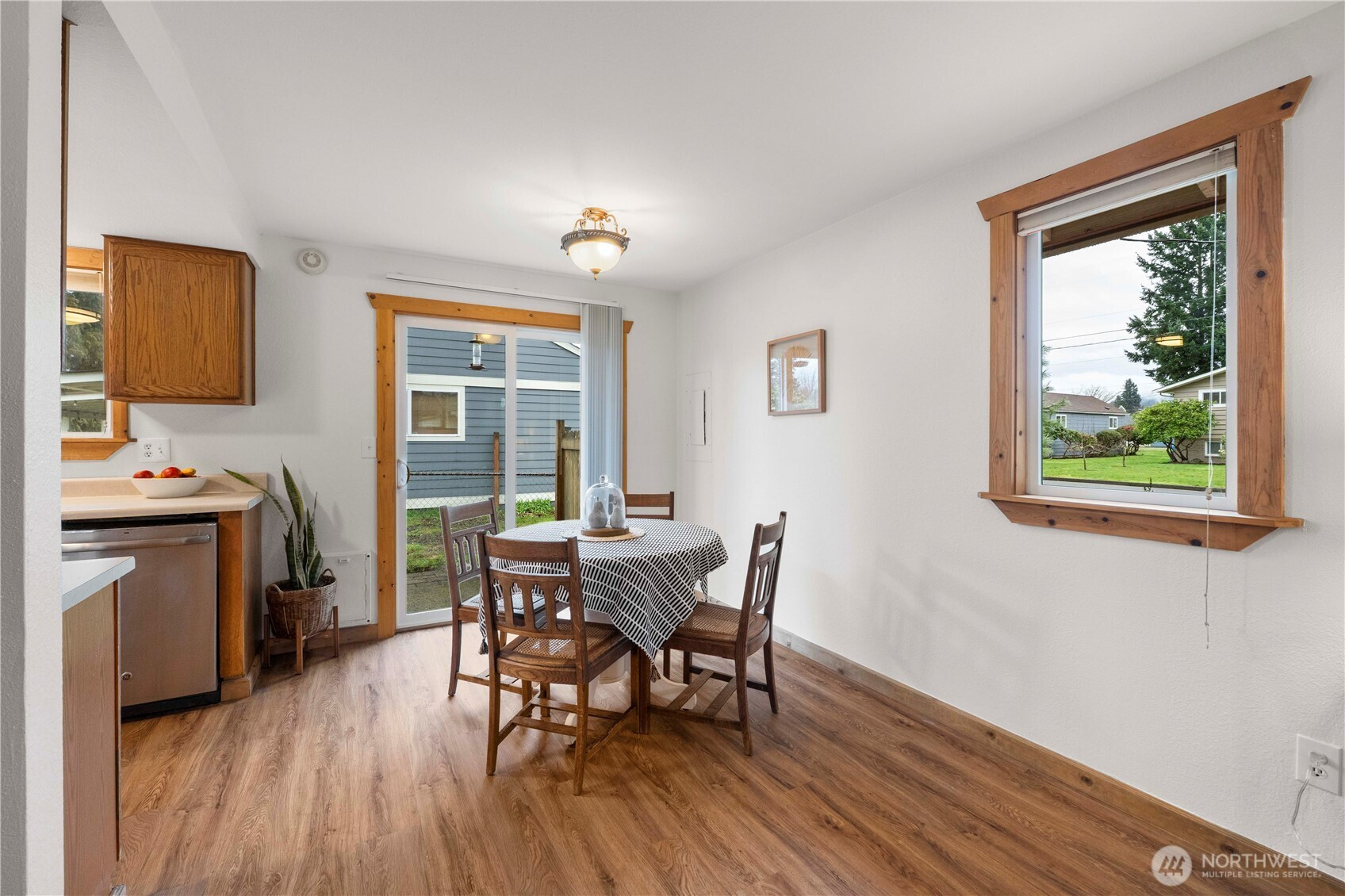 (650)533-3259Come check out this 2 bedroom + office, 1.75 bathroom, 1,040 SF bungalow at a great location in Enumclaw! This home has charming street appeal with its natural wood siding & inviting front porch. Enter to spacious living room with gas, free-standing stove. Vinyl plank flooring throughout nearly the entire home. Kitchen with gas range, adjacent dining area, & sliding glass doors to patio. Primary bedroom with an attached 3/4 primary bath. Good sized guest bedroom. Full guest bath with abundant cabinetry. Office/flex room with built-in racks & storage. 1-car garage with man-door to fully fenced back yard with tool/garden shed, patio area, & alley access. Walking distance to schools, parks, & downtown Enumclaw. Make this one yours before it's gone!
