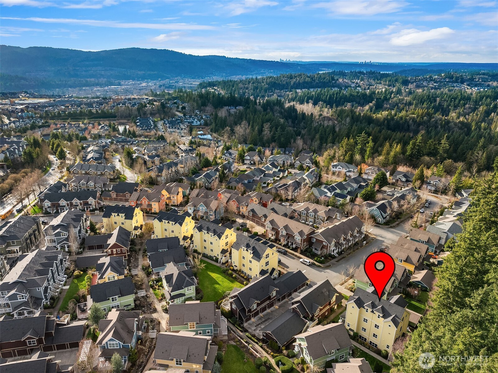 (650)533-3259180-degree unobstructed views, endless sunsets, and mountain peaks from this “Sky Villa,” centrally located in Issaquah Highlands! This desirable corner unit is adjacent to a greenbelt, adding privacy and lush scenery. Defined by open spaces and abundant light, the two-story living room is completely open and offers a NYC vibe with a matte black stair railing, wood floors, and oversized picture windows. Upgraded to perfection, the home features a chef’s kitchen with a Viking range, Miele dishwasher, huge island with seating for 12, custom glass lazy susan, six base cabinets, and an etched-glass pantry. Incredible views await from your loft-style primary suite, featuring dual custom closets, vaulted ceilings, and additional storage. The entry level boasts two large bedrooms with closet systems, a full bath, and modern opaque sliding doors. Newer mini-split heating and cooling systems run throughout the home, along with a separate one-car garage. Minutes to shopping, restaurants, cinema, parks, trails, public transportation, and I-90! A jewel tucked away in one of the best neighborhoods on the Eastside. Life is good in Issaquah Highlands!