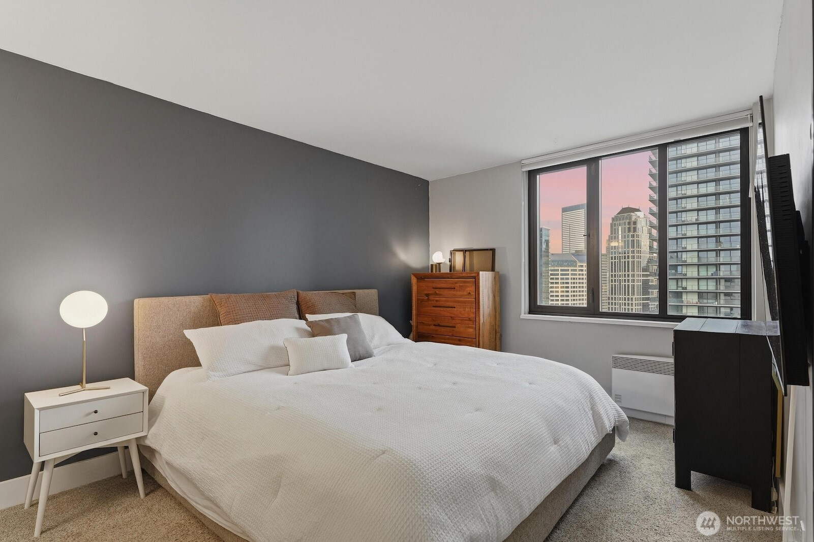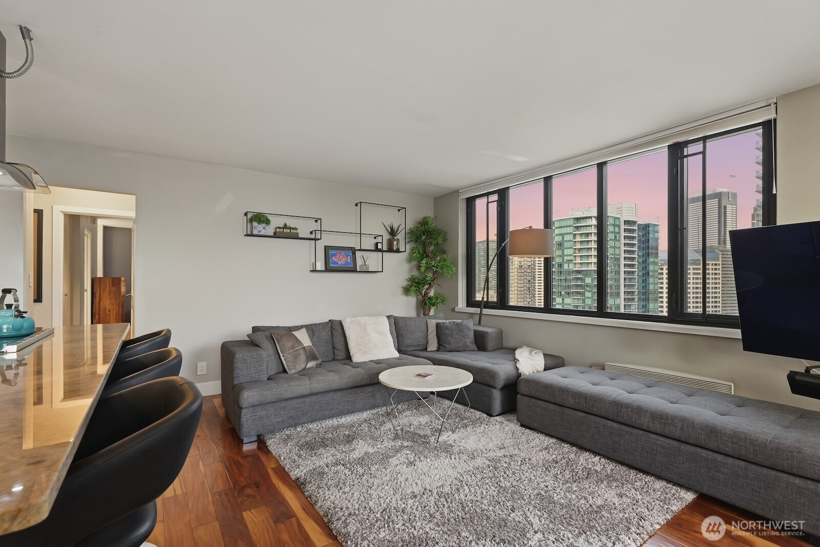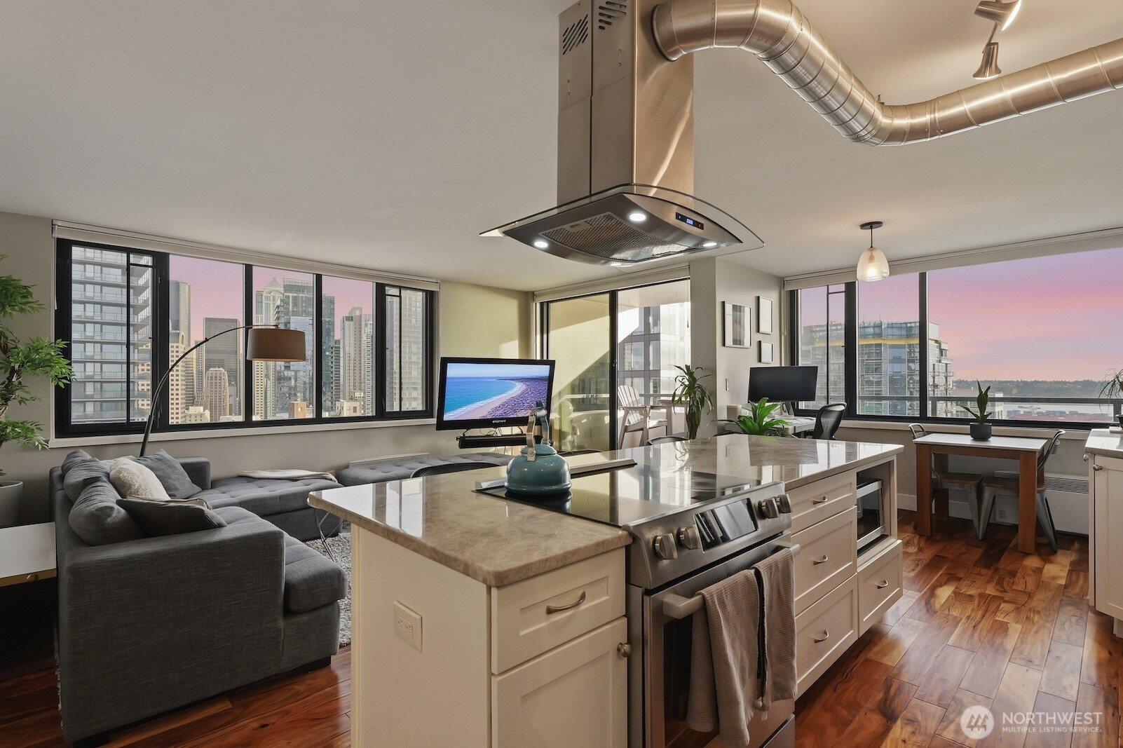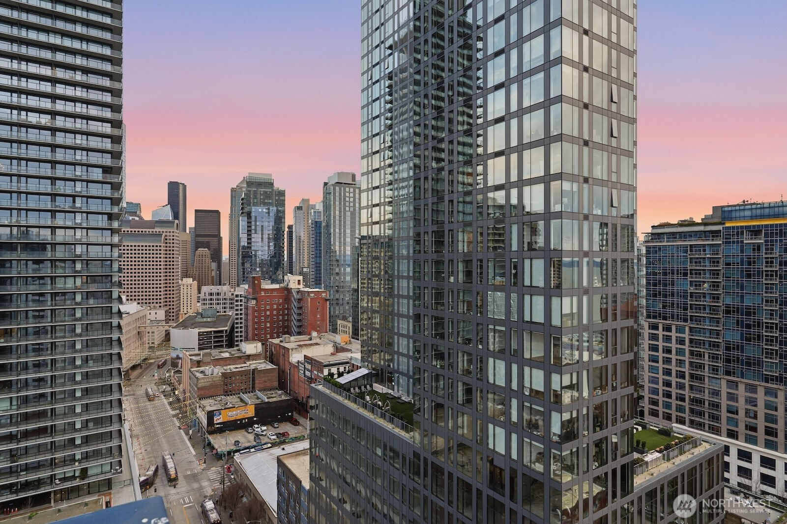 (650)533-3259This luxurious penthouse at Royal Crest is where year-round vistas take center stage: come home each day to panoramic views of the Olympic Mtns, Elliott Bay, glorious sunsets & twinkling downtown lights. The iconic downtown lifestyle is yours from this unbeatable location w/ immediate proximity to all the best dining, shopping, nightlife, sports & cultural events the city has to offer. Be at the heart of it all! Perched 26 floors above the city, this corner unit's layout has been opened up to maximize the views from nearly every room. Warm western light accentuates luxe finishes like engineered hardwood floors, Hunter Douglas top-down/bottom-up blinds & a remodeled kitchen outfitted w/ quartzite counters, stainless appliances, stylish cabinetry & a large center island perfect to gather around. Both beds look out to fantastic views & the sparkling skyline; the primary is bright & spacious w/ a full ensuite bath, & the 2nd bed includes a Murphy bed & custom closet organizers. Free laundry only for 26th floor residents is right next door, + your dedicated parking space & storage unit are both in the secure garage. All utilities are included in the HOA dues - even electric & internet! This well-run HOA offers exclusive amenities for residents: an outdoor pool, sauna, fitness center, owner's lounge w/ full kitchen & a terrace w/ BBQs & fire pits. Welcome home to the ideal intersection of elegance & vibrant urban living.